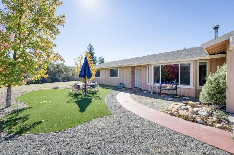 Enjoy the perfect blend of peace and practicality in this 3-bedroom, 2-bath home offering 1,628 square feet of comfortable living space on just over 3 acres of usable landperfect for building a workshop, guest house, or trailer, and spacious enough to accommodate horses. Located on a paved road with quick access to Highway 41, this property provides both privacy and convenience.Inside, you'll find an inviting open floor plan featuring a formal living room and a separate family room located just off the dining areaideal for entertaining or relaxed everyday living. The living room offers lovely views of colorful mature trees and the Sierra mountains in the distance, creating a truly serene atmosphere. The bedrooms includes a walk-in closet, and the primary suite features two large closets for added storage. The washer, dryer, and refrigerator are also included in the sale.Throughout the home, large windows capture scenic views of the surrounding landscape from every room, allowing natural light and the beauty of the outdoors to fill the living spaces.The front yard is beautifully landscaped with mature trees and low-maintenance turf, offering both charm and ease of care. The fenced backyard includes a covered and enclosed patio, perfect for year-round enjoyment. It can also serve as a secure dog run for pet owners who want peace of mind knowing their pups can play safely without wandering astray.Take in the distant mountain views, open skies, and tranquil surroundings from your own peaceful retreat. With no HOA or CC&Rs, you'll have more freedom to truly make this property your ownwhether that means adding amenities, pursuing hobbies, or simply enjoying the quiet country lifestyle.