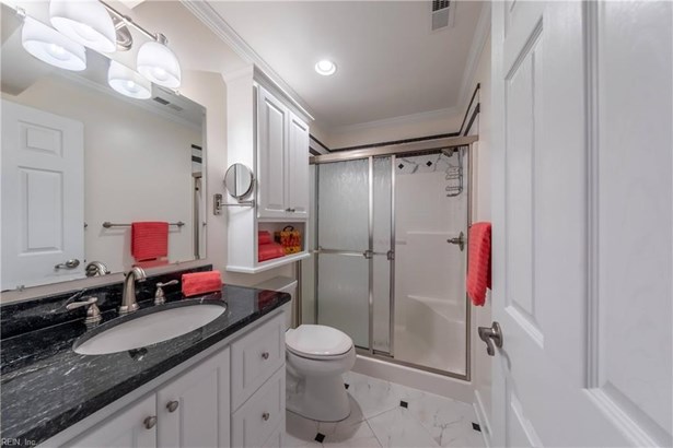 Welcome home! Prepare to be delighted by this stunning home on a quiet cul-de-sac in a park-like setting. Flowing from the light & bright kitchen with plenty of cabinets, upgraded appliances + a sunny dining nook is the dining room with great wall space and accent trim. The 2-story great room is adorned by built-in bookcases flanking the gas log fireplace, up-lighting and a bank of windows with access to the balcony deck. The primary bedroom is enhanced by a spectacular bath with hand cut onyx & granite tile with marble pencil trim. Upstairs are 2 additional bedrooms (1 is ensuite), 2 remodeled full baths & an expanded loft perfect for a workspace or reading nook. The lower level is a visitors dream with a private bedroom and bath, gathering space with a wet bar & refrigerator + access to the covered patio. There are also two large climate-controlled storage rooms. Brandywyne offers a pool, clubhouse + landscaping, located minutes from Colonial Williamsburg and major roadways.