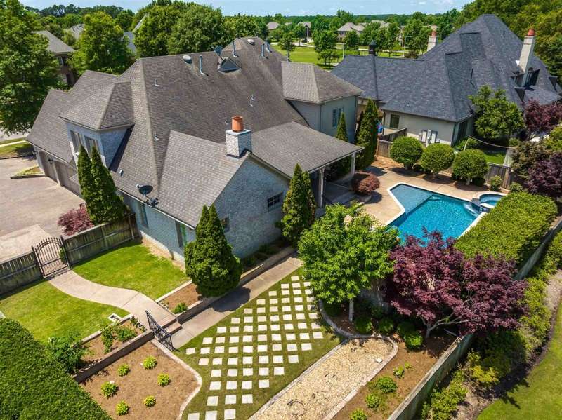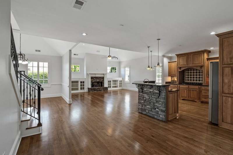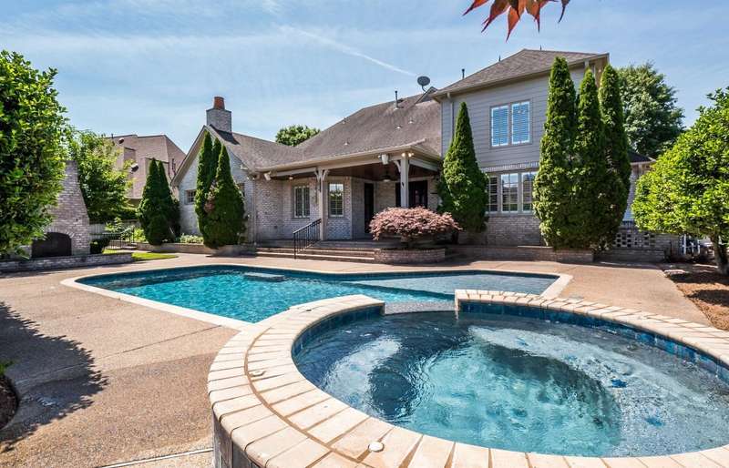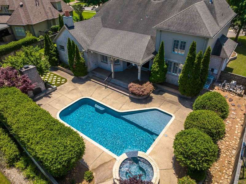 Picture yourself relaxing by your private fireside gunite pool, complete with a sun shelf, hot tub, and tranquil waterfall! This exquisite custom brick home in the sought-after Braystone neighborhood offers the ultimate in indoor and outdoor living. From the welcoming pond and waterfall at the Braystone entrance, to the convenient circular drive of the home, every detail exudes the quality of a custom home. Inside, enjoy an open floor plan with hardwood floors, a light and bright neutral dcor, and low-maintenance iron doors. The cook's kitchen is a chef's delight with a 5-burner gas cooktop and stainless appliances, including refrigerator flowing into a cozy keeping room with a fireplace. The main level features a primary suite plus a second bedroom and bath. Upstairs, a huge playroom with a wet bar and a versatile bonus room await. Beyond your private oasis, Braystone offers a community pool, tennis, soccer, and a nature trail. This is more than a home ? it's a lifestyle!