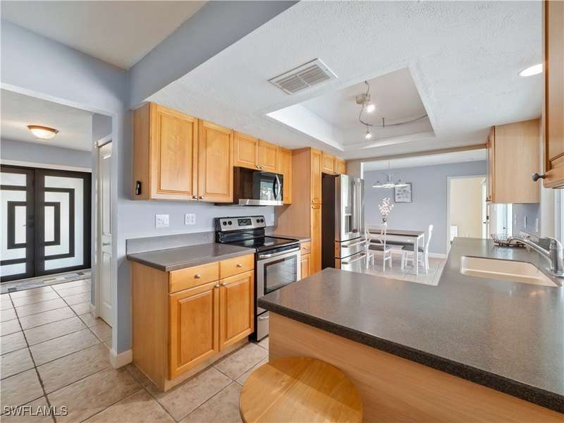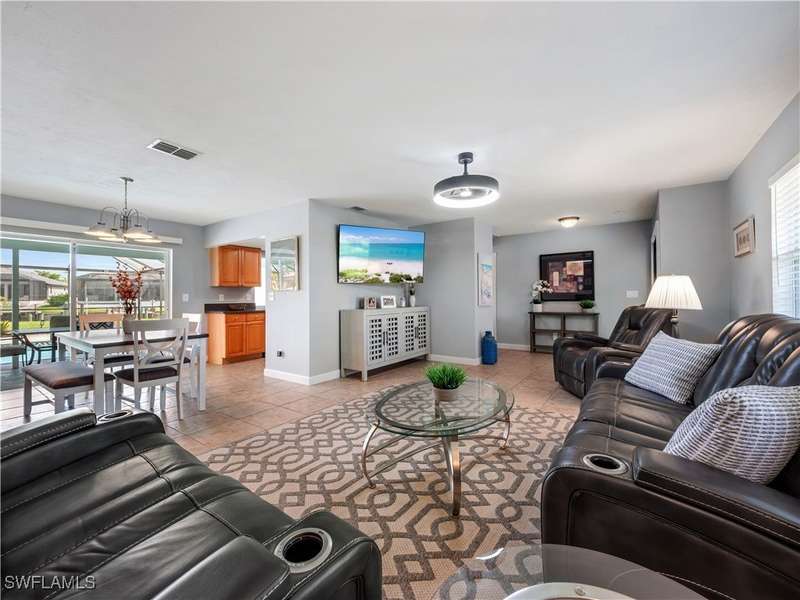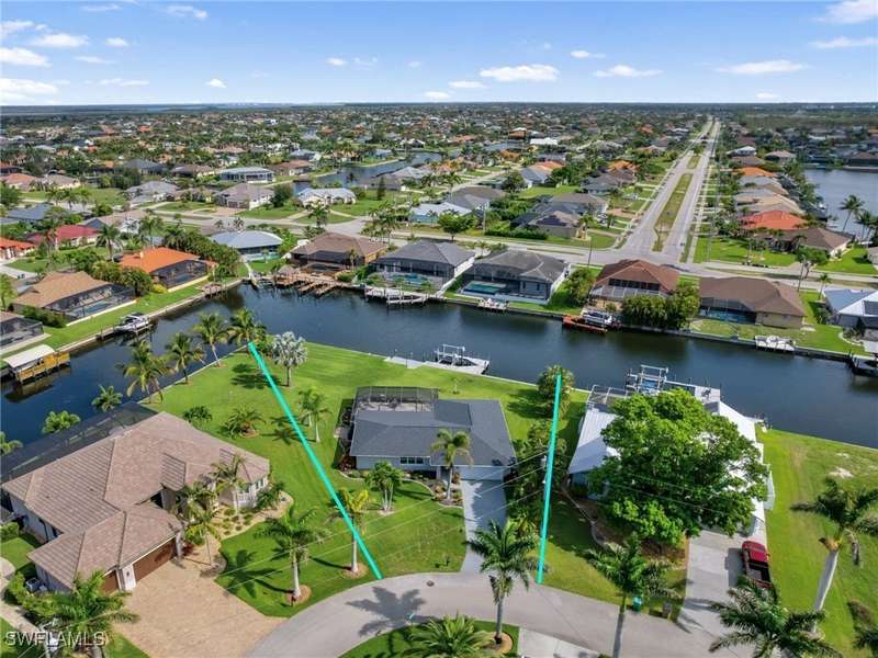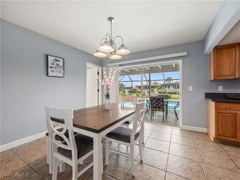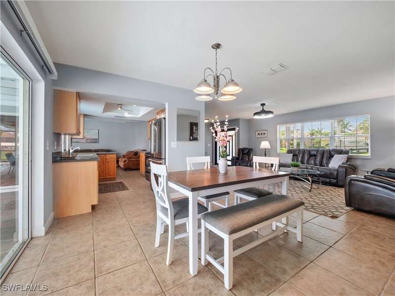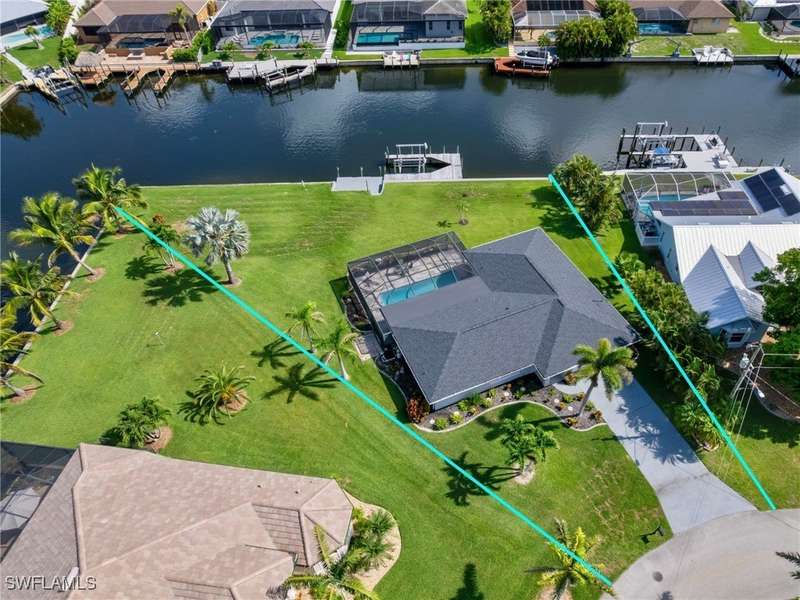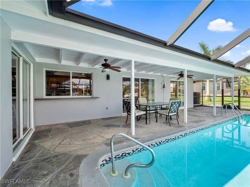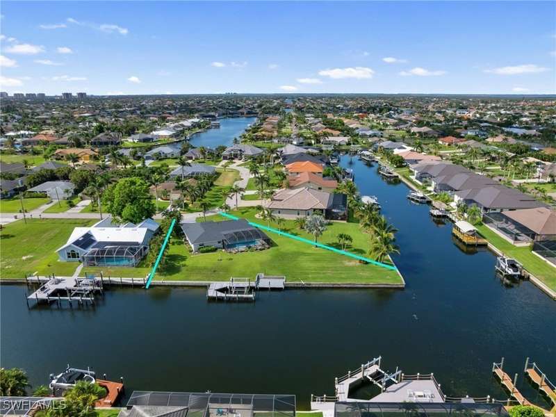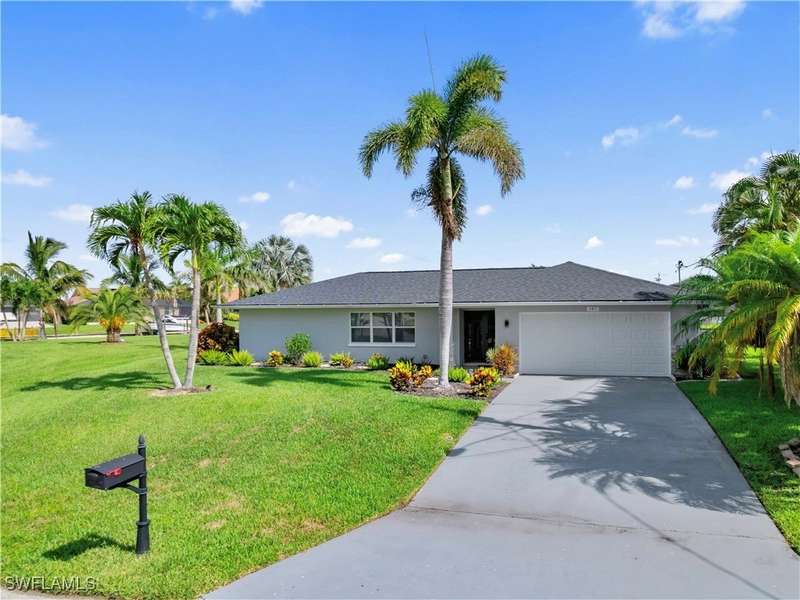 Your Boater's dream in Cape Coral is here! This Gulf access pool home sits on an oversized corner lot with wide waterfront views and no HOA. The property includes a private dock with a 10,000 lb boat lift, complete with electric and water hookups -perfect for fishing/boating lovers! Major updates have already been taken care of, including a brand-new seawall, new roof, and a new pool heater, City water & sewer utilities are paid in full! Beautiful landscaping surrounds the home, adding curb appeal and enhancing the tropical, laid-back vibe from the moment you arrive. The home features 3 bedrooms, 2 bathrooms, and roughly 1,600 sq ft of living space. Inside, you'll find a bright and functional split floor plan with tile throughout, stainless steel appliances, and a layout designed for everyday comfort and entertaining. Natural light pours in through windows and doors that frame the water views, with the kitchen centrally located at the heart of the home. Enjoy a refreshing dip in the pool after long boat days or simply relax in your spacious backyard ... a rare find for canal-front properties. The 2-car garage offers storage for your car, jet ski, or gear. With no HOA restrictions, this home is ideal for full-time residents, seasonal getaways, or as a vacation rental opportunity. Located just a short boat ride from Cape Harbour and minutes to local beaches like Sanibel, Captiva, and Fort Myers Beach, you're perfectly positioned to enjoy waterfront dining, shelling, fishing, and all that the Florida lifestyle has to offer.