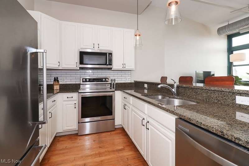 Location...Location...Location!! In the Heart of Market Square in Ohio City, this Sought-after Area is Just Steps Away from Award Winning Restaurants, Lively Bars, Unique Boutiques and the Iconic West Side Market...Not to Mention the Legendary Great Lakes Brewing Company!! Open Floor Plan with Soaring 12' Ceilings and an Impressive Wall of Windows Highlighting the Western Views of the City from this 5th Floor Unit! Spacious Living and Dining Room Areas with Wood Flooring. Kitchen with Tasteful Granite Countertops, Generous Breakfast Bar with 4 Bar Stools Included, Pendant Lighting, Subway Tile Backsplash, Loads of Cupboard & Counter Space and All Stainless-Steel Appliances that Stay! Large Main Bath with Ceramic Flooring and a Convenient Trendy Guest Half Bath. 2 Generously Sized Bedrooms with Plenty of Closet Space. In-Suite Laundry with Full-Size Washer and Dryer that Stay. Secure Lobby with 24 Hour Exercise Facility. Private Open-Air Courtyard for You to Enjoy! Secure Attached Heated Parking Garage with Your Own Designated Parking Space and Storage Locker. What a Fun, Vibrant & Full of Energy Area with Everything You Need Just Outside Your Front Door!! What a Great Place to Call Home!!!