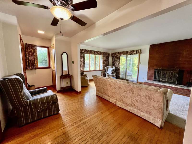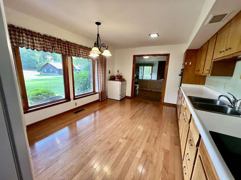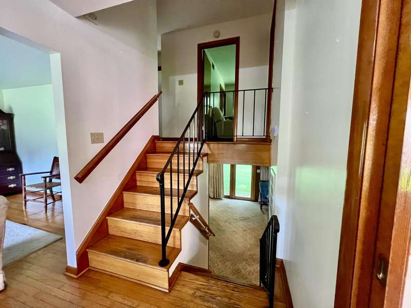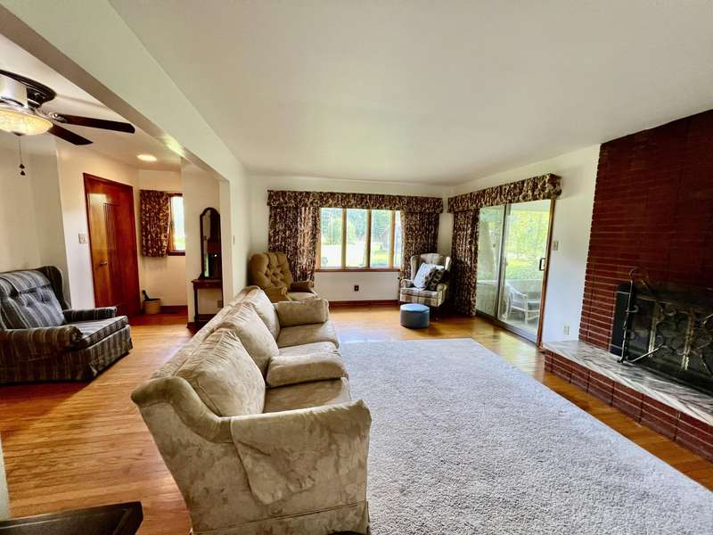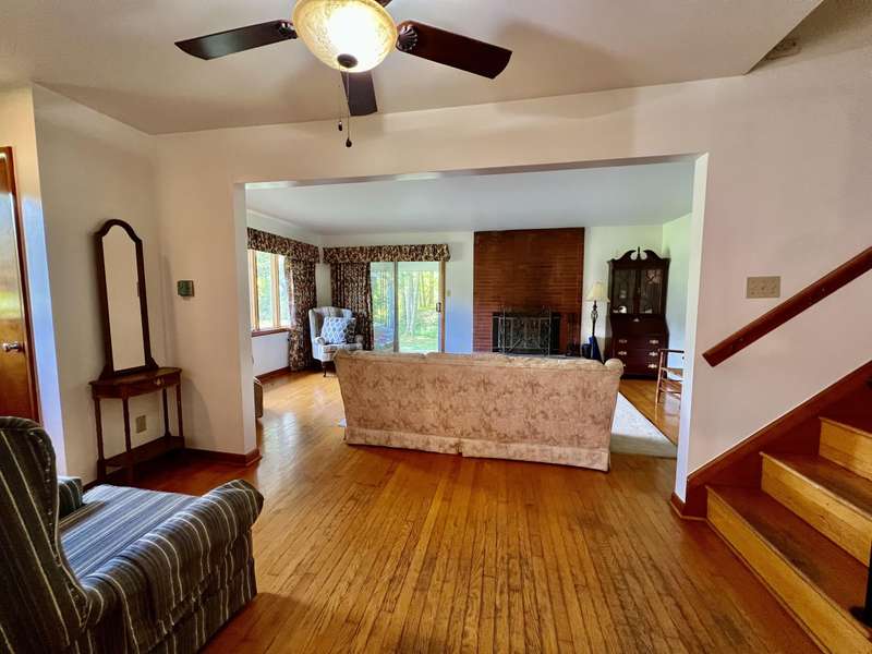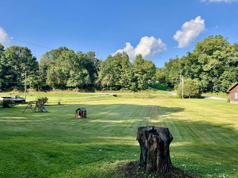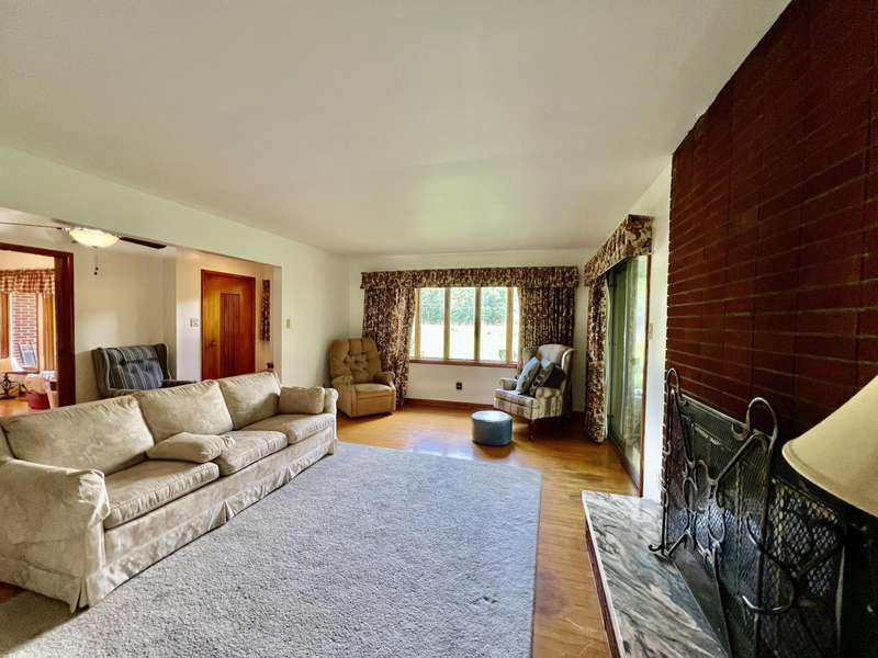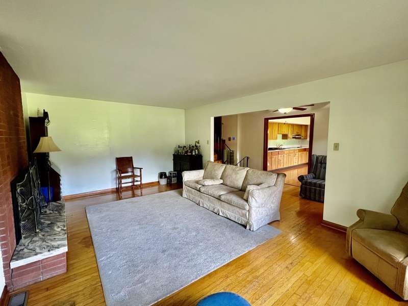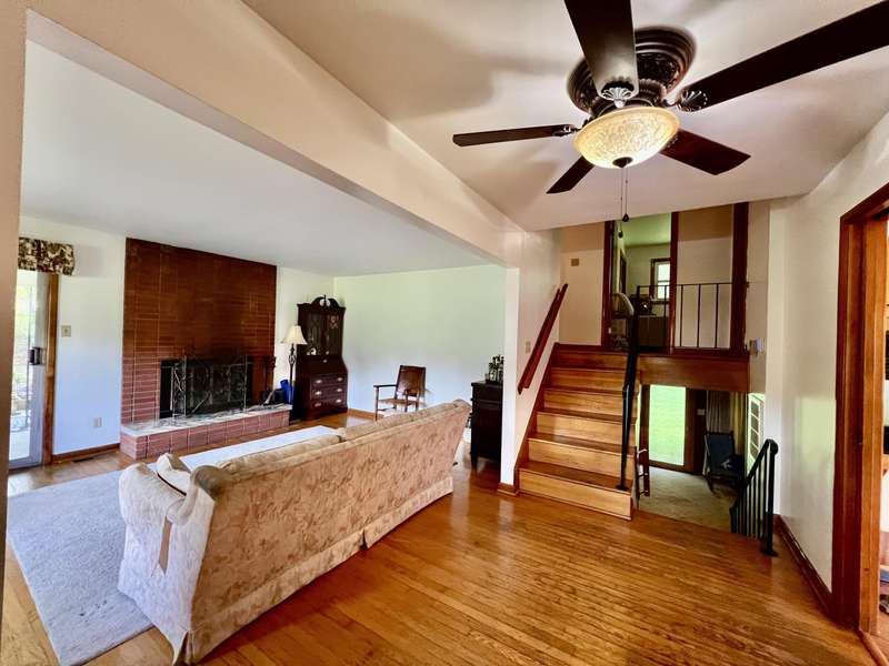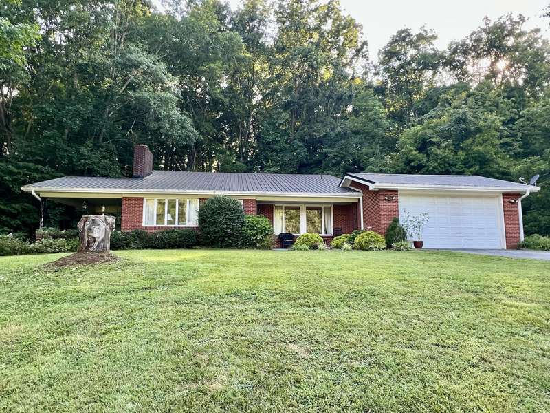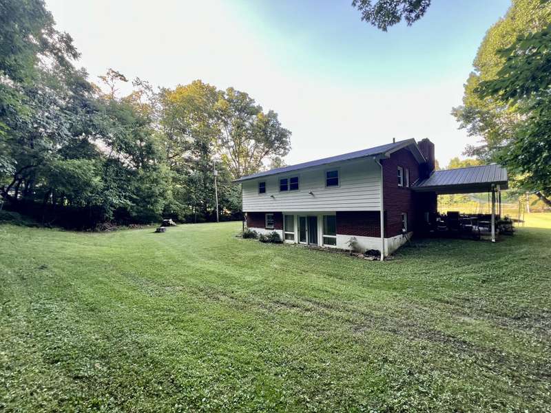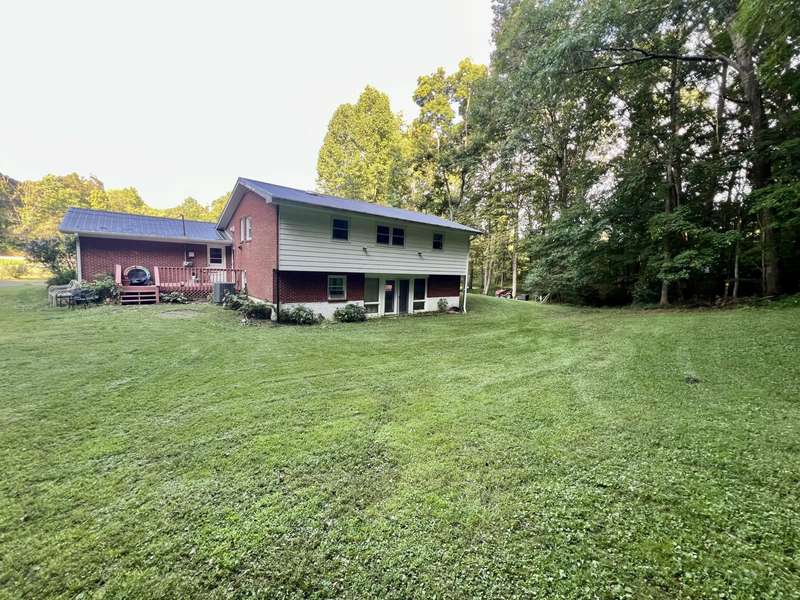 This well-built multi-level 4 bedroom, 3 bath brick home offers a blend of space, comfort, and timeless craftsmanship. The main level features a large formal living room with a beautiful fireplace currently set with gas logs but also suitable for wood burning. Hardwood, tile, and carpet flooring flow throughout the home, adding warmth and character to each space. Also an inviting eat-in kitchen with appliances to stay Upstairs, you'll find the private primary suite along with additional bedrooms designed for comfort and convenience. The lower level showcases a spacious family room with walk-out access, 1 bedroom and 1 bath, and a separate utility room. Outside, a blacktop drive leads to the home and attached garage. The property sits on 2.6 +/- acres of cleared, flat land, offering an absolutely beautiful yard with outstanding curb appeal. Enjoy the large covered patio and back deck, perfect for outdoor living and entertaining. The home features a durable metal roof and is equipped with central heat and air, with ceiling cable as backup heat. City water and sewer are also in place.
