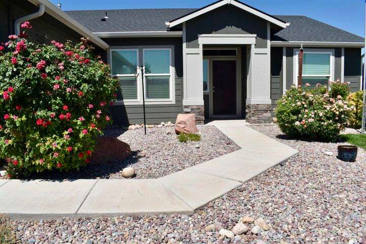 Situated on an oversized corner lot, this home is designed to cater to all your needs while providing ample space for relaxation and entertainment. Master suite features a spacious walk-in closet and en-suite bathroom with a walk-in shower and a dual vanity sink. On the opposite side of the home, you'll find three additional bedrooms, perfect for family, guests, or a home office. Fully Paid for Solar System: Installed in 2022, Triple Pane Windows: New 2½ Ton AC Unit: Installed with new coils for the furnace in 2025, The open concept living and dining areas provide ample room for entertaining guests or enjoying quiet family. The oversized corner lot offers plenty of outdoor space, perfect for gardening, playing, or hosting outdoor gatherings. The well-maintained lawn and landscaping enhance the home's curb appeal.