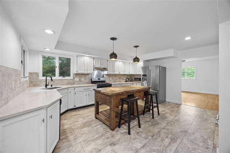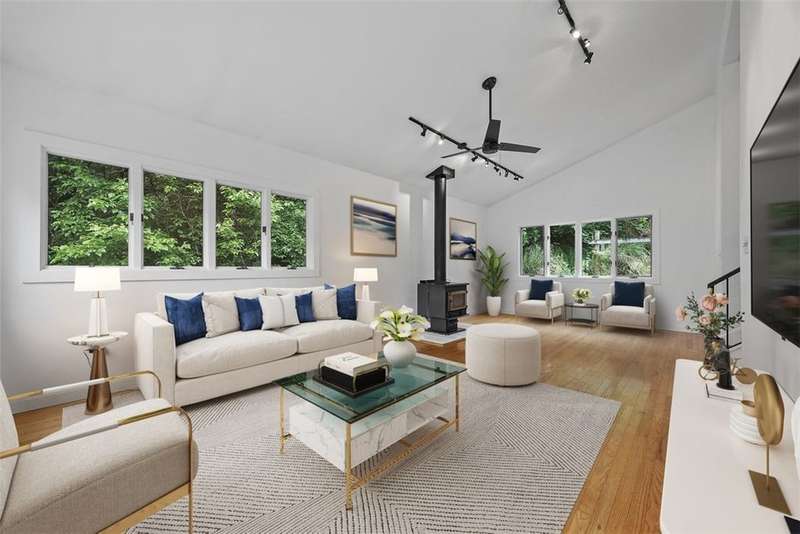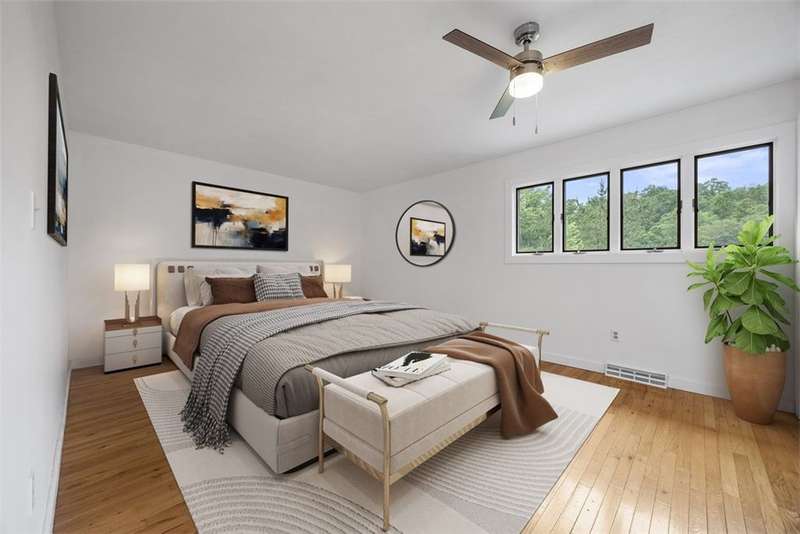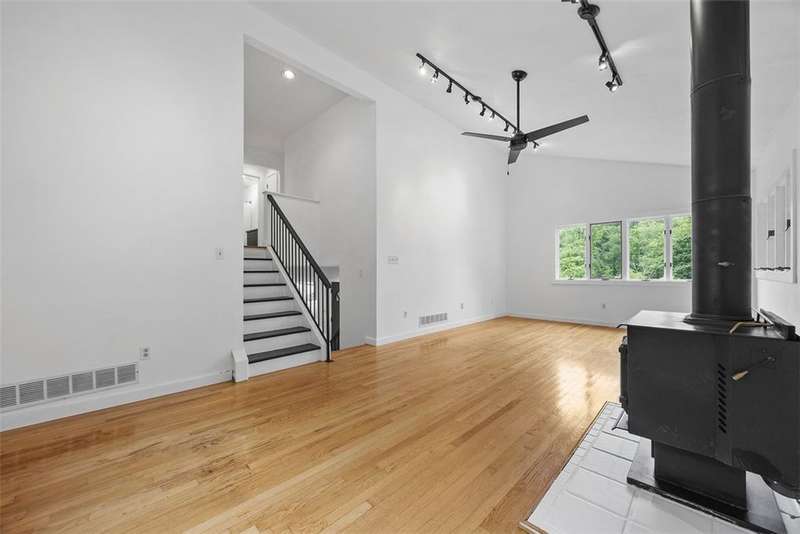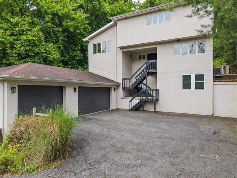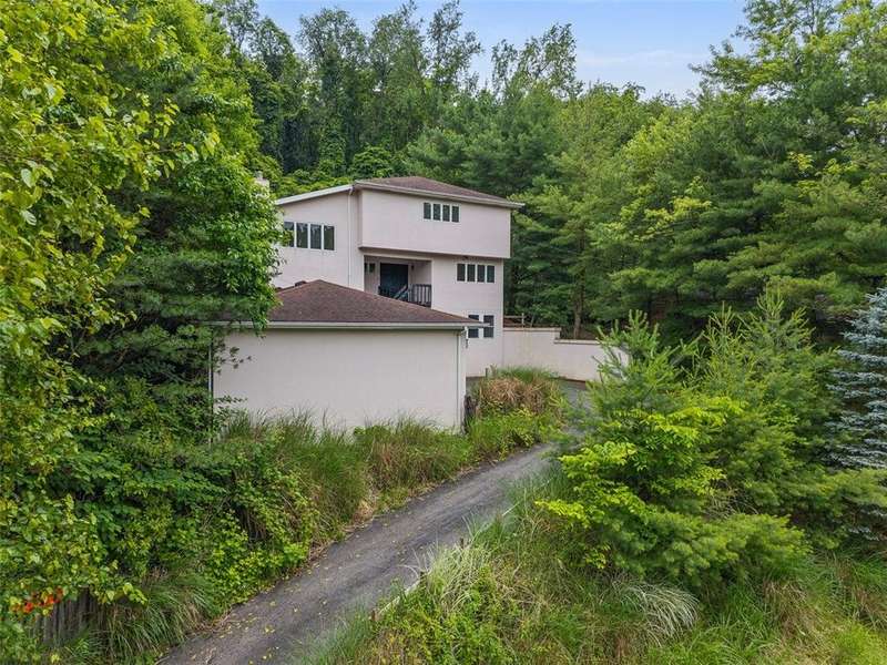 Modern Multi-Level Home Nestled in the Woods of Greentree. With over 2,000 sq ft, this is an architecturally distinct home built into the hillside, designed across five half-levels with panoramic views. The main living room features oversized windows framing expansive views of Greentree and wooded wildlife. It has a bright, modern aesthetic throughout with hardwood floors, clean modern lines, and a gallery-like feel. The large kitchen with island seating is ideal for casual hosting and conversation while cooking. Private primary suite with walk-in double shower, custom built-in closet. Finished Lower-level studio/flex space ideal for work-from-home, art, or musicBack brick patio with tiered outdoor living: lounge area, steps to grassy yard perfect for garden, and additional wooded steps lead up to a 2nd private upper yard surrounded by natureQuiet, wooded setting in Greentree offers both privacy and convenience?just minutes from city access and quick trips to the airport.