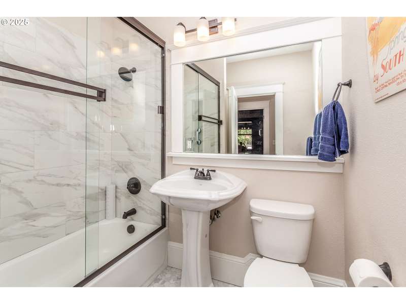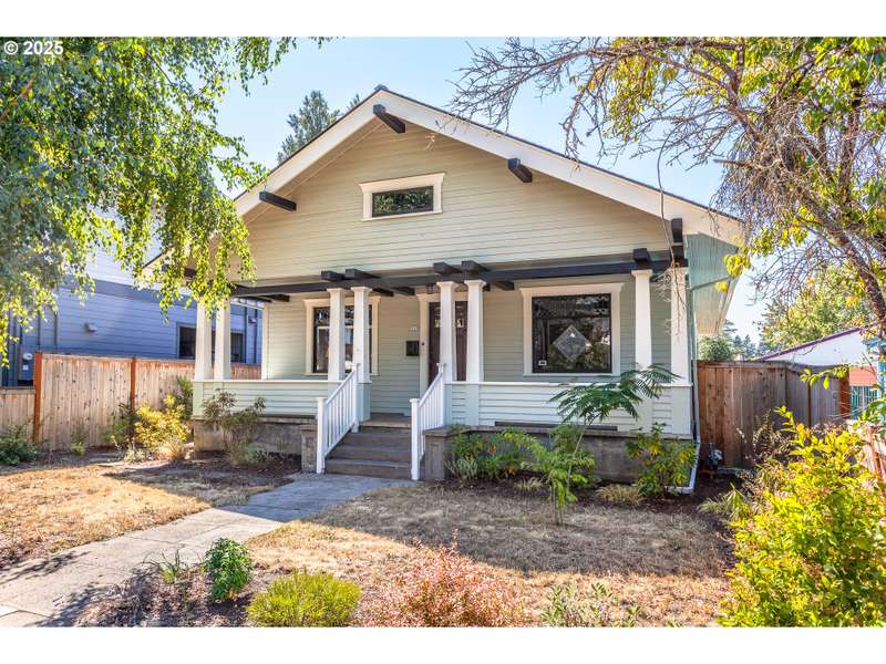 Stunning Woodstock craftsman bungalow! A rare find, this one is the best of both worlds, totally updated, with all the charm and character still intact! Gleaming hardwoods, and an open living room with dark wood crown molding, built-ins, leaded glass windows, and cozy fireplace. Elegant dining room featuring box beam ceilings, leaded glass, wainscoting, and a classic built in buffet. Updated kitchen with granite counters, stainless appliances and breakfast nook. Generous sized bedrooms including a wonderful primary suite complete with tile walk in shower, and French doors to the large backyard deck! Double doors off the living room lead to the office with more beautiful woodwork, and leaded glass windows. Tons of potential in the open basement for storage, hobby room, or possible living space. Large front porch, detached garage, and new roof, all in the heart of Woodstock, close to shopping, restaurants, transit and more! This is a must see! [Home Energy Score = 4. HES Report at https://rpt.greenbuildingregistry.com/hes/OR10193894]