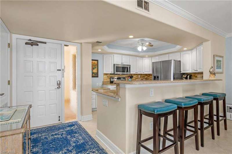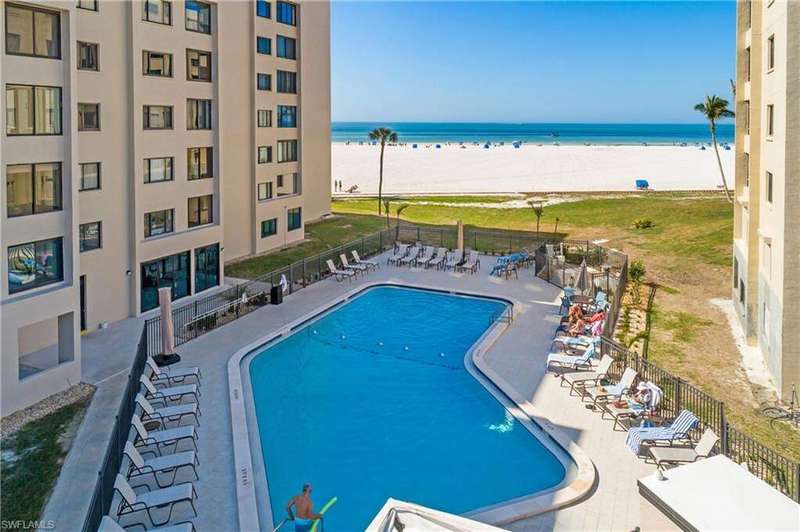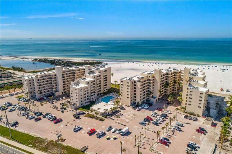 2 bed/2 bath Gulf front condo in Sandarac! This is a must see with breathtaking Gulf views from the kitchen, living room, dining room and Lanai. Stunning open concept kitchen is perfect for entertaining and offers white cabinets, stainless appliances, tile backsplash, tray ceilings and breakfast bar. The large primary bedroom has Estero Bay views, tray ceiling and an ensuite bathroom which has been beautifully updated. This condo comes Turnkey Furnished (with exclusions), making it easy for you to move right in and start enjoying your new home. The screened lanai is perfect for relaxing, entertaining guests or just enjoying stunning Florida Sunsets right from your own private space. Additionally, this property is perfectly situated on the South end of Fort Myers Beach across from Santini Plaza and CVS Pharmacy. Carports are currently undergoing renovations and will be rebuilt, providing convenient covered parking for residents. Community Pool and community room ensure you'll have even more to enjoy in this wonderful community. Don't miss out on this incredible opportunity to own a piece of paradise.