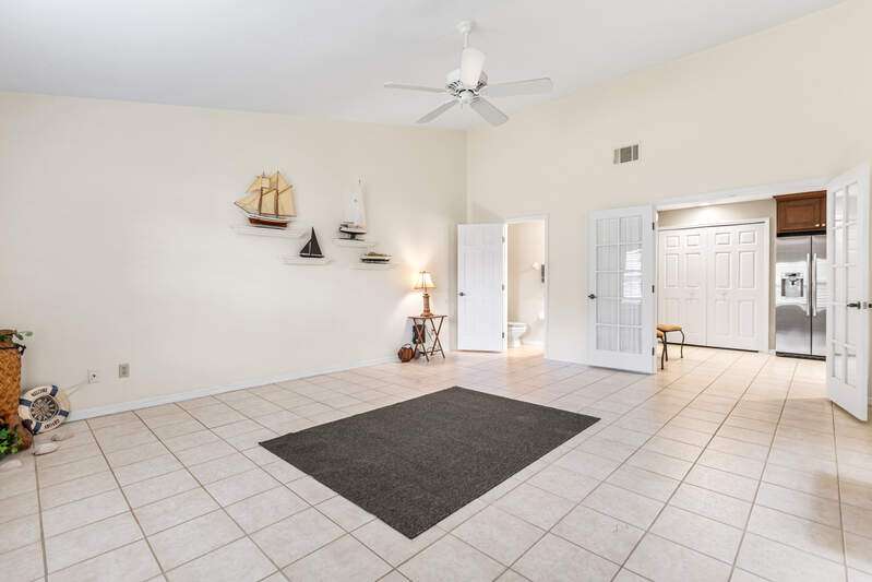 NOW THE ONLY SINGLE-STORY, SINGLE FAMILY HOME in Cross Creek Country Club with BUNDLED GOLF!!! This "condo-home" offers 2 bedrooms and 2.5 baths, A 2-CAR GARAGE, and an EXPANSIVE SUNROOM on a quiet street. It also includes an extra flex room (18'X16'), making it an excellent second suite or space for a pool table, fitness/yoga, a MASSIVE DEN, or another family room. This beautiful residence is 2,000sqft under air and provides LARGE living areas, VAULTED CEILINGS, ample NATURAL LIGHT, separate full dining, GOURMET DESIGNER KITCHEN with breakfast area and built-in desk, and UPDATES throughout. A SPACIOUS master bedroom with an UPDATED ENSUITE BATH and full-wall closet makes this an INVITING RETREAT. This LOVELY home captures your affection: all appliances and W/D included. You will never want to leave this great South Fort Myers community: golf, restaurant/bar, tennis, pickleball, bocce, TWO POOLS, basic cable/internet, and more--or you could spend your time at the incredible beaches, dining, shopping, entertainment, Twins' and Red Sox's training stadiums, and RSW International Airport just 20 minutes away. Because of its low real estate taxes, prime location, and the ROOF & EXTERIOR ARE COVERED BY THE ASSOCIATION, this stunning "condo-home" is rated a "BEST VALUE BUY!" Now's the time to grab your piece of PARADISE!