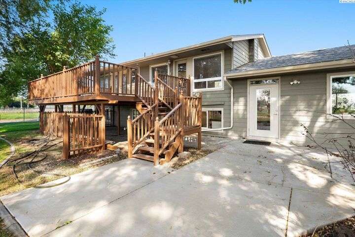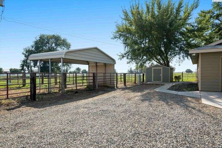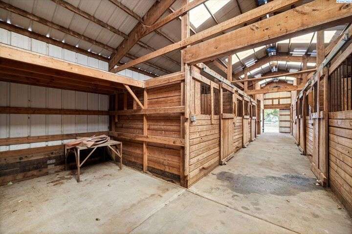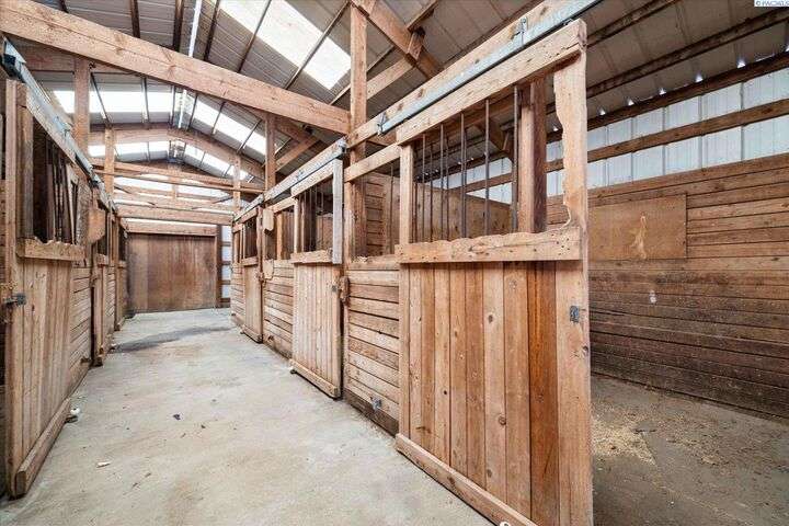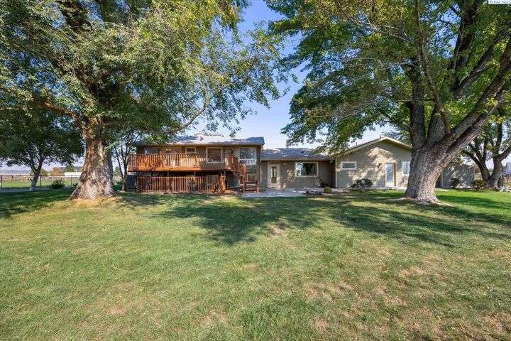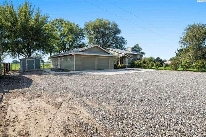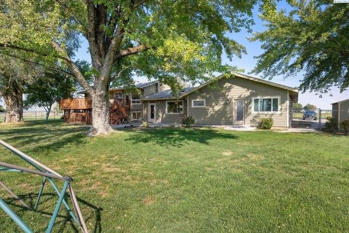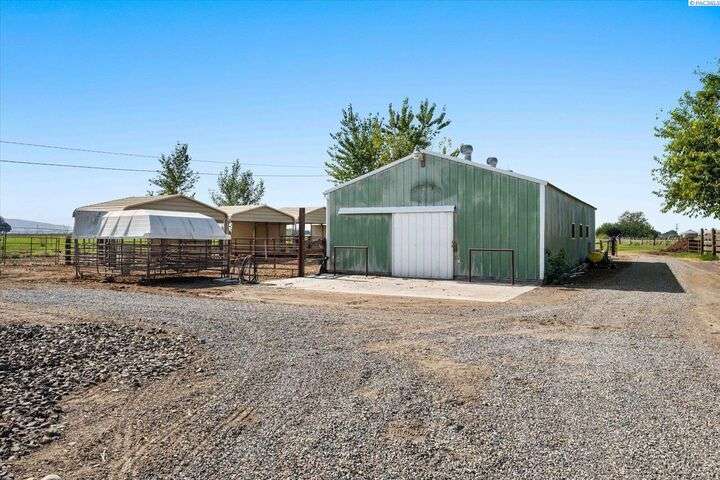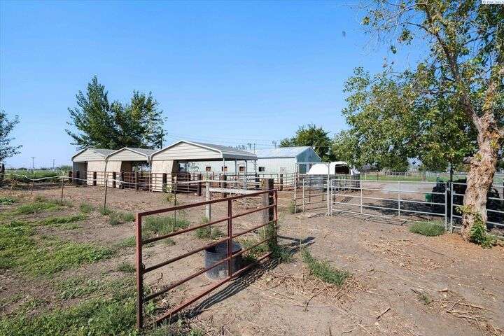 MLS# 287873 Welcome to 5451 Columbia River Road, located in North Pasco's peaceful rural community. A mere 15 minutes from Road 68 with it's great selection of stores, coffee shops, restaurants, health care facilities, and more. This property combines country living with equestrian excellence and farming passions all within 12.33 acres. A completely reimagined in 2011 this split-level home that masterfully blends modern luxury with functional design. As you enter the home, soaring vaulted ceilings with an exposed bean create an impressive welcome, while the seamlessly connected great room, dining, and kitchen form the heart of the home. This main floor flows to a hallway lined with storage options, three-quarter bath, and a versatile multi-flex room complete with walk-in closet and private exit to back yard. Is it a guest room, multi-generational room, office, or den? You choose. The home's previous life was for muti-gen and worked wonderfully! Over to the upstairs, a brass handrail escorts up. There you find the former kitchen has been transformed into a charming snack shack that opens to a cozy gathering room anchored by a wood-burning fire place with raised hearth. The time capsule luxury master bathroom is your private retreat, featuring a jacuzzi bath, separate walk-in shower, spacious walk-in closet and bay window helps complete this Owner's suite. The lower level maximizes functionality with easy access to laundry room, a second flex room, perhaps theater room and two additional bedrooms for family or guests. You will want to venture out to the back yard, mature trees, and the 20X14 deck, that is the perfect spot to sit and enjoy the views that this property offers. The exceptional horse facilities is another benefit that sets this property apart. It features a professional 60X26 stable housing 5 to 7, stalls with a dedicated tack and saddle rooms, plus convenient feed storage. Three covered corrals, an arena that is equipped with lights provides spaces for training and turnout. Property is fenced with an irrigation system ensures both security and healthy pastures. Come and visit, you just might find that place called, home.