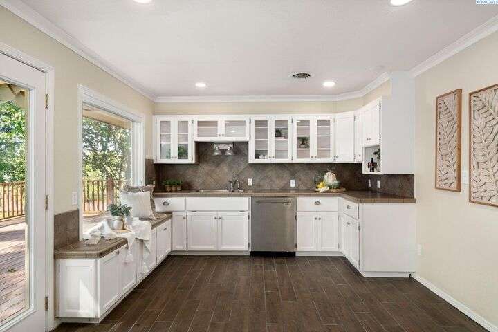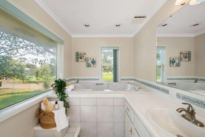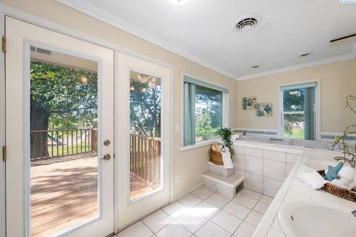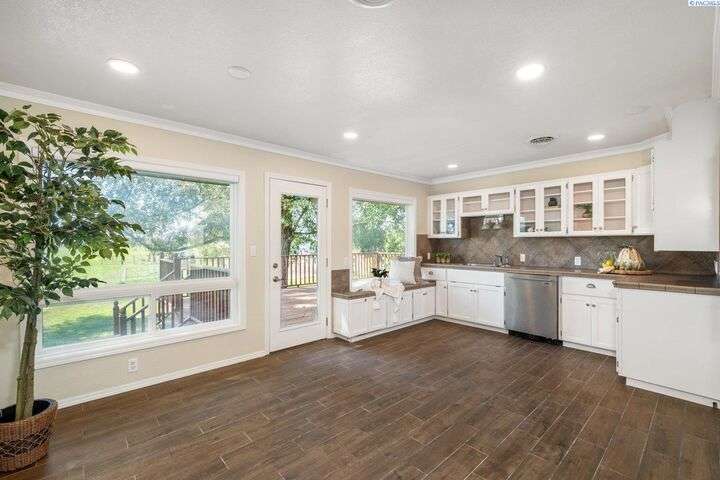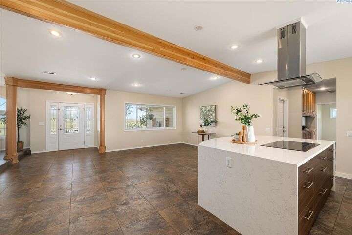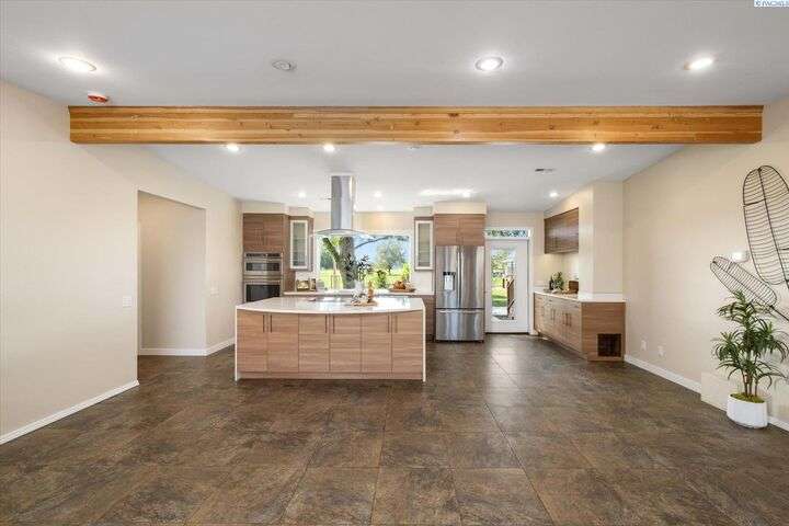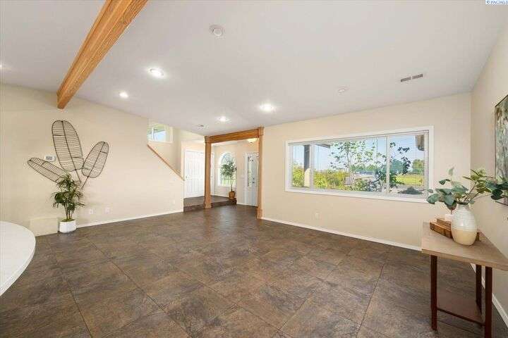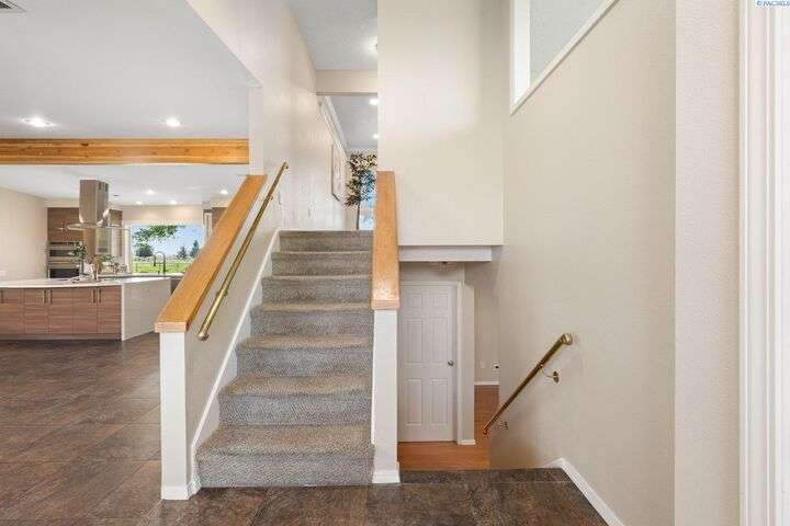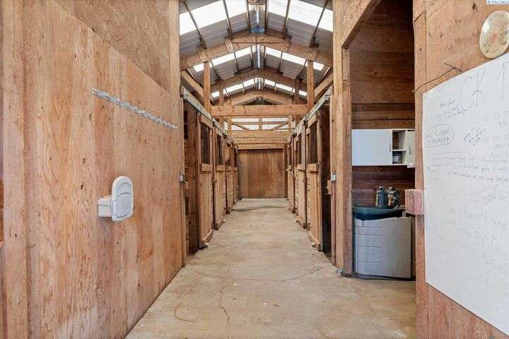 MLS# 287873 Welcome to 5451 Columbia River Road, located in North Pasco's peaceful rural community. A mere 15 minutes from Road 68 with it's great selection of stores, coffee shops, restaurants, health care facilities, and more. This property combines country living with equestrian excellence and farming passions all within 12.33 acres. A completely reimagined in 2011 this split-level home that masterfully blends modern luxury with functional design. As you enter the home, soaring vaulted ceilings with an exposed bean create an impressive welcome, while the seamlessly connected great room, dining, and kitchen form the heart of the home. This main floor flows to a hallway lined with storage options, three-quarter bath, and a versatile multi-flex room complete with walk-in closet and private exit to back yard. Is it a guest room, multi-generational room, office, or den? You choose. The home's previous life was for muti-gen and worked wonderfully! Over to the upstairs, a brass handrail escorts up. There you find the former kitchen has been transformed into a charming snack shack that opens to a cozy gathering room anchored by a wood-burning fire place with raised hearth. The time capsule luxury master bathroom is your private retreat, featuring a jacuzzi bath, separate walk-in shower, spacious walk-in closet and bay window helps complete this Owner's suite. The lower level maximizes functionality with easy access to laundry room, a second flex room, perhaps theater room and two additional bedrooms for family or guests. You will want to venture out to the back yard, mature trees, and the 20X14 deck, that is the perfect spot to sit and enjoy the views that this property offers. The exceptional horse facilities is another benefit that sets this property apart. It features a professional 60X26 stable housing 5 to 7, stalls with a dedicated tack and saddle rooms, plus convenient feed storage. Three covered corrals, an arena that is equipped with lights provides spaces for training and turnout. Property is fenced with an irrigation system ensures both security and healthy pastures. Come and visit, you just might find that place called, home.
