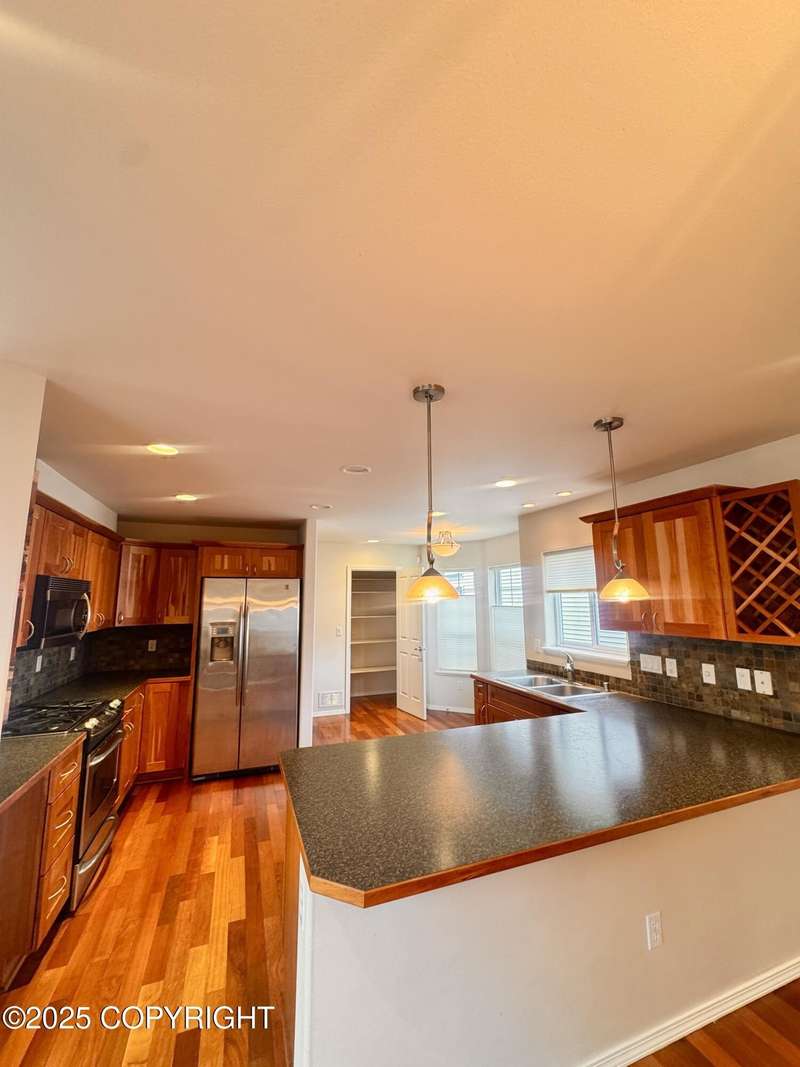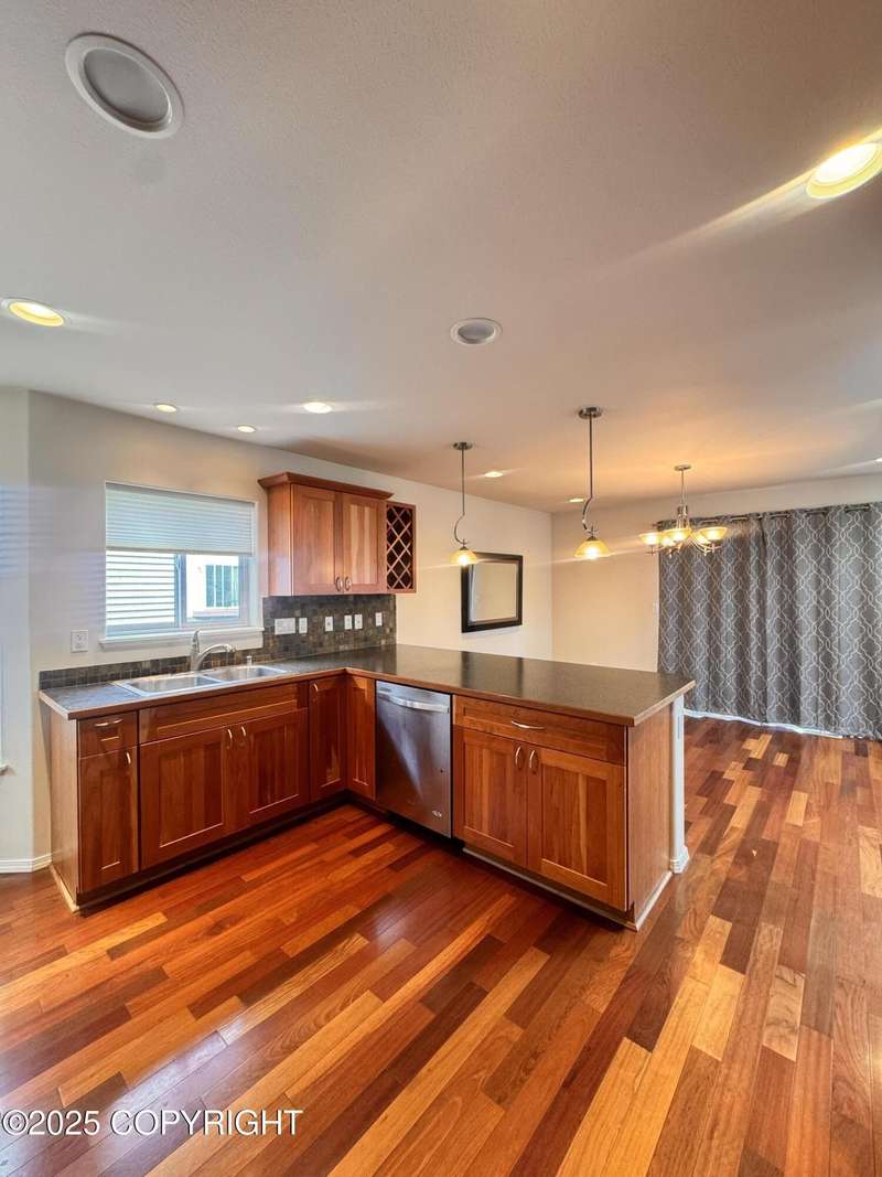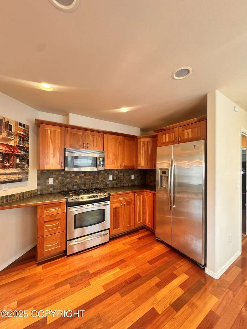 Beautiful 4-bedroom, 2.5-bath standalone condo in the Southport neighborhood of South Anchorage. Primary bedroom features an ensuite bathroom with a walk-in closet, jetted tub, and stand-up shower. Home includes Brazilian cherry hardwood floors, stainless steel appliances, gas-insert fireplace, loft, and heated 2-car garage. In-unit laundry and shared yard included. HOA covers snow removal and yard maintenance. Tenant pays gas, electric, and trash. Prime location near schools, parks, shopping and more. Pets considered.