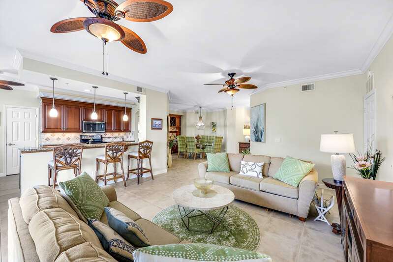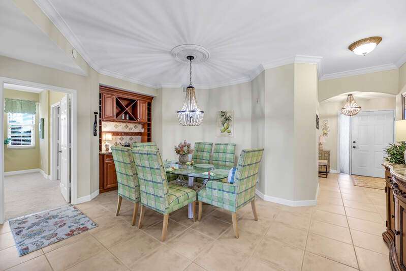 Move right into this spacious 3-bedroom, 2.5-bath corner unit offering some of the best value on Marco Island. From your expansive wrap-around lanai, enjoy stunning Florida sunsets and sweeping Barfield Bay views that make every evening unforgettable. The home features a floor plan that lives like a single-family home. The kitchen is designed for both style and function with stainless steel appliances, granite countertops, breakfast bar, eat-in nook, formal dining area, and a generous walk-in pantry. Bedrooms are spacious with custom closets throughout, while the primary bathroom includes dual vanities, soaking tub, oversized enclosed shower, and a private water closet. In addition, a closet was converted to an office with a built-in desk & cabinets. Electric storm shutters and impact windows offer peace of mind. Vintage Bay offers a screened pool, clubhouse with full kitchen, private boardwalk, and gazebo overlooking Barfield Bay-perfect for sunset gatherings. and assigned parking in the under-building garage adds convenience.