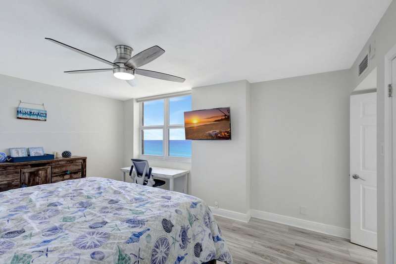 Annual price. Direct ocean, 14th floor, wrap around balcony with unbeatable views where you can see miles and miles of beach. In this condo you will wake up to the water, as both bedrooms have unobstructed ocean views from the pillow. This tropical themed unit is very spacious with an extra large living area, updated kitchen, wet bar for entertaining, and plenty of storage. Nothing is outdated in this unit, with no carpet whatsoever, modern tile and wood floors throughout, impact windows, updated blinds, and updated bathrooms and showers. The master bedroom has balcony access through floor-t- ceiling sliders and a walk-in closet. This building has a pool, gym, and tennis court. Dont miss out on paradise and enjoy the views that you deserve. ? ? Furniture is different than ph