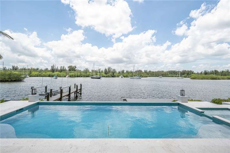 Luxury riverfront living in Vero Beach! Custom 2022 built home with 4 beds, 4 baths, 3 car garage, and 5,261 SF. Soaring ceilings and floor-to-ceiling sliders frame breathtaking river views, seamlessly connecting indoor and outdoor living. Chefs kitchen with quartz counters & premium Jenn-Air appliances, elegant living room gas fireplace, private saltwater pool and spa, dock with boat & jet-ski lifts, and 109 feet of river frontage. Meticulously crafted riverfront retreat offering ultimate luxury, style, and waterfront lifestyle, perfect for entertaining and boating enthusiasts.