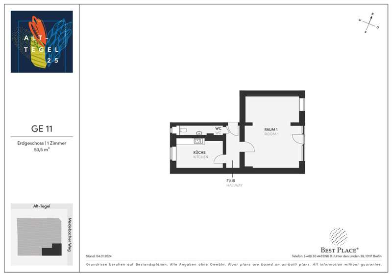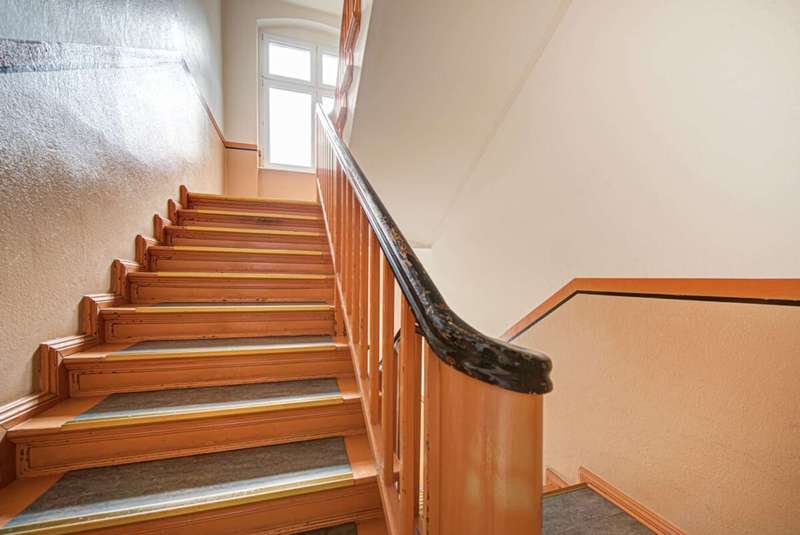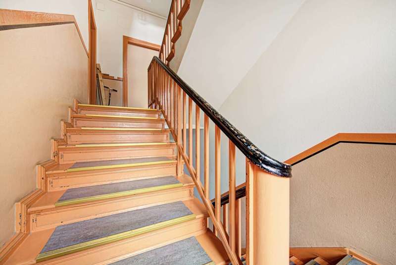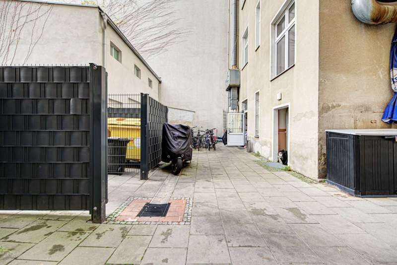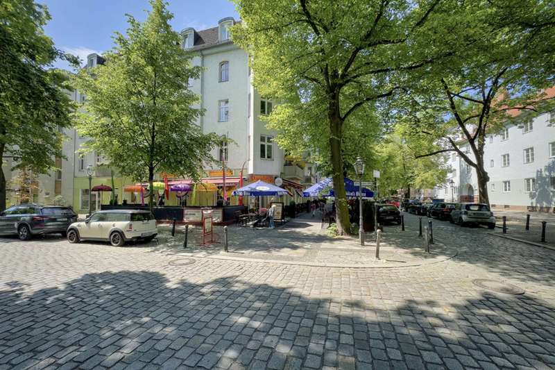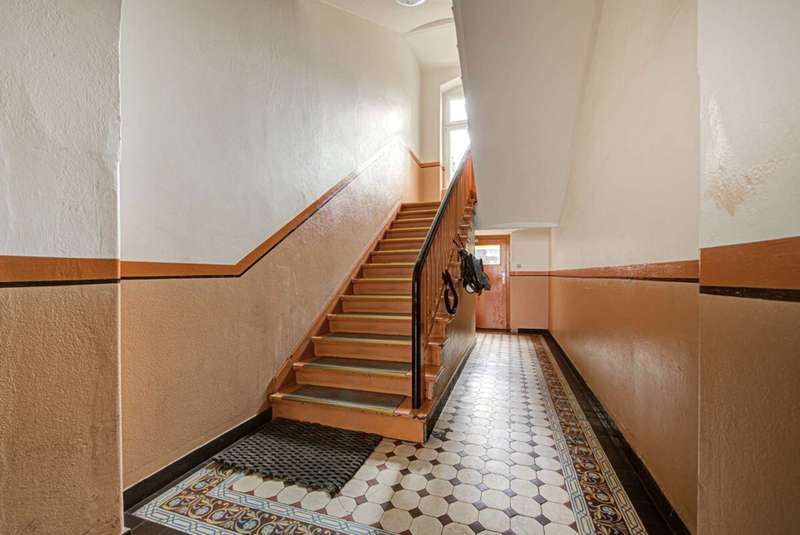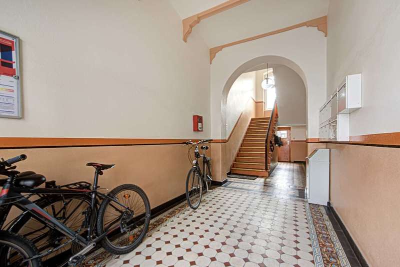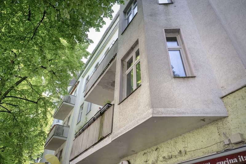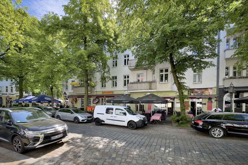 This imposing Wilhelminian-style corner building at Alt-Tegel 25, replete with a charming tower, catches the eye from afar. And that’s saying something in this beautiful Alt-Tegel neighbourhood, which is home to a large number of classic properties, tall trees and cobblestone streets. A residential and commercial building, Alt-Tegel 25 was built in 1910. Bay windows, dormers and balconies delineate the facade. The property is home to sixteen apartments and three commercial units on five floors. The apartments feature between two and four rooms, with floor plans ranging from approx. 59 to 116 sqm. Street-facing balconies and roof terraces provide a place to relax in the fresh air for many of the apartments. Most bathrooms are equipped with bathtubs. Most of the four-room apartments also have a half-bathroom for guests. The three commercial units are on the ground floor and are used as an Indian restaurant, pizzeria and cosmetic studio.