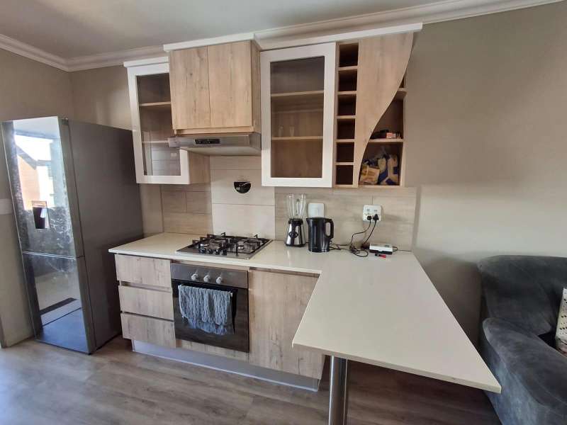 Modern Two Bed Living in a Secure Eco Estate Step into stylish and secure living with this Top floor 2-bedroom apartment, nestled within the prestigious Roodepark Eco City Estate in Kameeldrift East. This unit is perfect for young professionals, small families, or investors seeking quality and convenience. Property Features: 2 spacious bedrooms with built-in cupboards 1 full bathroom featuring both a bath and shower Open plan living area ideal for modern living and entertaining Modern kitchen with: High-quality melamine cupboards Quartz countertops Gas hob with electric oven and cooker hood Gas geyser Prepaid water, electricity, and gas Estate Facilities: Integrated DSTV infrastructure compatible with HD and Explora decoders High-speed Wi-Fi availability Green communal areas with jungle gyms and dedicated braai facilities Communal entertainment areas for family and friends Walking and running trails to enjoy the estate?ÇÖs natural surrounds Dedicated kids' play areas Top-Tier Security Features: 24-hour surveillance with CCTV camera recording Biometric and tag access control at the entrance 24-hour manned security at access gates Electric perimeter fencing Guarded security patrols Wireless intercom system for resident and visitor communication Whether you're looking to invest or settle down, this well-appointed apartment offers unmatched value in a secure, eco-conscious environment. Don?ÇÖt miss this opportunity to own a property in one of Pretoria?ÇÖs sought-after lifestyle estates.