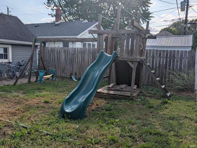 Welcome to 1045 S Indiana Avenue! This sweet 2 bed 1 bath bungalow offer a spacious 20x11FT living room that opens into the formal dining space, a spacious eat in kitchen, over 1000sqft unfinished basement, an easily maintainable and fully privacy fenced in backyard, a cozy covered back porch and a detached garage. The swing set will also be staying! Some recent updates include: New roof, gutters, electrical box, water softener, water filtration system and all duct work serviced- within 2 years. Previous updates include: windows, furnace and AC- 2018 Don't miss out!