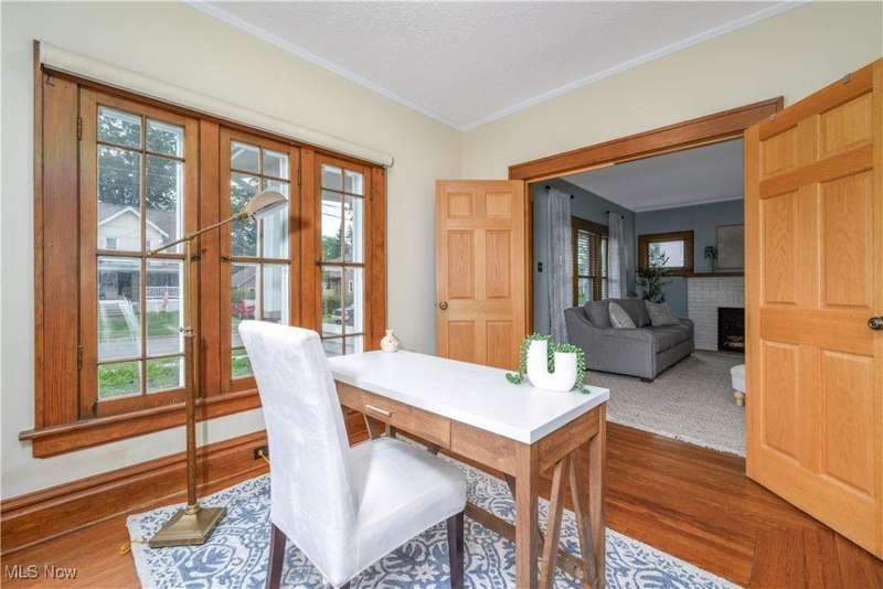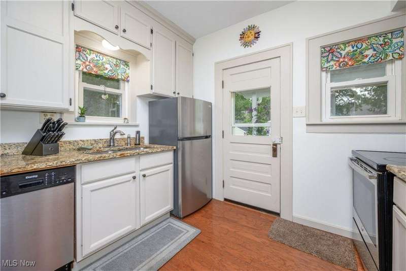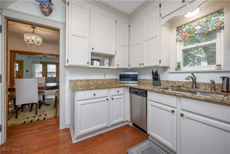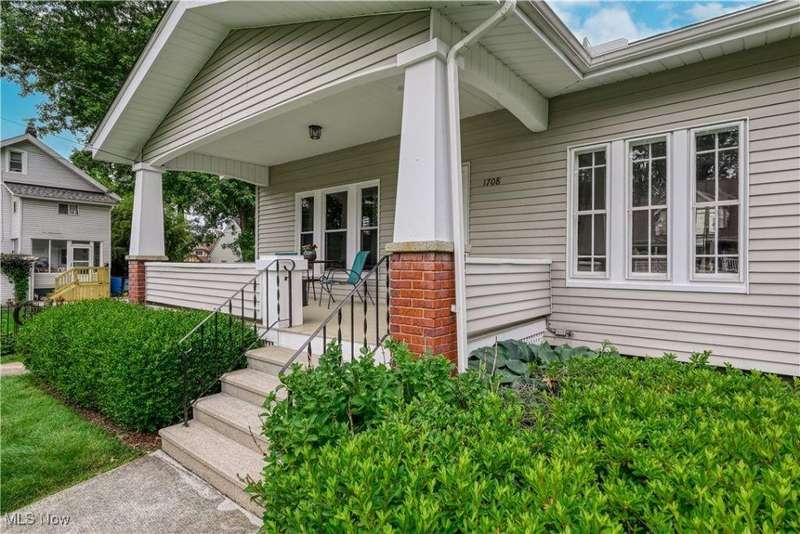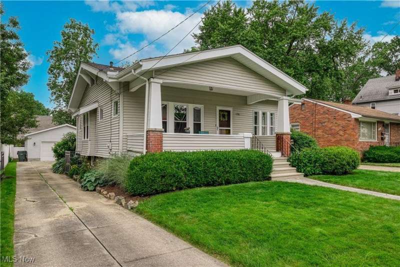 Charming Craftsman Bungalow with Classic Details & Modern Updates! Located in the heart of Cuyahoga Falls, this beautifully maintained Craftsman-style bungalow blends timeless character with thoughtful updates. This inviting 3-bedroom, 1-bath home features original inlaid hardwood floors and rich natural woodwork throughout, showcasing the craftsmanship of a bygone era. Step into the spacious living room, where a cozy fireplace creates a warm, welcoming atmosphere. The formal dining room offers elegant built-ins and a charming window seat perfect for entertaining! The updated kitchen is both functional and stylish, featuring granite countertops, ample cabinet space, and all appliances are included. Updated bathroom provides modern comfort without compromising the home's vintage appeal. The full basement offers generous storage or potential for additional living space. A full-width front porch invites you to relax and unwind. Enjoy a fully fenced backyard with an elevated patio ideal for summer gatherings. The newer, oversized 2-car garage plus an extra parking area ensures convenience and flexibility. This home is a rare blend of historic charm, modern livability, and walkable convenience - schedule your showing today!
