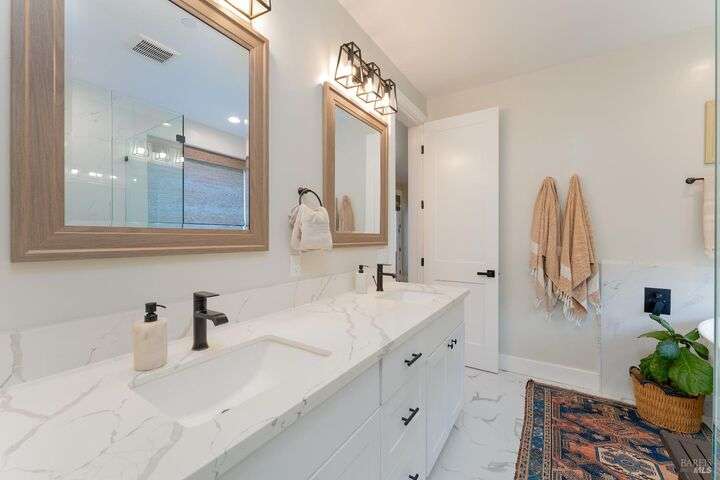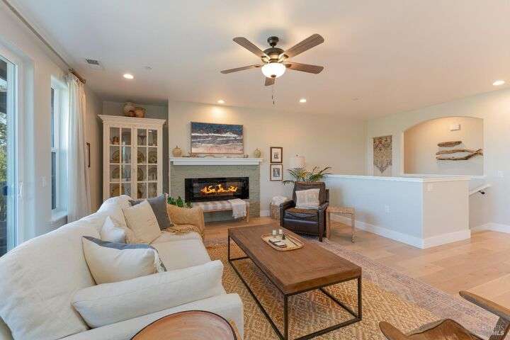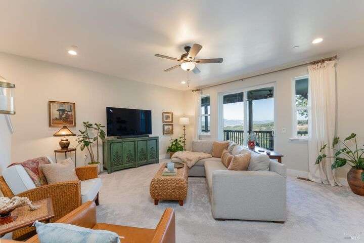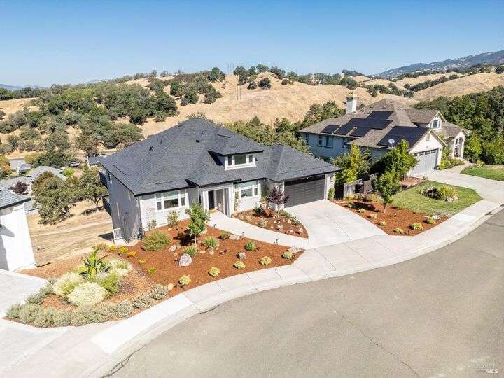 Sophistication meets comfort in this newly built 4-bedroom, 4-bath, 3,282 sq. ft. home in the exclusive Vichy Springs community. A grand entry welcomes you into airy living spaces designed for both entertaining and everyday ease. The chef's kitchen features an oversized quartz island, custom cabinetry, walk-in pantry, wine refrigerator, and 6-burner rangeideal for hosting or casual dining. The main-level family room with a sleek stone fireplace extends to a spacious deck, where breathtaking views create the perfect backdrop for gatherings. The primary suite offers its own deck access, spa-inspired bath with soaking tub, quartz shower, and generous walk-in closet. Downstairs, a second family room, three guest bedrooms, and two full baths provide versatility for guests or multigenerational living. Elevated details include 8-foot doors, custom lighting, Tesla charger, interior sprinklers, and abundant storage accessible from inside the home. Situated on a quiet cul-de-sac with guest parking and landscaped grounds, this home offers refined living in a serene setting with effortless commuting access.