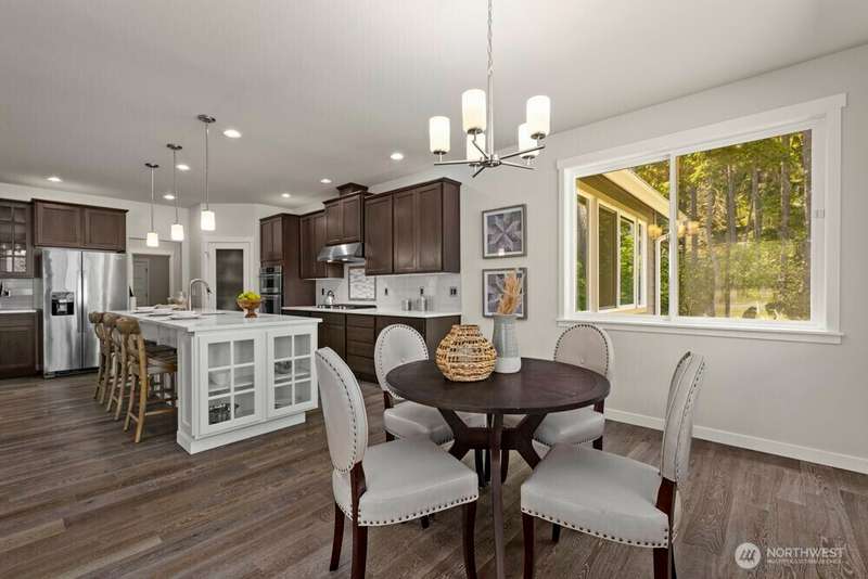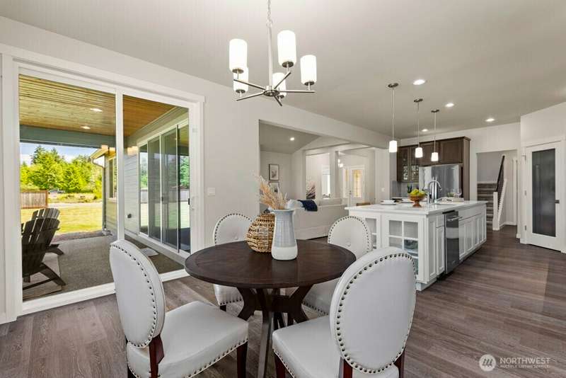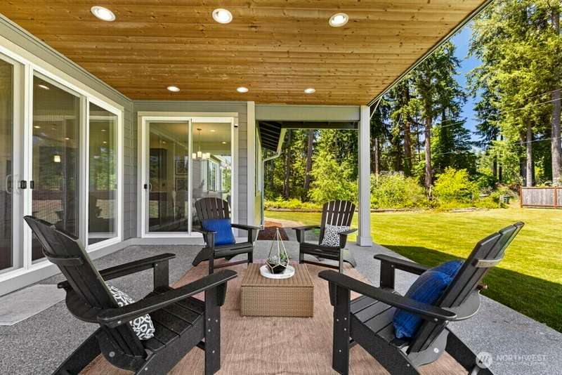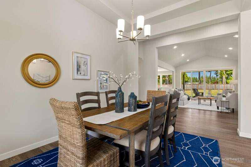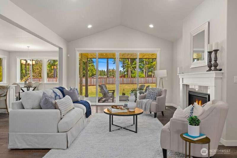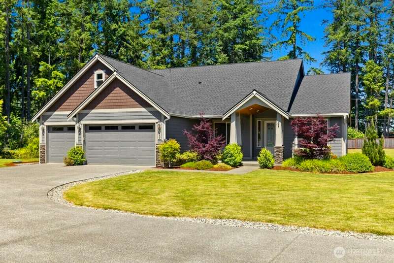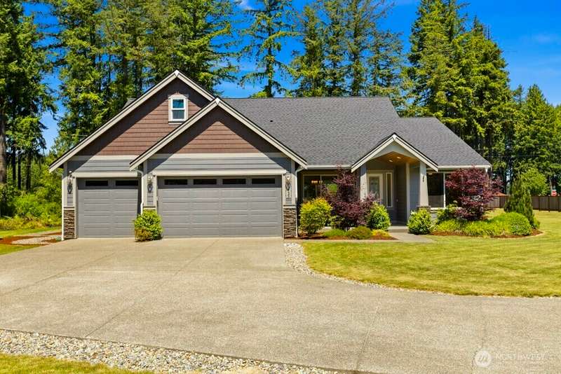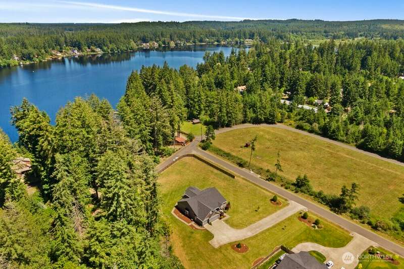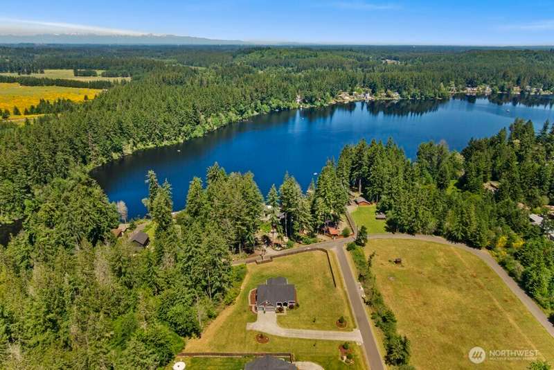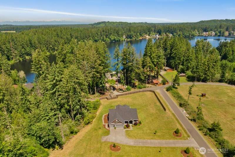 Experience idyllic living on 5 acres that stretch to the shores of Offutt Lake, where neighbors gather to fish and stories are plentiful. Located in an 8-home enclave in Tenino, this timeless home offers main-level living in a tranquil setting. Sip iced tea with guests, relax on the expansive covered patio to watch wild rabbits graze, or head indoors to enjoy a main-level primary suite with dual vanities, a full tile shower, soaking tub, and dual closets. When hungry, grab a bite from a stunning kitchen where daily tasks are never a chore. Office, living spaces, and 2 additional bedrooms on the main. Upstairs a loft, full bathroom, and 4th bedroom or bonus room add capacity for life’s daily pleasures. This home is a lifestyle all its own.