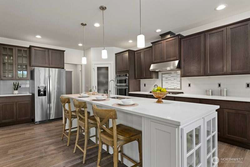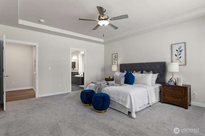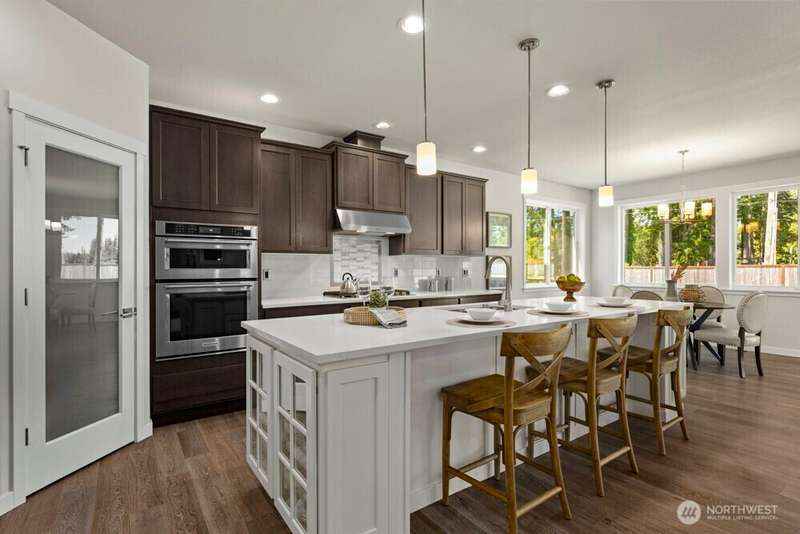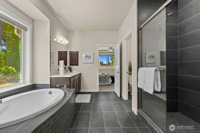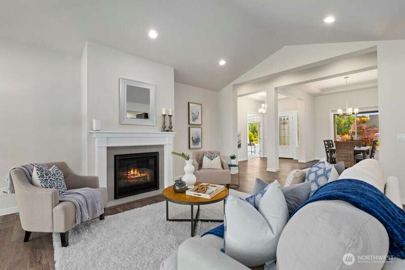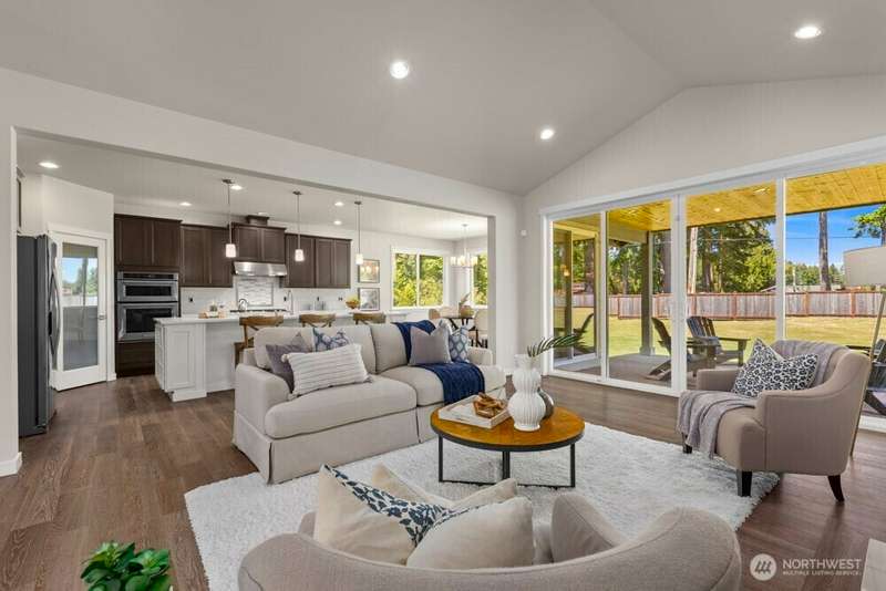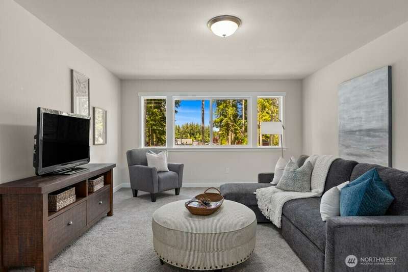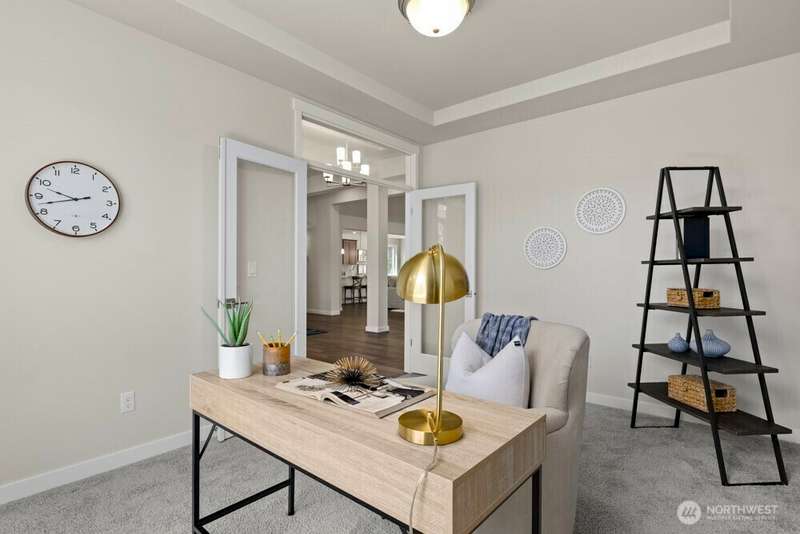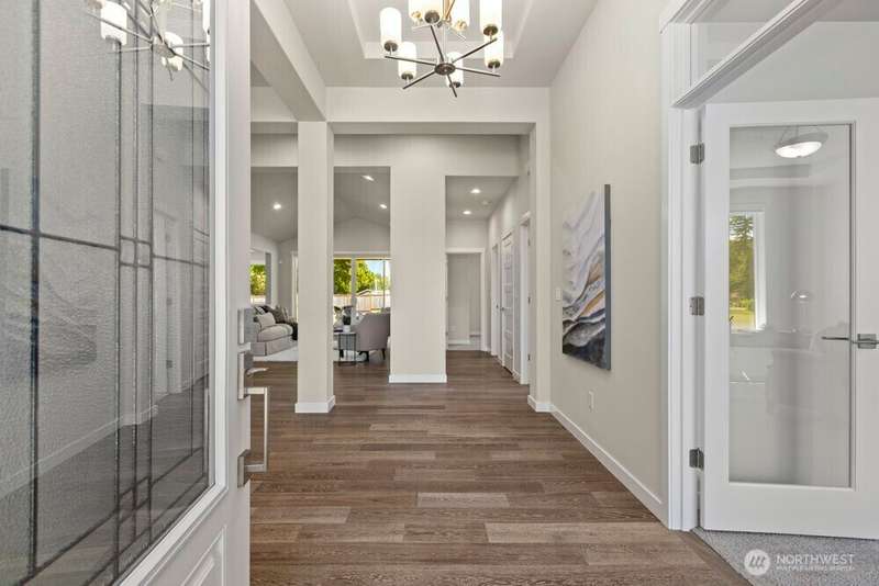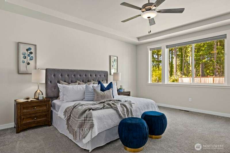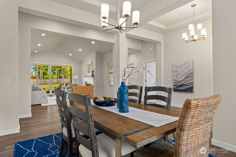 Experience idyllic living on 5 acres that stretch to the shores of Offutt Lake, where neighbors gather to fish and stories are plentiful. Located in an 8-home enclave in Tenino, this timeless home offers main-level living in a tranquil setting. Sip iced tea with guests, relax on the expansive covered patio to watch wild rabbits graze, or head indoors to enjoy a main-level primary suite with dual vanities, a full tile shower, soaking tub, and dual closets. When hungry, grab a bite from a stunning kitchen where daily tasks are never a chore. Office, living spaces, and 2 additional bedrooms on the main. Upstairs a loft, full bathroom, and 4th bedroom or bonus room add capacity for life’s daily pleasures. This home is a lifestyle all its own.