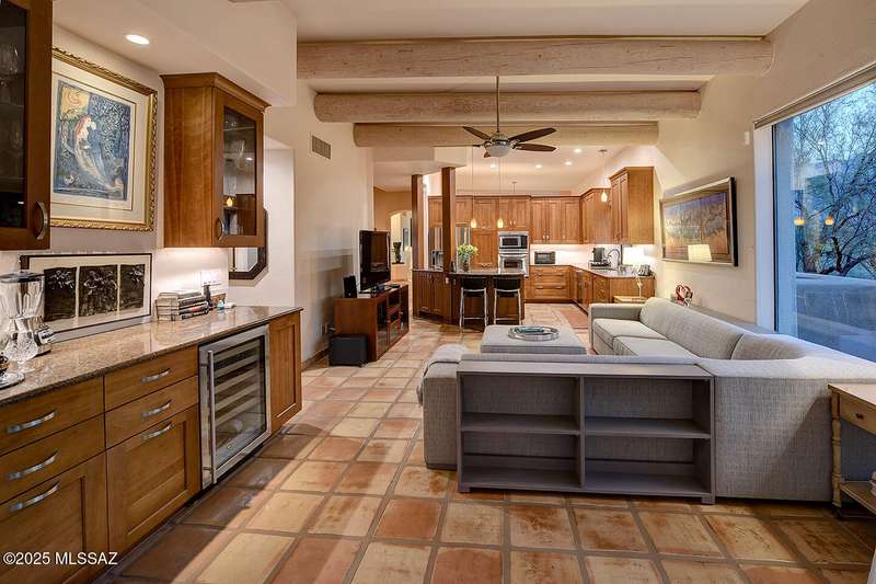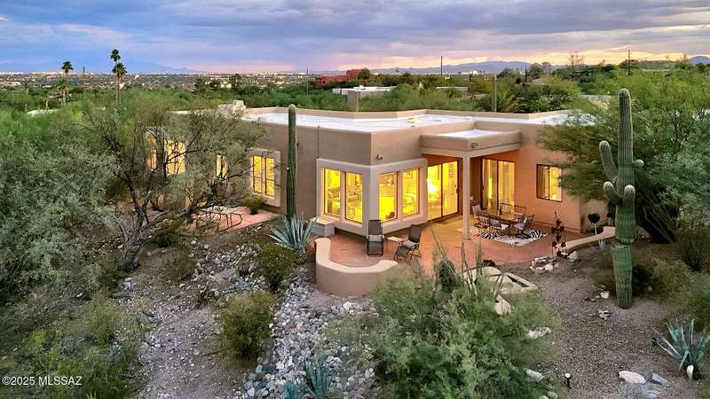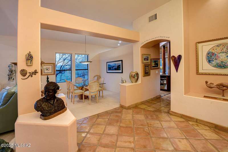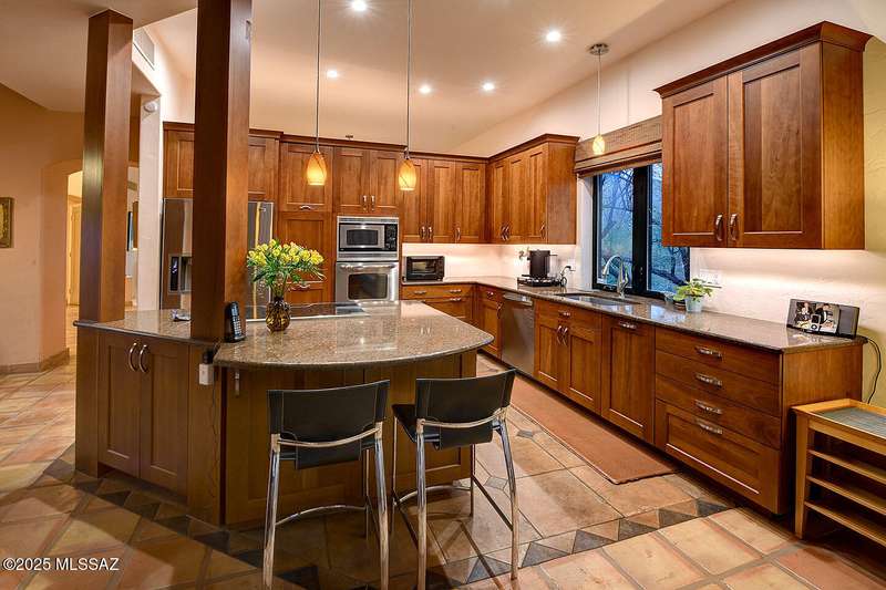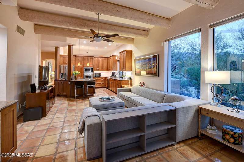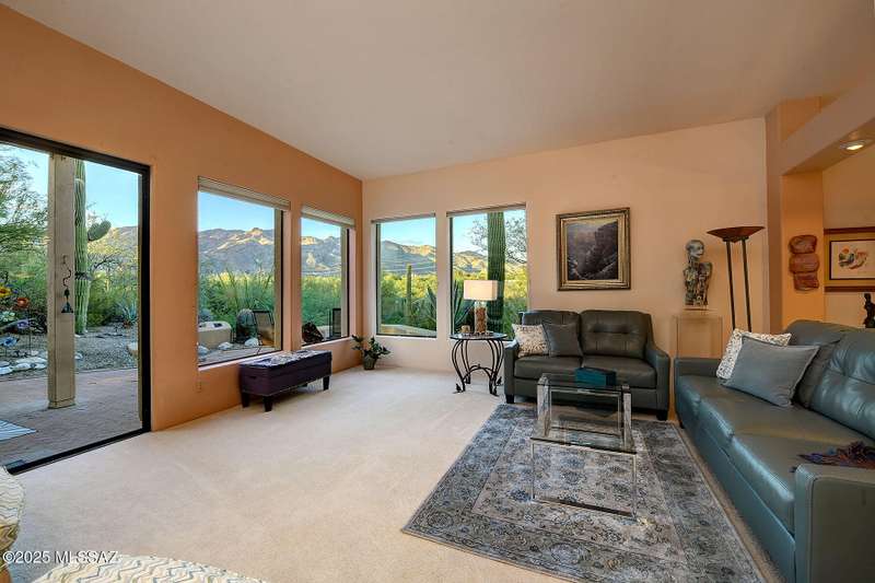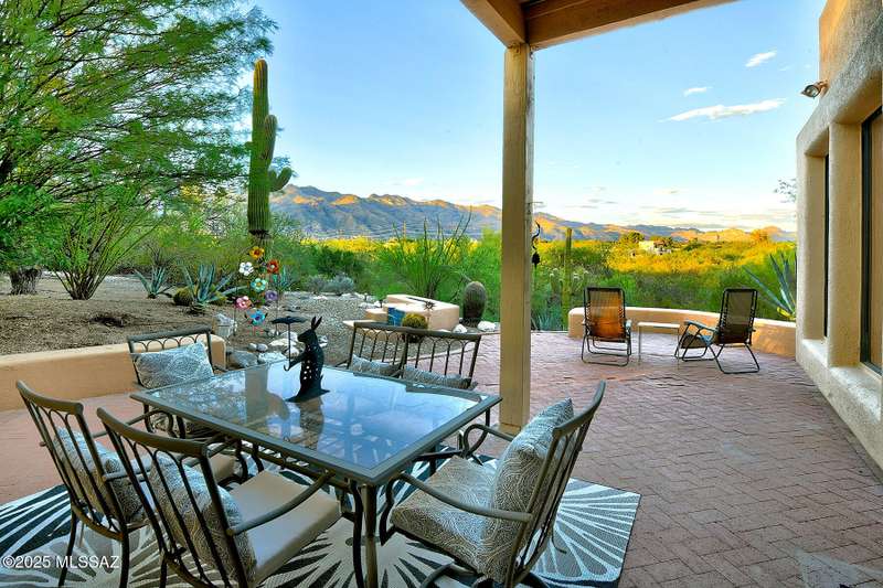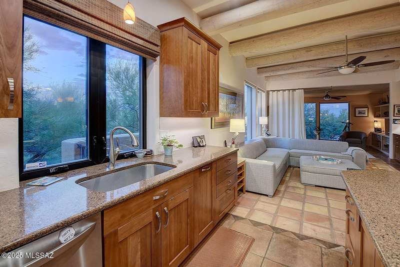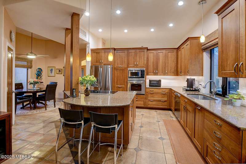 Perched high in sought-after Las Alturas, this stunning 3,226 sq. ft. residence offers refined desert living at its best. Enter through a charming, private courtyard and step into a home designed with both elegance and comfort in mind. The expansive living room boasts soaring 10-foot ceilings and walls of windows that flood the space with natural light, while the formal dining room provides the perfect setting for intimate gatherings. Newly recoated roof w/2 year warranty, newer HVAC system. The beautifully remodeled kitchen is the true heart of the home, featuring a generous center island, breakfast bar, and eat-in area, all opening to the spacious family room or separate den, ideal for entertaining.The split floor plan ensures privacy, with the primary suite offering a peaceful