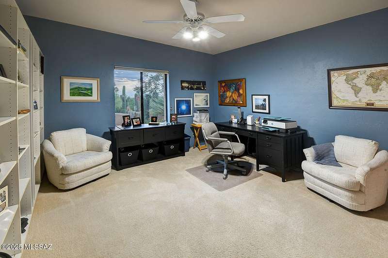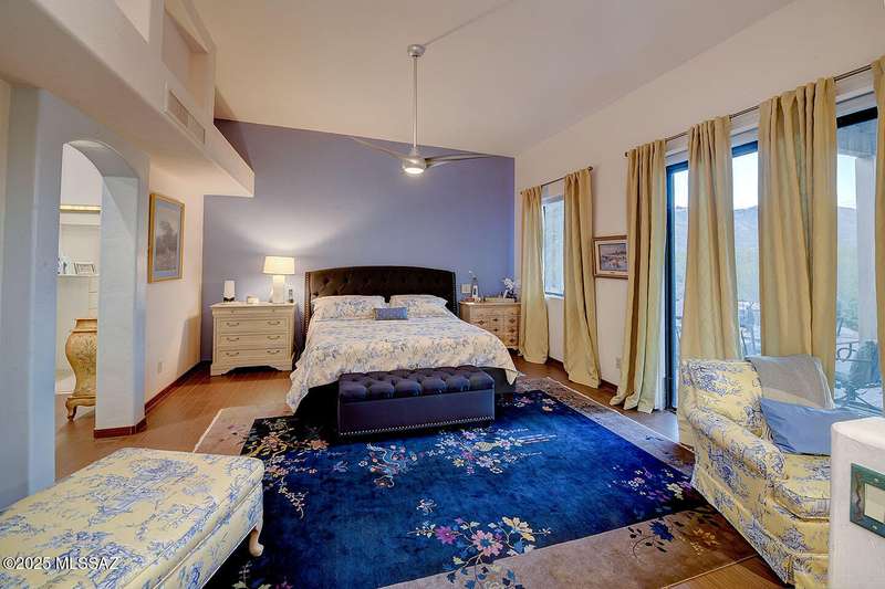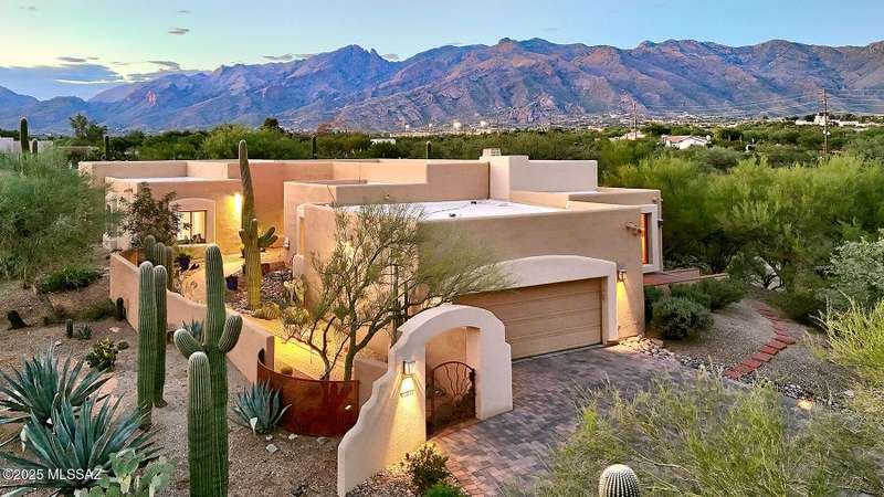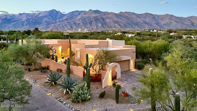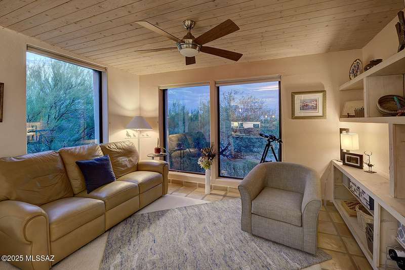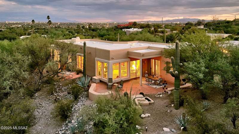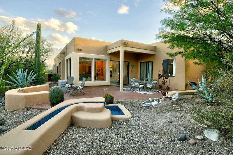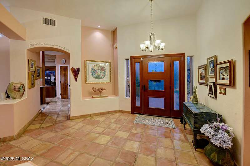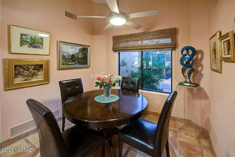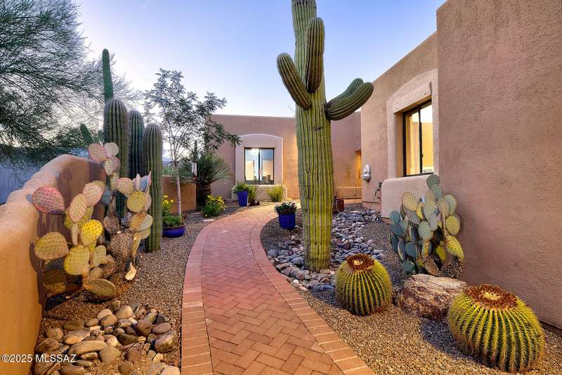 Perched high in sought-after Las Alturas, this stunning 3,226 sq. ft. residence offers refined desert living at its best. Enter through a charming, private courtyard and step into a home designed with both elegance and comfort in mind. The expansive living room boasts soaring 10-foot ceilings and walls of windows that flood the space with natural light, while the formal dining room provides the perfect setting for intimate gatherings. Newly recoated roof w/2 year warranty, newer HVAC system. The beautifully remodeled kitchen is the true heart of the home, featuring a generous center island, breakfast bar, and eat-in area, all opening to the spacious family room or separate den, ideal for entertaining.The split floor plan ensures privacy, with the primary suite offering a peaceful