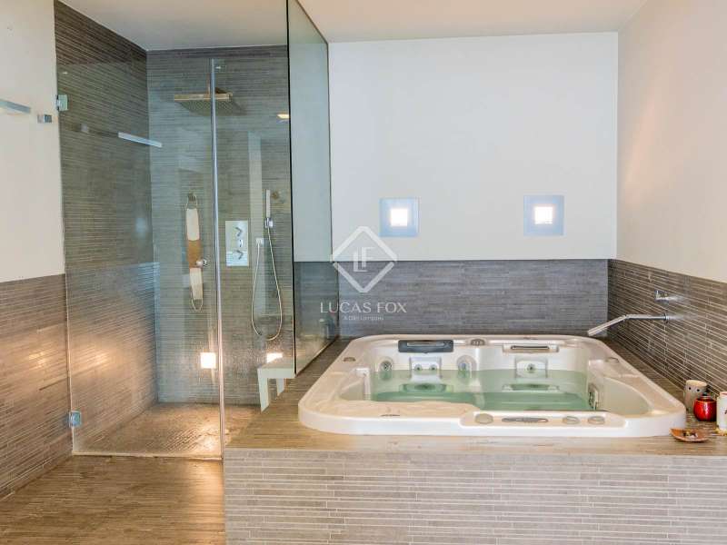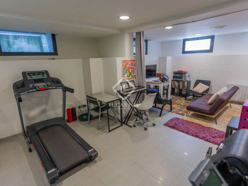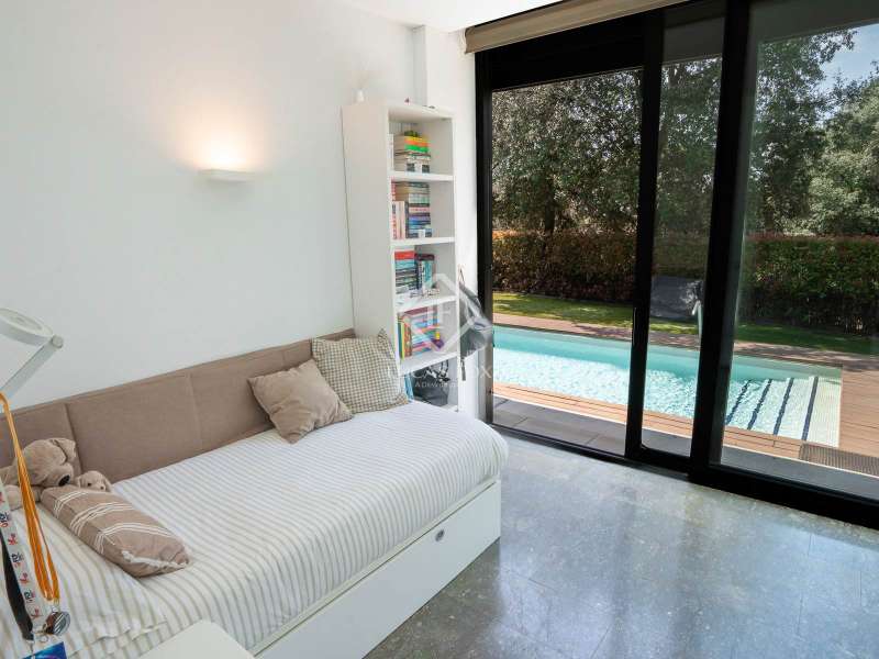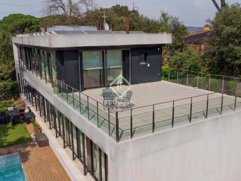 Lucas Fox presents this villa with contemporary architecture, great energy efficiency, and great privacy in one of Girona's most sought-after residential areas . Its location offers excellent sunlight exposure, quick connections to the city centre , and convenient access to education, healthcare, and transportation amenities . The property sits on a sloping plot and was built in 2007 to adapt to the terrain. It enjoys a southerly aspect, providing constant light throughout the day. The architectural design is notable for its simplicity, with concrete as the main element, providing character, durability, and a timeless aesthetic. The main floor features a spacious day area living-dining room with large windows overlooking the garden. The Santos kitchen offers a functional and elegant design. On this same floor, there is a ensuite bedroom, two double bedrooms that share a full bathroom , and a guest toilet. The upper floor houses a multipurpose space, ideal as an study, library, or sitting area, with access to a large private terrace. On this same floor is the main bedroom with a private bathroom and dressing room. The lower floor features an English courtyard providing natural light and ventilation, a garage with capacity for two cars and a motorcycle, a bicycle storage room , a gym and spa area, a games room , and a separate utility room . This level complements the property with functional spaces. Exterior, the house has a garden with low-maintenance vegetation, exterior parking for several vehicles, a porch area with a barbecue, and a heated pool , perfectly integrated and with a good orientation that offers maximum privacy. The property has recently been updated to maximize its energy efficiency, with the addition of 30 solar panels, electric shutters , and other features. A beautiful property with high-quality materials located in one of Girona's most sought-after areas , ideal both as a permanent residence and for those seeking an exclusive and functional second property .
