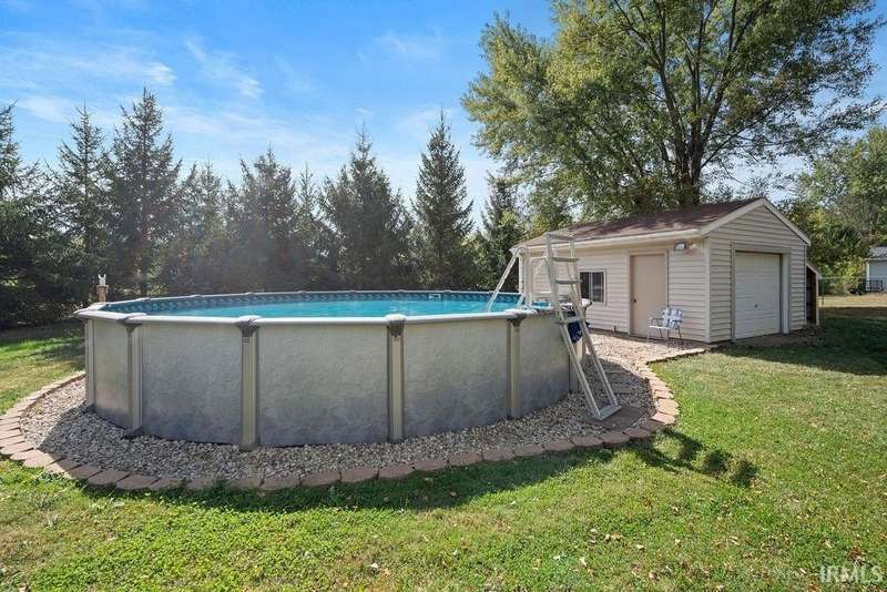 Spacious and welcoming, this impressive home offers nearly 4,000 square feet of living space plus a clean, unfinished basement of just under 800 square feet — perfect for storage or future expansion. Featuring 6 bedrooms and 4 full bathrooms, this layout provides versatility for large families, guests, or multi-generational living. The applianced kitchen opens to a comfortable family/gathering room ideal for everyday connection. The spacious living room showcases a large picture window, cozy fireplace, and flows seamlessly into the dining room for easy entertaining. The main-level master suite offers a private retreat with a walk-in closet and en-suite bathroom. A generous second bedroom, additional full bath, and welcoming foyer complete the first floor. Upstairs you'll find three oversized bedrooms, including one with dual walk-in closets and a full bath. The partially heated 3-car garage features a newer lean-to for added storage or workspace. Outside, enjoy a park-like 1.21-acre setting with an above-ground pool, additional garage/shed, partial fencing, and mature trees that enhance the peaceful surroundings. Updates include: new roof in ’23, appliances in ’22, Kinetico softener in ’21, new water heater in ’24, most windows in ’20. Whether you’re seeking space, flexibility, or outdoor enjoyment — this home delivers it all.