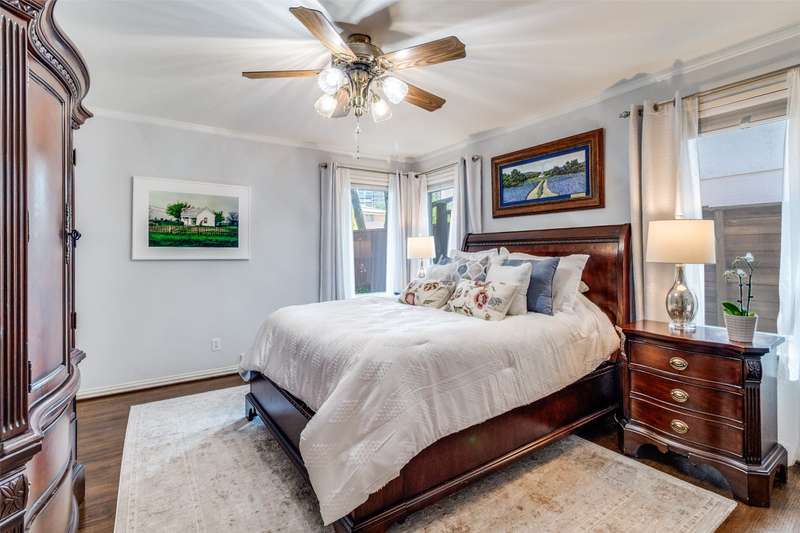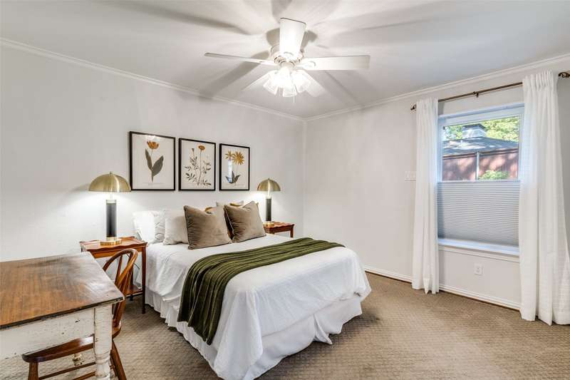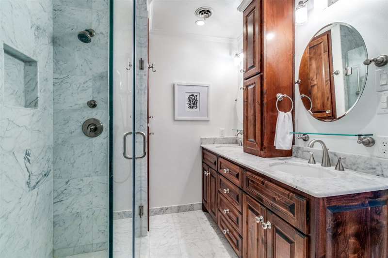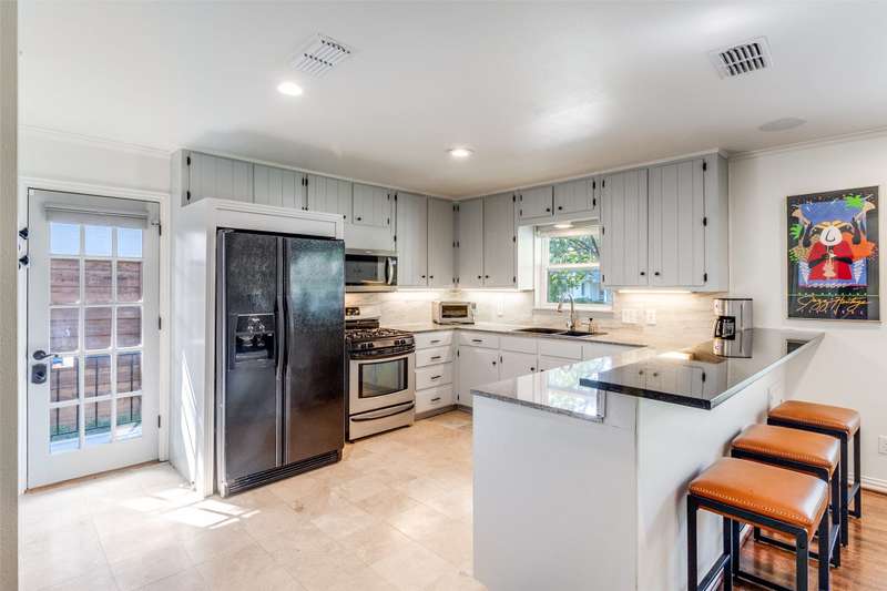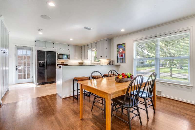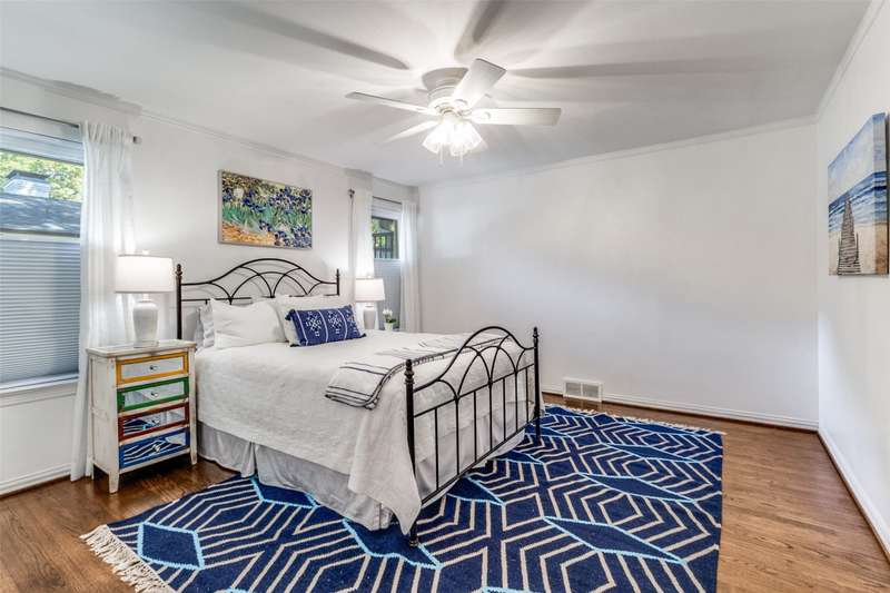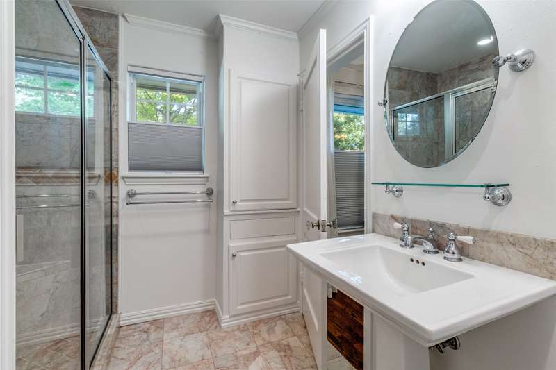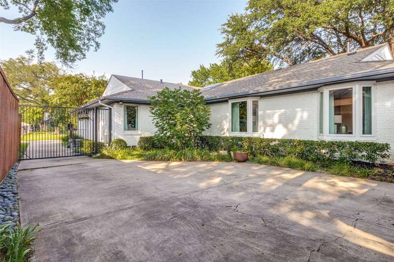 Tastefully updated mid-century ranch and ideally located in the heart of Preston Hollow between Preston Rd. and Edgemere, this one level home is situated on a wide 80 ft. frontage treed lot. With four bedrooms and four full baths, two living and two dining areas, the open floor plan and split bedroom arrangement offers versatility and comfortable living and is conducive for entertaining. Amenities include hardwood floors throughout, stainless and granite kitchen, granite and marble baths, freshly painted, designer lighting, and auto gate across driveway. The professionally landscaped and fenced backyard offers an outdoor living area with arbor and TV. Amazing opportunity to reside in a very sought -after neighborhood, Preston Hollow.