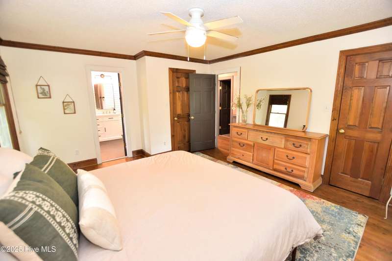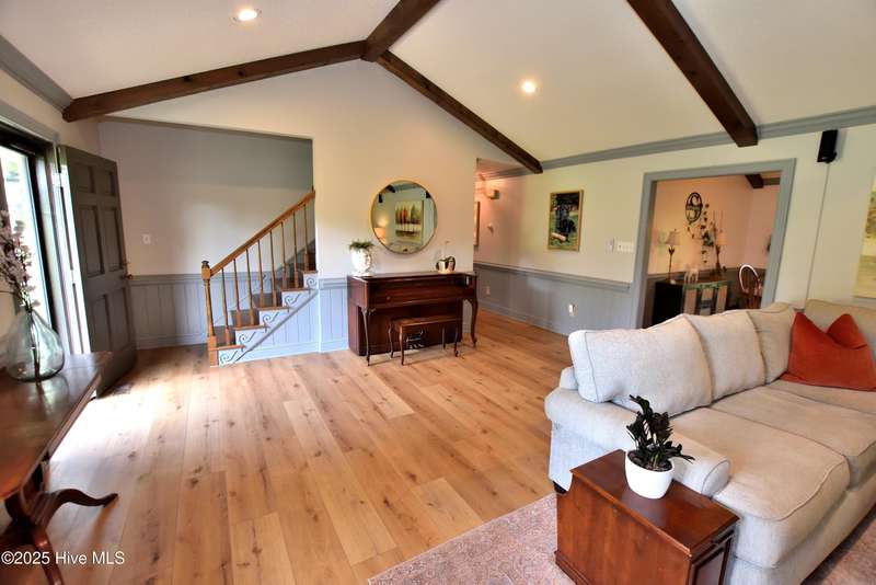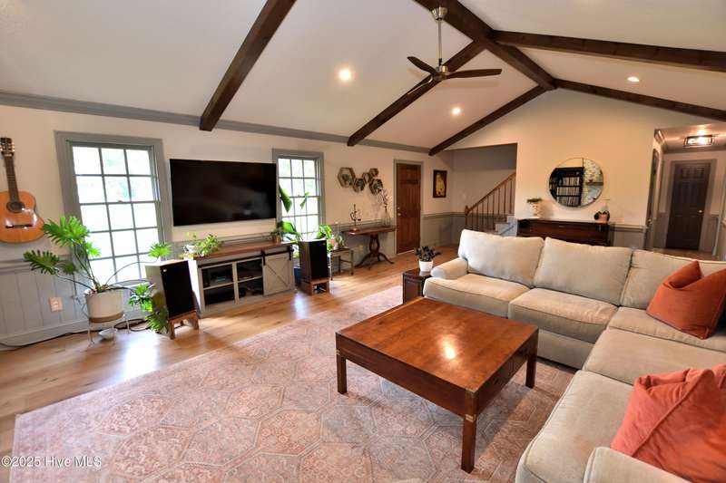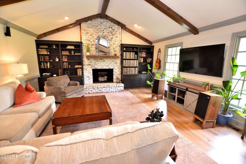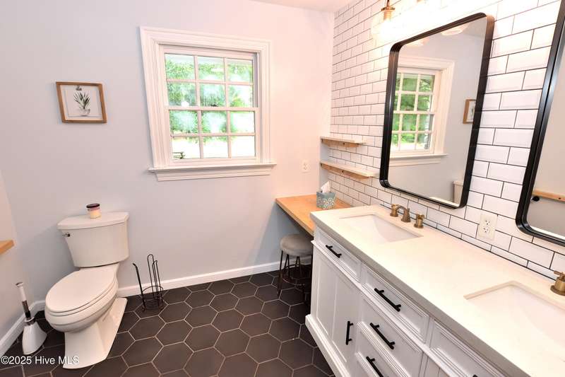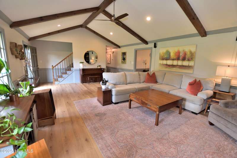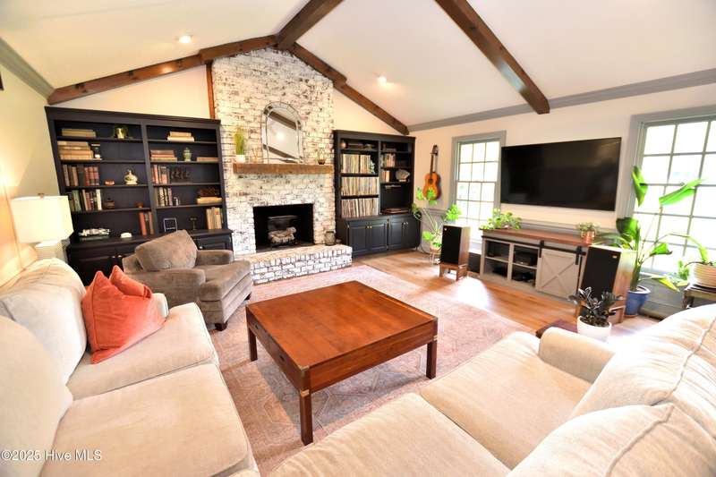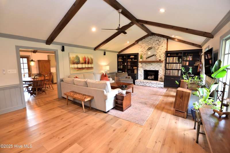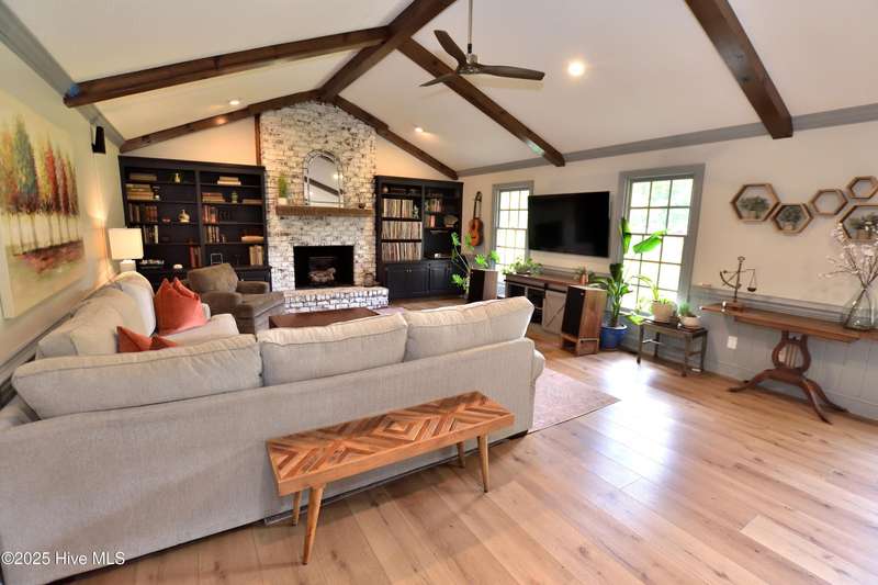 Discover the charm of living in the county. The home sits deep on 1.06 acres providing a large front and back yard. Three bedrooms and 4 full baths with oversized main rooms means this home offers space and comfort for everyone! Enjoy the personality and charm of the vaulted ceilings enhanced with rustic wood beams in the great room and the kitchen! Other features include brick fireplace with gas logs, custom built-ins, spacious eat-in kitchen, hardwood and luxury vinyl plank flooring throughout the home. The primary and hall bathrooms have been updated and provide beautifully tiled floors and walls! A walk-in shower with glass barn doors adds a stylish showpiece. Double vanities and an extra sit-down vanity make getting ready a breeze. The fourth room and fourth full bath is located over the garage and provides an additional 260 square feet of extra space allowing flexibility for guests or a home office. This location is tucked away in an established and desired area in the heart of Battleboro/Red Oak. Allows quick and easy access to major highways, businesses, shopping, medical facilities and restaurants. A 10-year warranty is provided with the newly installed HVAC for upstairs. Schedule your showing today and make this home your own.