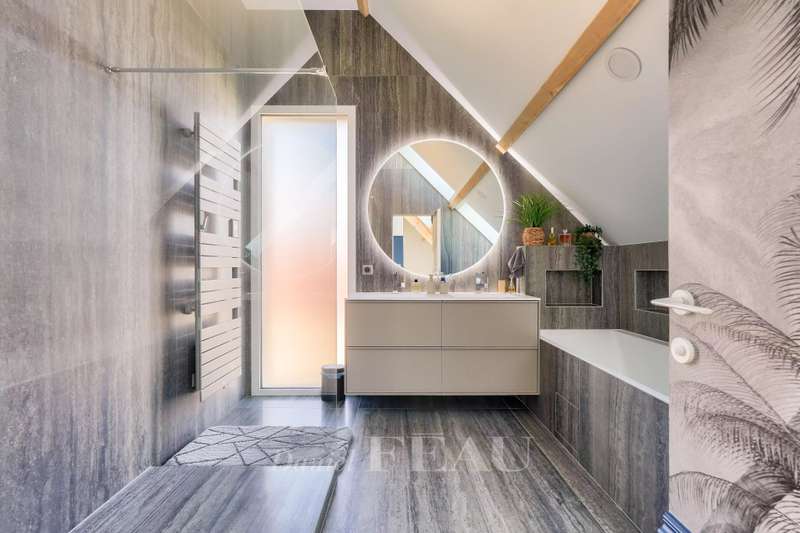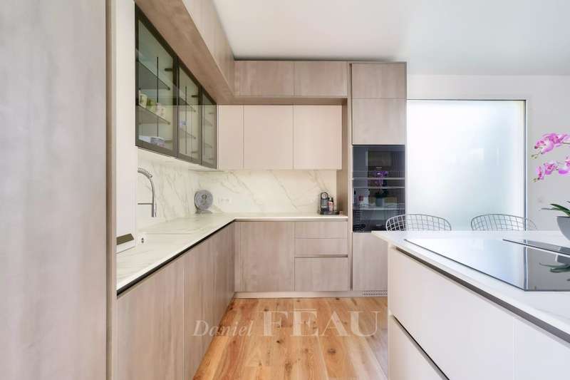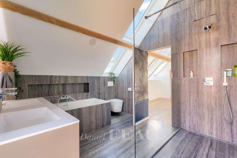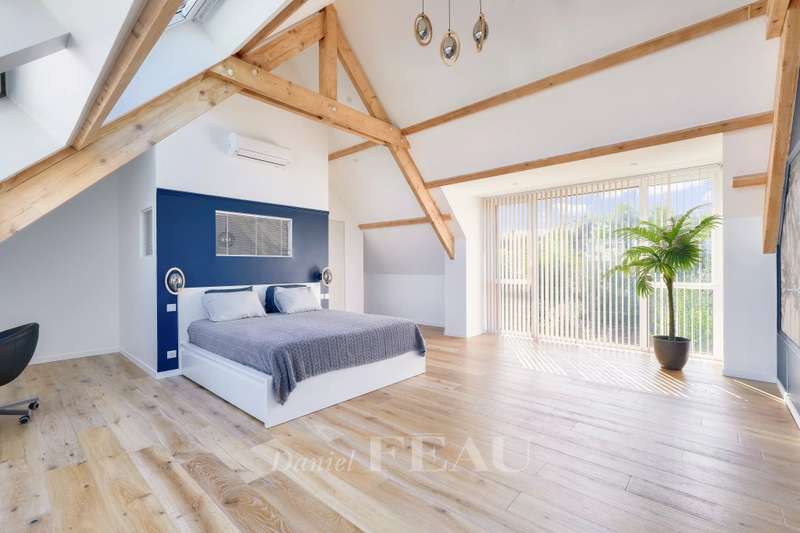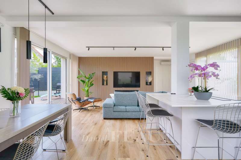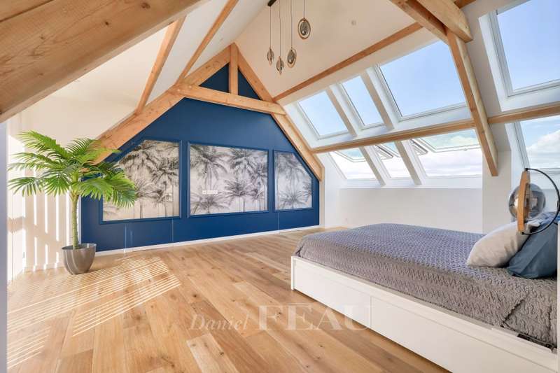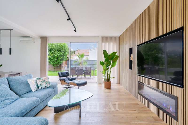 This near 190 sqm contemporary property dating from 2024 is located in a peaceful and sought-after neighbourhood. Set in a 284 sqm plot, it includes a spacious living/reception room opening onto the garden, a dining room, a fully equipped kitchen, a utility room and a guest wc. Upstairs are three spacious bedrooms, a shower room and a separate wc. The top floor comprises an over 40 sqm master suite with a bathroom and dressing room commanding an exceptional view of Paris and the Eiffel tower. Beautifully appointed, and benefiting from reversible air-conditioning and home automation. With two parking spaces. In a sought-after neighbourhood near Parc Rodin.