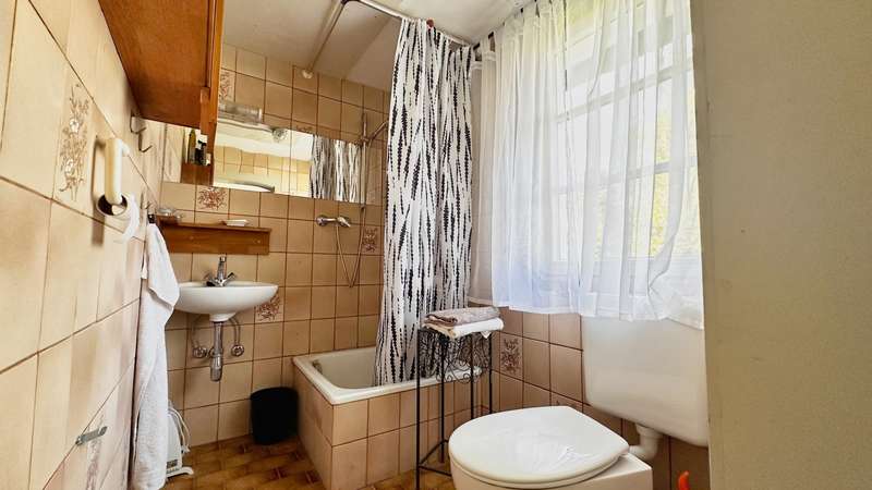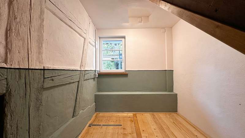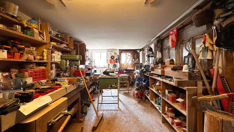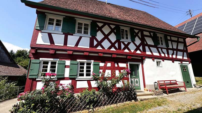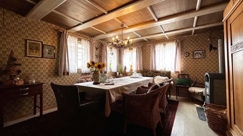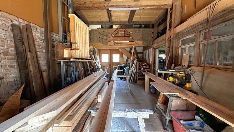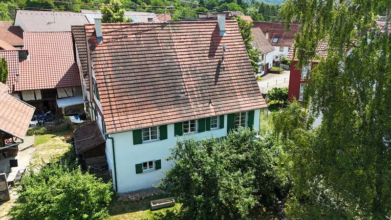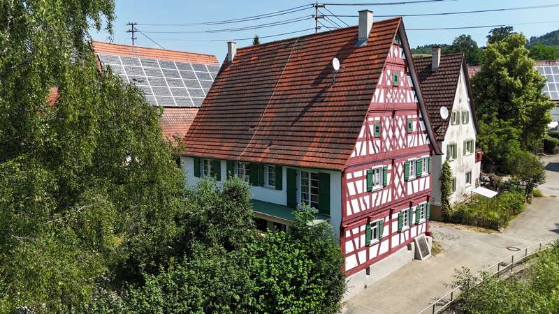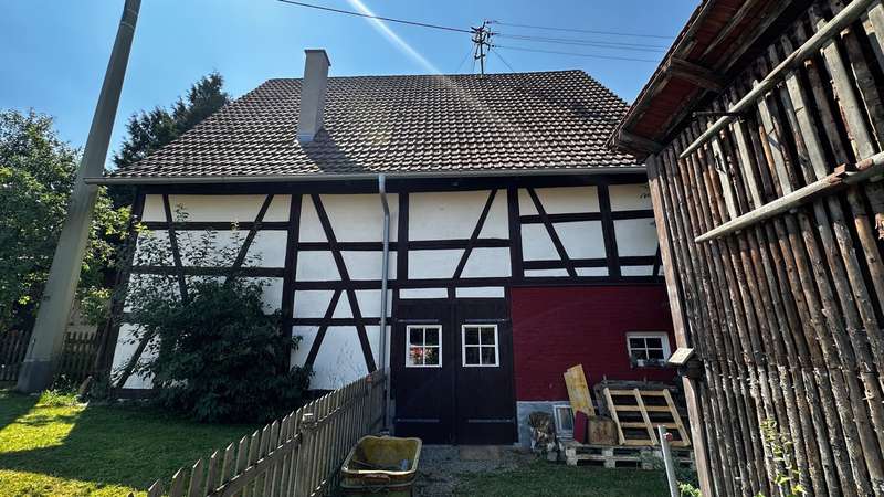 +++ Please understand that we will only answer inquiries with COMPLETE personal data (complete address, phone number and e-mail)! +++ Historic half-timbered house with museum, barn and large property Welcome to Bisingen-Zimmern - a very special property awaits you here: The well-kept, listed building on the Weidenbach was built around 1710 and is now one of the most magnificent and oldest preserved half-timbered houses in the region. The gable with its St. Andrew's crosses, diamond-shaped fields and curved struts is a feast for the eyes for connoisseurs. On a spacious plot of approx. 1,158 m², this ensemble offers not only a residential unit of approx. 80 m², but also a museum for rent on the first floor, a functional carpentry/workshop in the former barn and extensive garden areas with historic trees. The residential unit on the upper floor comprises three rooms, a kitchen with dining area and balcony access as well as a daylight bathroom. From the kitchen, you can access the newly built balcony (2025), from which a staircase leads directly into the garden - ideal for relaxing hours in the countryside. Heating is provided by traditional stove heating (logs & pellets), which contributes to the rustic atmosphere of the house. The furnishings are simple but authentic - ideal for lovers of historical architecture who want to realize their own ideas. The house has been maintained and partially modernized over the years with great attention to detail. The upper floor and attic give you scope for further individual modernization - e.g. in the living area or for energy upgrades. Construction plans for the modernization of the upper floor and the expansion of the attic are already available and can be viewed if you are interested. This means that an important step in the preparations has already been taken - the implementation can be planned and realized quickly. For example, an additional 2-3 room apartment could be created on the top floor - ideal for multi-generational use or as a spacious studio or work area. The first floor is currently rented to the municipality of Bisingen and houses a small museum, which is only open by appointment and introduces visitors to the old craftsmanship of the last Zimmerner Wagner using the workshop that has been preserved. Access is from the outside; the sanitary facilities (separate men's and women's toilets and a washbasin) were completely modernized in 2023. This use gives the property additional cultural value. The property also includes a spacious barn, which is currently used as a carpentry workshop for modernization. In addition to workshop space, it also offers storage facilities - whether for craftsmen, creative people or collectors. An additional woodshed is also available. The spacious garden with several terrace areas, mature trees and numerous retreats invites you to linger and offers space for garden projects or simply relaxing in the countryside. This property is ideal for buyers who appreciate the authentic character of a historic half-timbered house and are also looking for space for creative usage ideas. Whether as a home with a workshop, as a combination of residential and cultural use or as a collector's project with development potential - there are many possibilities here. Be inspired by the atmosphere of this extraordinary place. +++ Please understand that we will only respond to inquiries with COMPLETE personal details (full address, telephone number and e-mail)! +++