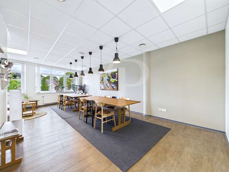 This spacious and well-maintained office space of approx. 289 m² from 2009 is located in a well-connected and attractive area of Emden. The central location in the Emder Zeitung building and the quiet surroundings make this location an ideal place for productive work and successful business development. The transparent rental model is particularly noteworthy: the office space is offered at a flat-rate rent that already includes all ancillary costs. These include heating and operating costs as well as regular cleaning of the building and windows. This flat rate provides you with a clear basis for calculation and ensures planning security without additional surprises - an all-round attractive overall package. The office unit itself offers a flexible floor space with its own reception and meeting area, which can be redesigned and adapted to your requirements after consultation. In addition, modern communal areas are available for shared use. These include the inviting reception area, a fully equipped kitchen, a comfortable common room, well-kept WC facilities and a meeting room, which can also be used by arrangement - ideal for meetings or customer appointments. Another highlight is the convenient access via a passenger elevator, which not only makes everyday life easier for your employees, but also improves accessibility for customers and visitors. The technical infrastructure meets modern requirements: A high-performance fiber optic connection is already in place and enables reliable, fast working - even for data-intensive applications. The location of the property also offers excellent infrastructure and transport links, making the location particularly attractive for both commuters and external business partners. Shopping facilities, restaurants and public transport are all in the immediate vicinity, adding to the attractiveness of the workplace. Overall, this is a very well-equipped office space that impresses with a well thought-out spatial concept, modern standards and an all-round carefree rental model. Perfect for companies that value a professional environment, predictable costs and good accessibility.