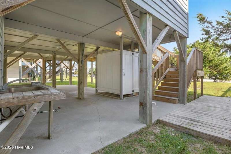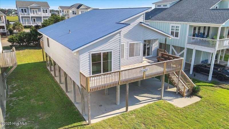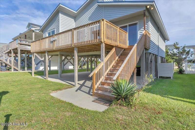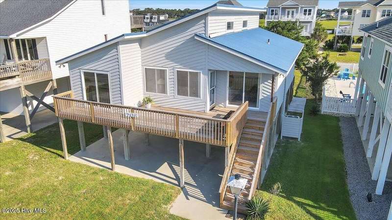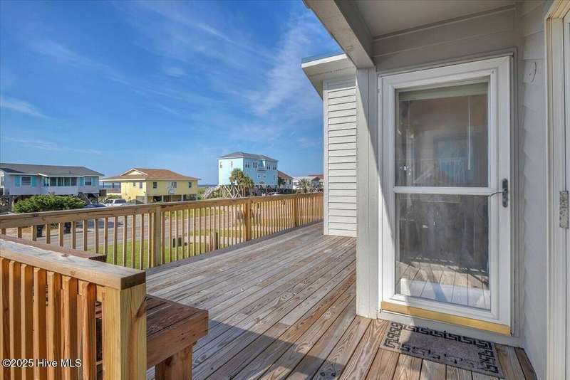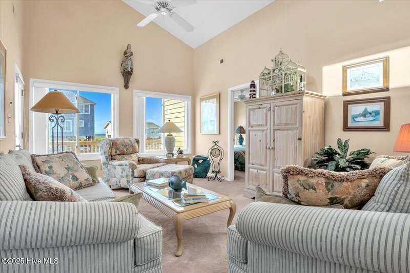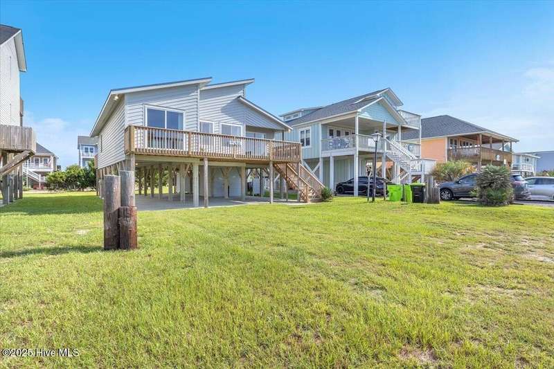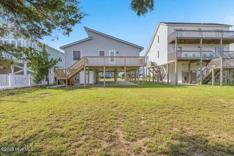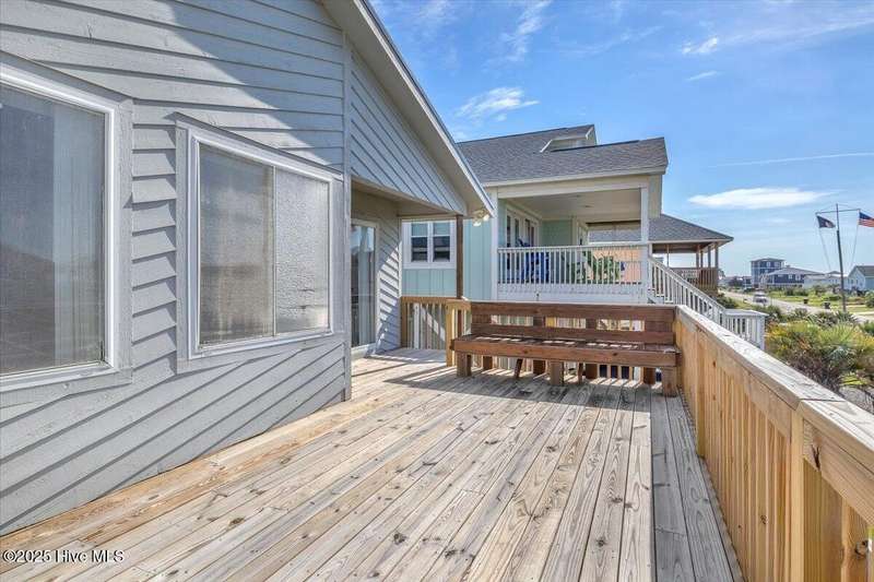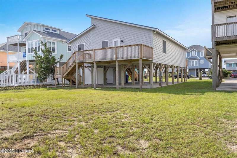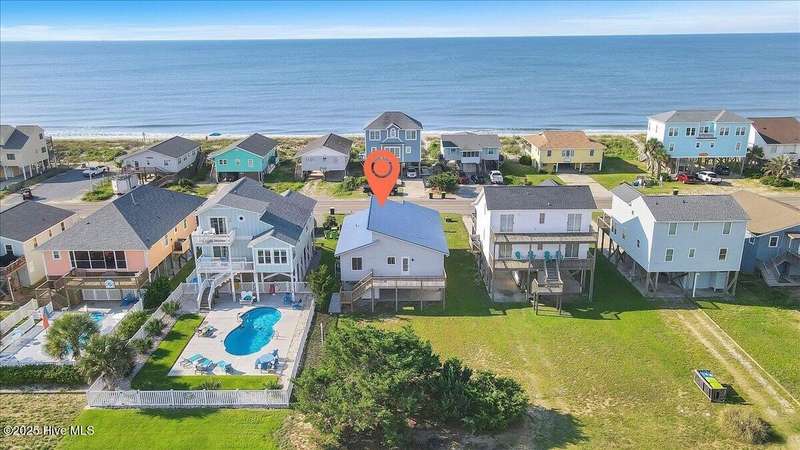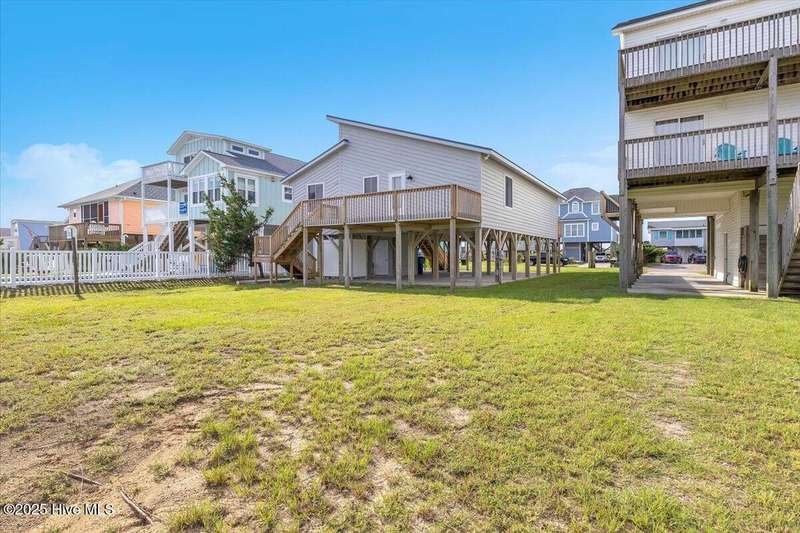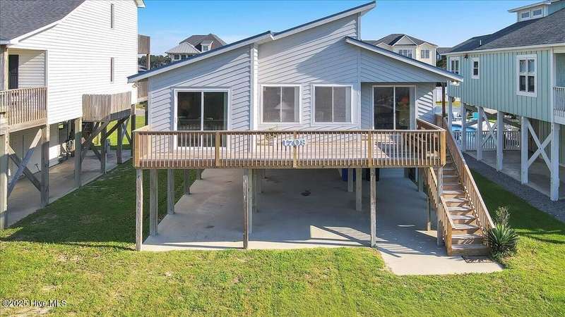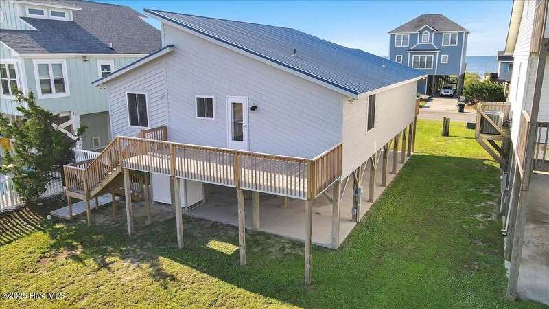 Enjoy beautiful ocean views with this delightful second row home! This amazing location offers an easy and quick access to the beach! The home owners have meticulously maintained the home with many outside updates in 2024 that include new decking on the front and back of the home, joist reinforcement, wood replacement and much more! Enjoy peace of mind owning this solidly reinforced home! An outdoor shower with hot and cold water will greet you after a day of soaking up the glorious sun and ocean waves! In addition, the home offers 4 bedrooms and 2 full baths. You will appreciate a split floor plan with each side of the home sharing access to a bathroom. Delight in the open concept kitchen and family room...making entertaining easy! It comes fully furnished! Don't wait to make the inside of the home your own...as it is a blank canvas ready to be ''painted''.