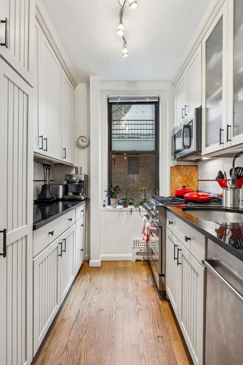Step into this charming and quiet, pre-war art deco home. ; The original inlaid wood floors bring out this home's rich tones. ; The long entry hallway creates a sense of space and is great for displaying art. The dining area is large enough to host intimate dinner parties. ; The windowed kitchen has polished black granite countertops, beautiful light custom wood cabinetry, and stainless steel appliances, including a Z-line professional stove, a microwave, and a Z-Line dishwasher. ; ;The bedroom is nice sized, with a ceiling fan and a walk-in closet. The windowed bathroom has exquisite tile work and its original large tub, which has been re-enameled. Because it's on the back side of the building this home is very quiet; it's like a sanctuary away from the hustle and bustle of life in the City. ; And even though this apartment is on the first floor of the building, you're almost a full story above ground level so it doesn't" feel like you're on the first floor. ; Another great feature of this property is the relatively low monthly maintenance.