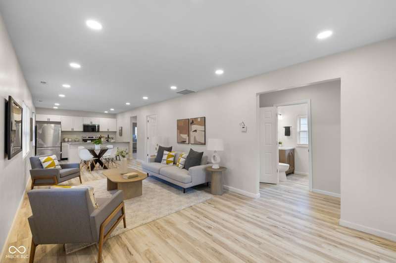 SELLER OFFERING HOMEOWNER CREDIT, text or call agent for details. Have you seen a more beautifully renovated home on Indy's Near Eastside? Less than 10 minutes from downtown this home is ready for spur of the moment trips to Brookside Park, Amelia's Bakery, Kan-Kan Cinema, and Centerpoint Brewery. Inside, discover a full-scale renovation that has tasteful style. You'll love the new stainless steel appliances, durable LVP flooring, and freshly updated countertops that make the kitchen as functional as it is inviting. With two fully remodeled bathroom, one with a walk-in shower and one with a soaking tub, every detail has been designed for everyday living. The layout flows easily, offering a cozy living area, spacious bedrooms, and a dedicated spot for a washer and dryer hookup. Perfect as a starter home, a downtown downsize, or turnkey investment, this property offers the rare combination of character, convenience, and value, all within reach of downtown energy and local Eastside favorites.