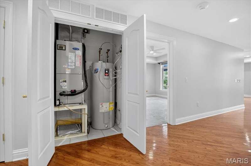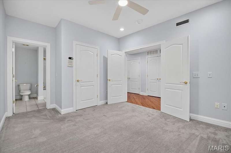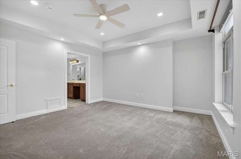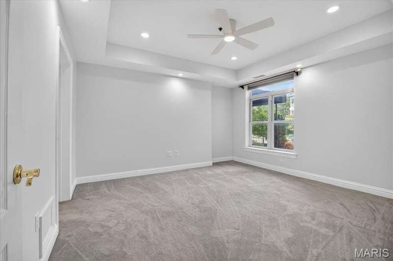Stylish, sun-filled, and perfectly locatedthis meticulously maintained 2 bed, 2 bath condo in Claymont Place offers effortless living just steps from downtown Clayton. Positioned on the west-facing end of the ground floor, Unit 103 features an open layout with hardwood floors, a newly-converted electric fireplace, and a built-in wet bar. The living room flows seamlessly to a private, covered terraceideal for morning coffee or evening wine, with space to indulge your urban gardening side. The updated kitchen offers custom cabinetry and a breakfast bar that opens to the living area, creating an ideal setting for entertaining. The primary suite includes a coffered ceiling, oversized walk-in closet, and a spacious ensuite bath with dual vanities, soaking tub, and separate shower. The second bedroom connects directly to the hall bath, giving guests both comfort and privacy. Enjoy in-unit laundry, secured lobby access, elevator service, garage parking, and a dedicated storage unitall in a freshly decorated, elevator-served building. Truly turnkey living in one of U City's most desirable locations.