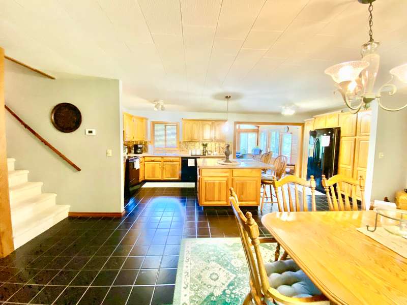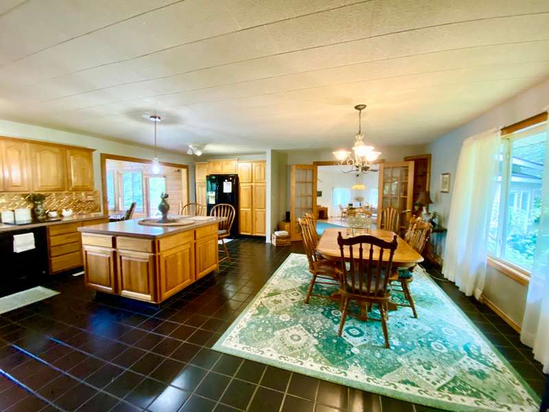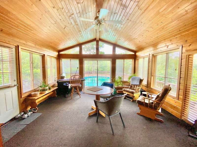 Tucked in the woods is this spacious multi-level home ~ ready for new memories to be made--impressive 3-bed, 1.5 bath sitting on 11.5 acres. The kitchen and dining area have been updated with newer flooring, beautiful wood cupboards, countertops, and an island. The main living area is open with a downstairs living room with a half bath, a bright sunroom right off the pool, a kitchen and dining room, and step down to a huge family room. Enjoy the cozy fireplaces on those cool evenings. Bedrooms have a split floor plan with all three bedrooms and a full bath upstairs. Spacious basement with extra storage. The home has a newer furnace. Several exterior decks, plus an amazing pool, which the seller says are great spots for morning coffee to catch nature's daily shows ~ wildlife abounds. The serene pond attracts the amazing wildlife. Plentiful fruit trees, apple, pear, grapes, and berries. 30x40 pole barn. High-speed Charter is installed for Wi-Fi. This secluded property is a must-see!!! Close by is Sage Lake, which won the best inland lake in Northern Lower Michigan in 2021. With good reason...the clear water, great fishing, and all sports, 785 acres of beauty. Whether you're seeking a weekend getaway or a year-round residence, this property offers the perfect blend of comfort and natural beauty. So much to offer here!