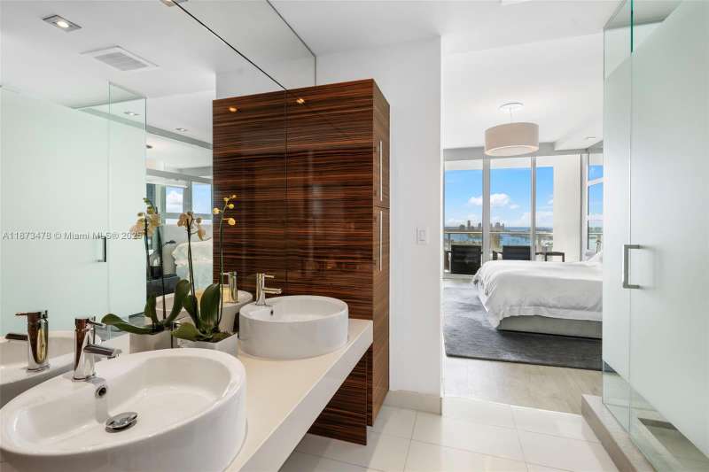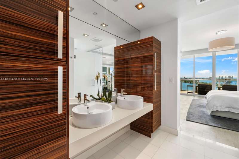 Enjoy direct bayfront & dramatic city views from this sophisticated, flow-thru 2-bdrm/2.5-bath + den home that blends elegance, function & artful design. Spanning nearly 1,700 SF, the beautifully appointed interiors feature Porcelanosa wood floors, custom European doors, Italian cabinetry & Wolf/Sub-Zero appliances. The spacious den offers versatility; large walk-in closets & full laundry rm provide ample storage; integrated Savant/Sonos smart technology ensures modern convenience. Paramount Bay by Arquitectonica w/ interiors by Lenny Kravitz, is celebrated for resort-style amenities, including sunrise & sunset pools, spa & fitness center, club lounge, theater & 24/7 concierge. Edgewater’s premier bayfront address offers effortless access to Midtown, Wynwood, Design District & Miami Beach.