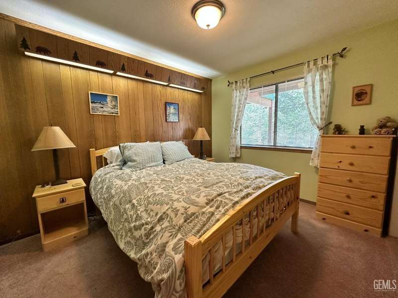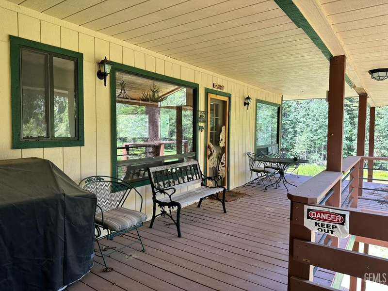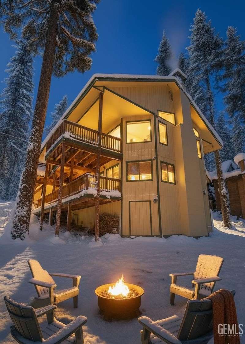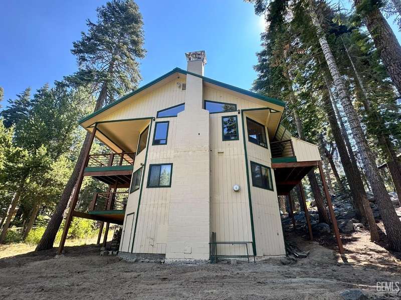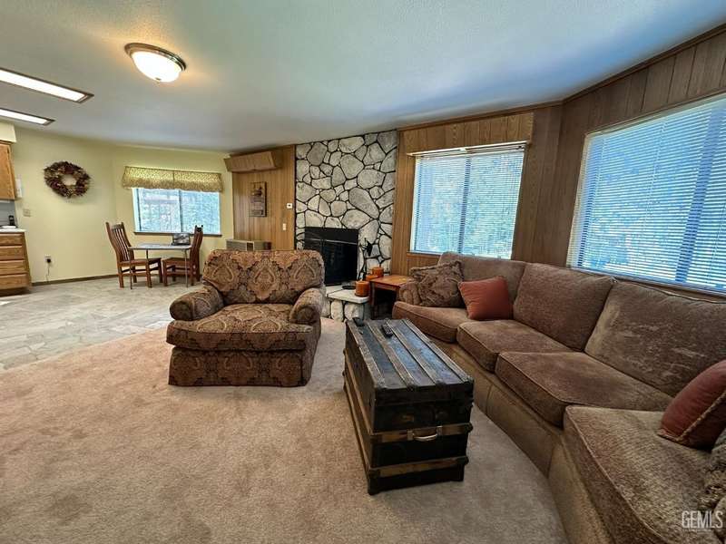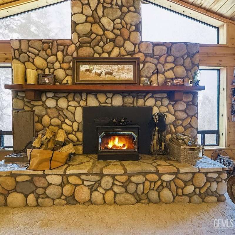Tucked among the towering pines of Ponderosa, this 4-bedroom, 3-bath mountain retreat blends rustic charm with modern comfort. At 7,200 ft, enjoy cool breezes, the rustle of trees, and views of a meadow with a seasonal stream. Inside, knotty wood siding, rock flooring, and a rock fireplace create a warm, lodge-like feel accented by antler and Tiffany-style chandeliers. Both floors offer their own kitchen and living room, perfect for multi-generational living or hosting guests. The main-level chef's kitchen features a pantry, double ovens, and stainless steel appliances. An office and bonus room provide flexible space for work, hobbies, or guests. Step onto the two expansive decks to enjoy starlit skies and forest quiet. With a metal roof, indoor laundry, attached 2-car garage, and year-round access, this home offers comfort in every season, a true mountain sanctuary.