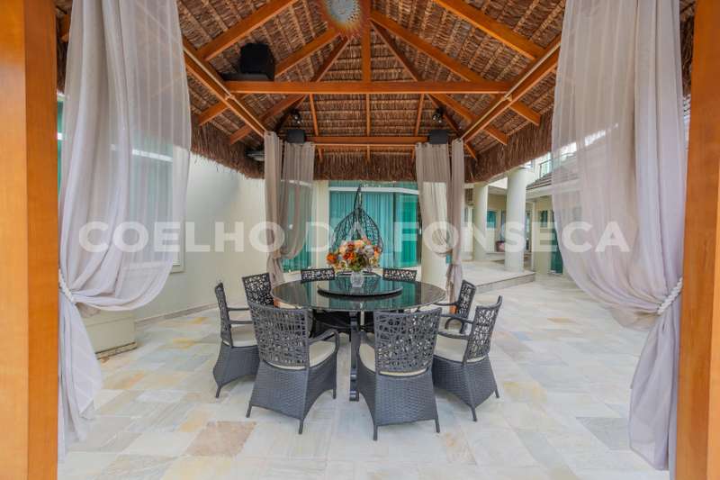 Casa no condomínio TAMBORÉ III, com 990m² área construída, 5 dormitório(s), 5 suíte(s), 3 vaga(s), 7 banheiro(s), piscina, esquina, escritório, sauna, ar condicionado, dep. de empregados, varanda, aquecedor solar.
