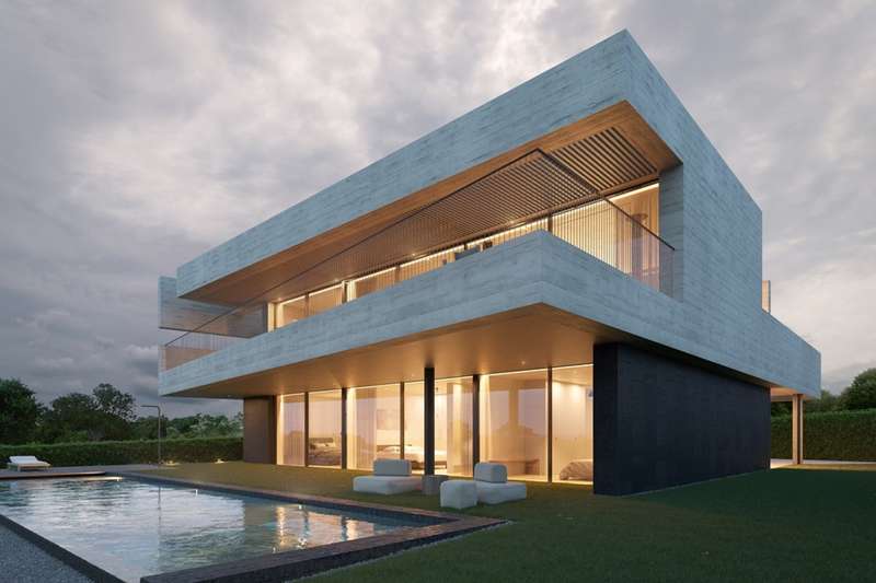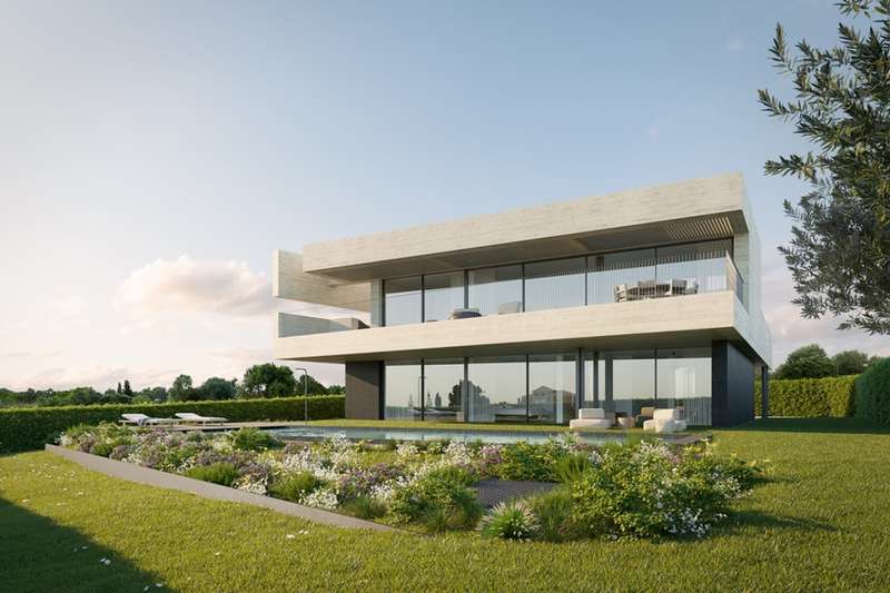This dream project can offer an unparalleled experience of luxury, comfort and privacy. It is a unique concept of modern construction of nine villas with four floors: basement, ground floor, first floor and a spectacular roof terrace with sea views. Each villa is individually designed, featuring exquisite modern architecture. It is an exclusive set of new villas that establishes a new concept of luxury living, with meticulous attention to detail, magnificent use of materials and functional areas, which translates into timeless elegance, comfort and natural light. These turn-key modern villas features high ceilings, en suite bedrooms, garden, pool, and a two-car port. The villas are perfectly positioned to maximize the areas and the stunning surroundings, with its unique and stunning sea view. They are located within a quiet and prestigious neighborhood only a few minutes from Praia da Luz. Explore a lifestyle that integrates breathtaking sea views, modern elegance, and convenience, in a natural environment, where you can enjoy privacy, calmness and luxury, while still being within proximity to the extraordinary beaches, city center, renowned golf courses, and all the services, and about one hour from Faro International Airport. CHARACTERISTICS: Plot Area: 1 152 m2 | 12 400 sq ft Area: 299 m2 | 3 222 sq ft Bedrooms: 4 Bathrooms: 5 Garage: 3 Energy efficiency: A+ FEATURES: 4 suites Equipped kitchen Terrace Garden Swimming pool Covered parking Rooftop