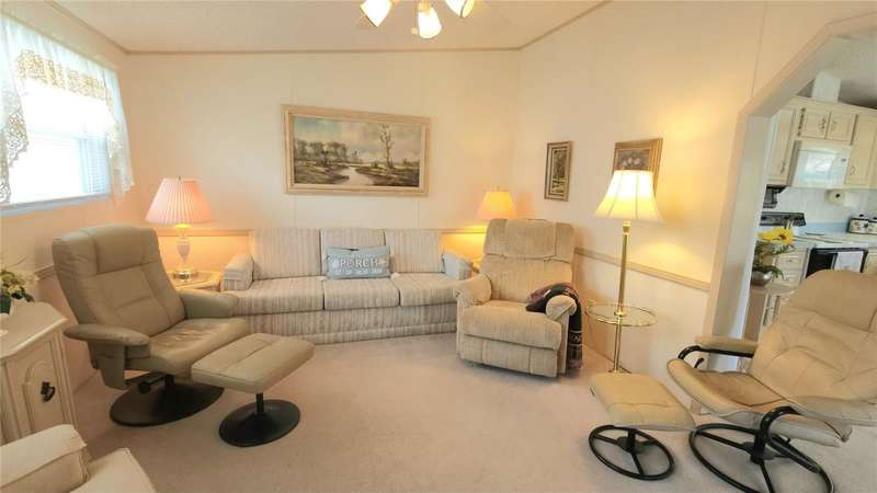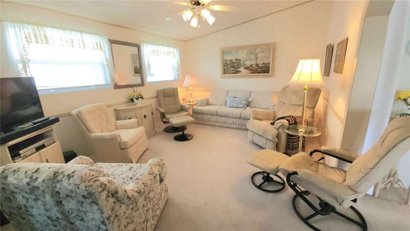 1996 MOBILE HOME IN ACTIVE 55+ COMMUNITY. FURNISHED one bedroom, 1 1/2 bath home which features a bright, enclosed front porch, spacious dining room, & laundry room with large storage closet. The primary bathroom has a tub/shower and huge linen closet. All appliances included. Central A/C (2014). Why spend another winter in the cold? This Florida home is just waiting for you! NO LOT RENT! The community of Sugar Creek Country Club features two swimming pools, heated spa, tennis & pickleball, shuffleboard, fitness room, club house, workshop, and an active social calendar during the winter months. LOW HOA FEES of just $525 quarterly which includes water, trash, sewer, basic cable, internet, and grass mowing. Enjoy this community's proximity to the Braden River and River Links Golf Course. Sorry this is not a dog lot.