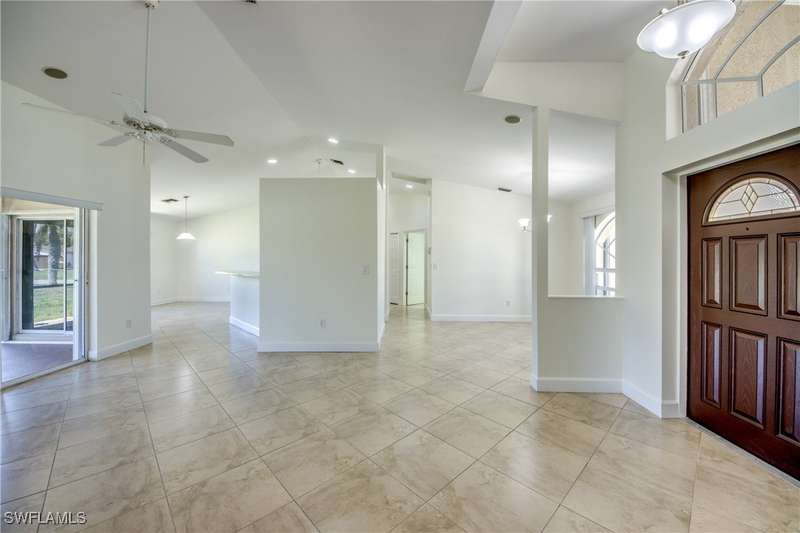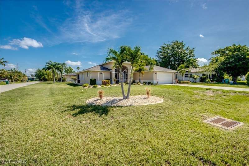 *MOVE IN READY* ASSESSMENTS PAID* FLOOD ZONE X* Step inside this Immaculate 3 Bed 2 Bath 2 Car Garage home with split bedrooms. Whether you are a first home buyer or looking for a Successful Investment Property, THIS IS IT!! This home offers Lush Landscaping, a Large Beautiful Screened in Entry Way with French Doors. The vaulted ceilings with recessed lighting make the home feel large and inviting. Situated on an Oversized Corner Lot with plenty of room for a pool! The backyard is completely Fenced in with a Double gate ready to store all your toys!! The kitchen is perfect for cooking and well equipped with all appliances included. Friends and family will enjoy sitting around the counter while you cook a fantastic meal! This home offers an Eat in breakfast nook and Formal Dining Room! You will love the large screened in Lanai to enjoy those stunning Florida sunsets! Accordion Shutters are included for added protection! This home is tucked away in a quiet neighborhood yet close to everything you need whether it be Grocery, shopping, Amazing Restaurants, Hospitals and Schools!! It is minutes in either direction to Veterans Parkway and Pine Island Rd. UPGRADES GALORE: NEW ROOF 2018 * NEW WATER HEATER 2020 * NEW WASHING MACHINE 2022 * NEW HVAC 2023 * NEW REFRIGERATOR 2025 * FRESHLY PAINTED INTERIOR * NEW SPRINKLER HEAD REPLACEMENTS & TIMER BOX 2025 * MASTER BATH/SHOWER REMODEL * NEW KITCHEN/BATH SINKS & FAUCETS 2025 * ADT ALARM SYSTEM! Do not miss your opportunity to OWN this HOME TODAY!!