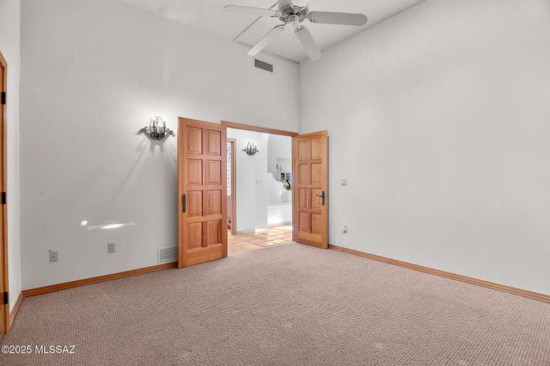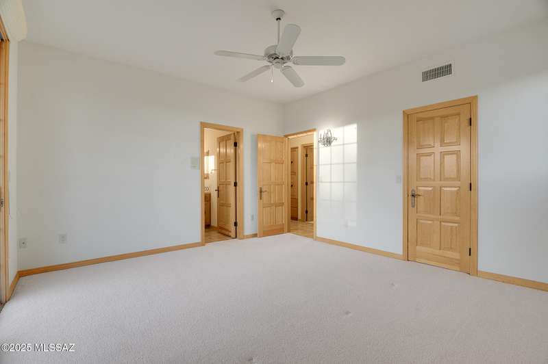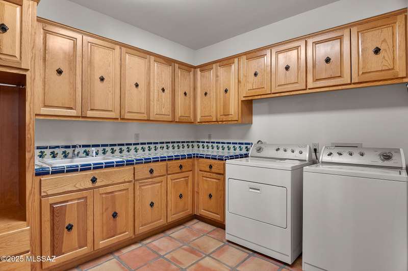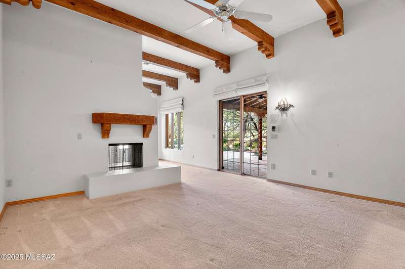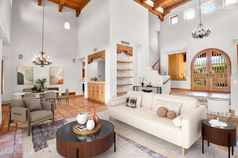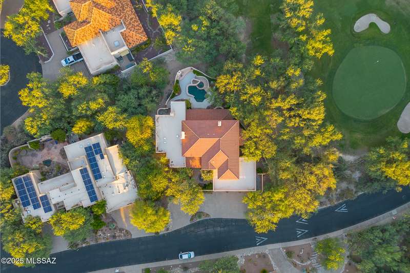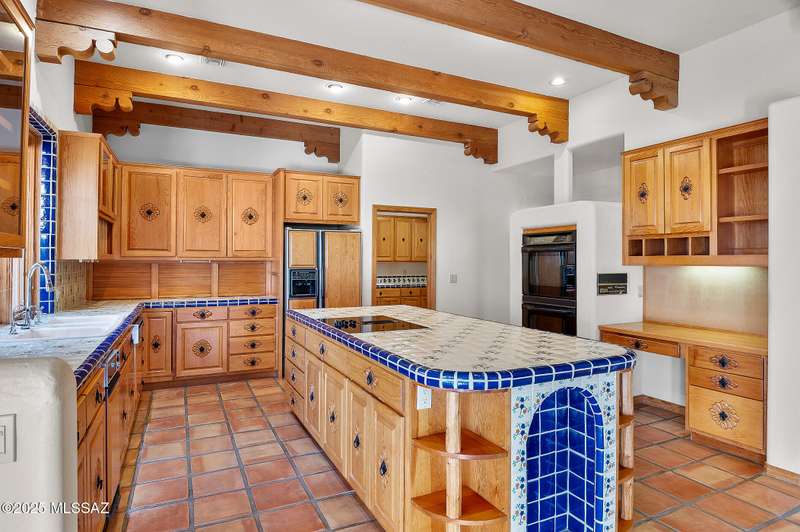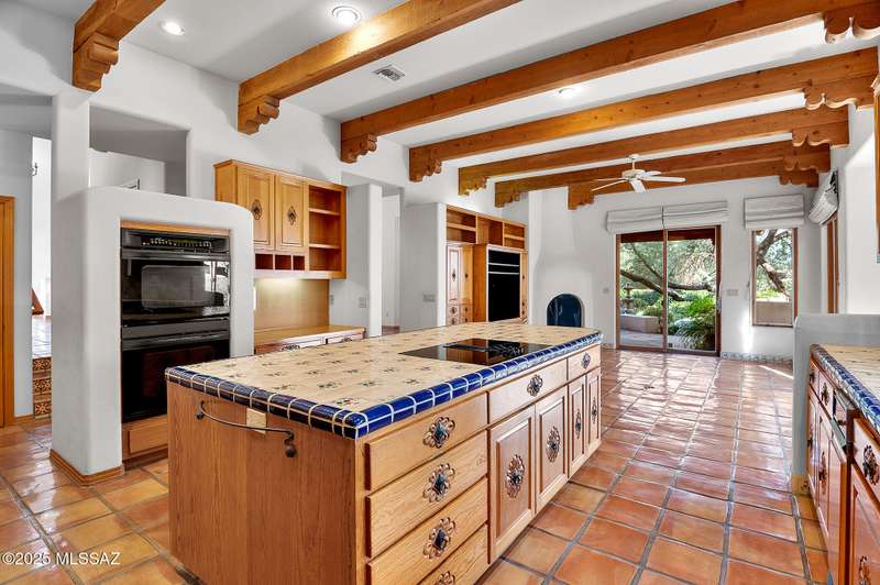 Situated in prestigious Ventana Canyon Estates, this exceptional Mike Wachs Southwestern Style Home overlooks hole #7 of the Canyon Golf Course. This fantastic masonry/stucco home features 4090 sf, 3BR/4BA/Den, private, corner lot, high, beamed ceilings and beautiful back yard with pool, spa, fountain, fireplace and golf course views.Entering through the courtyard gates and entry door to the open foyer, exposes hand crafted beams, Saltillo tile floor and custom cabinetry. The large living room is immediately evident, complete with the large, custom fireplace and view of the phenomenal back yard. A large dining area and wet bar complete this area and make entertaining a breeze.The superb chef's kitchen features a large island with electric cooktop, dbl ovens and ample cabinetry.
