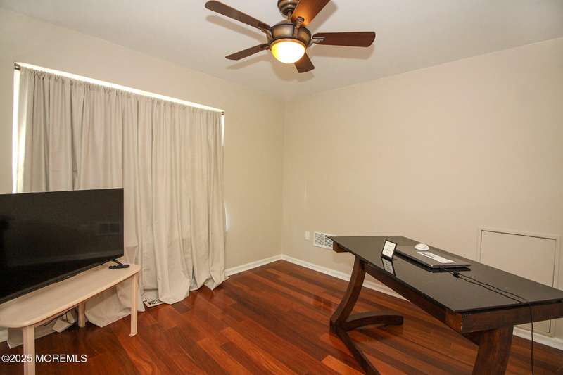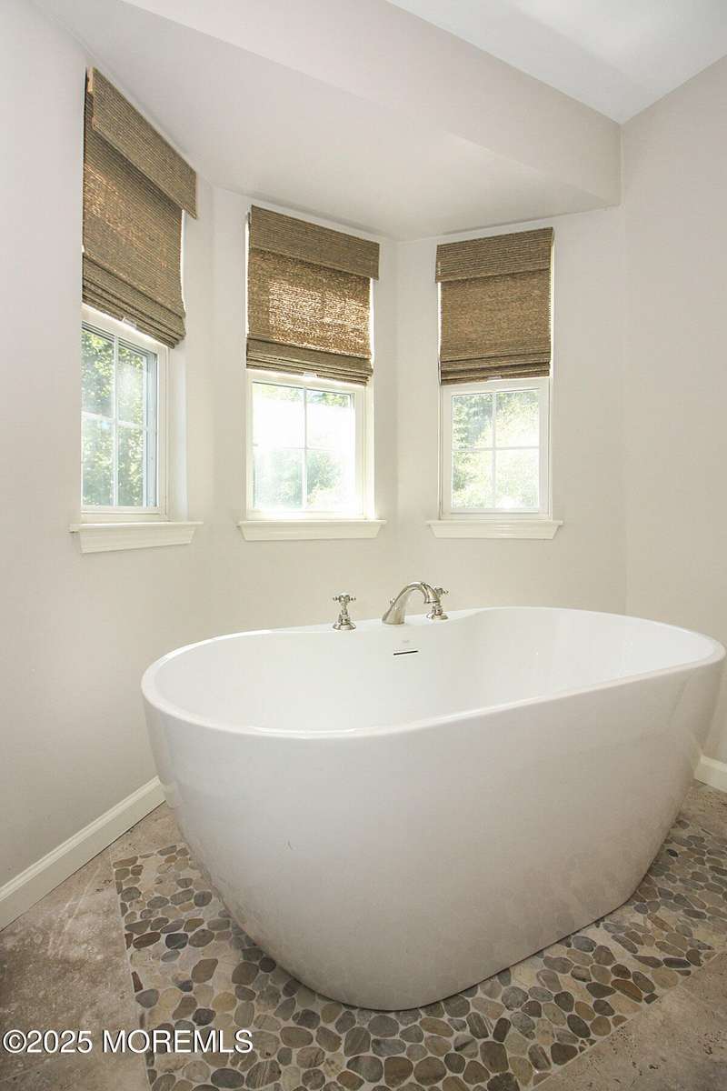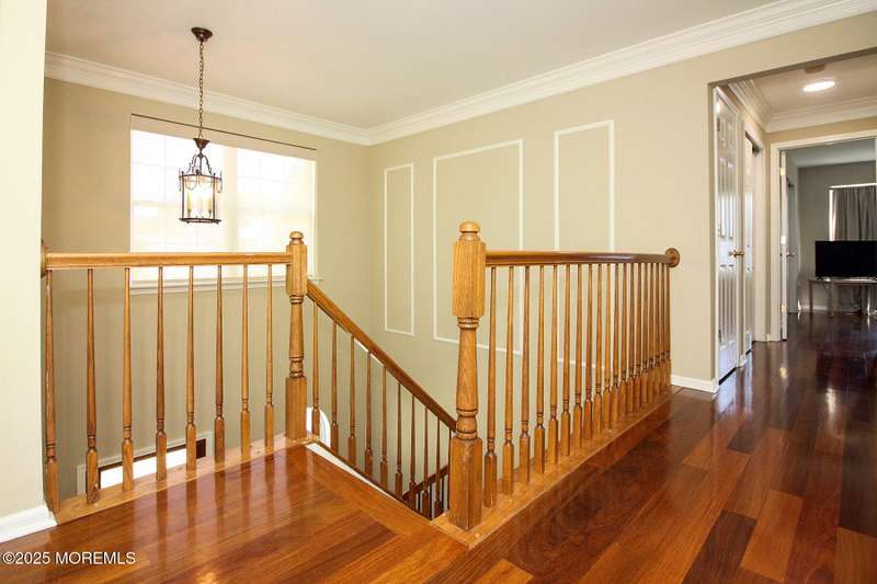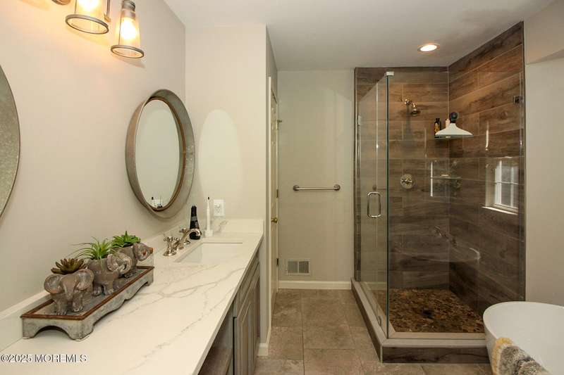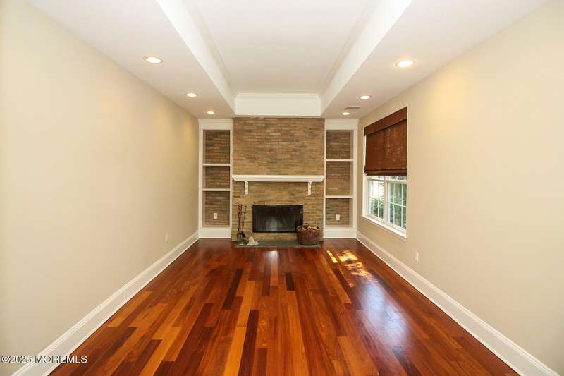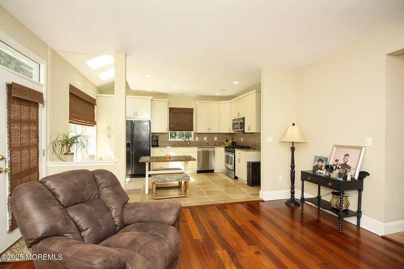 Welcome to this tastefully renovated home featuring 4 spacious bdrms, 2.5 baths, and full finished basement on 1/2 acre. Brazilian wood flooring flows throughout the main living areas, adding warmth and elegance. The primary bathroom is a true retreat, complete with custom cabinetry and a stunning freestanding tub. Custom moldings adorn the main foyer, offering a sophisticated first impression. Soaring 9-foot ceilings on the main level enhance the natural light and open feel of the home. Eat-in kitchen is a chef's dream, boasting travertine tile flooring, custom cabinetry, granite countertops, vaulted ceiling, skylights, and recessed lighting. It opens into the inviting family rm, stone fireplace-gas start with natural wood capabilities. Many more amenities! Some rooms have been virtually furnished