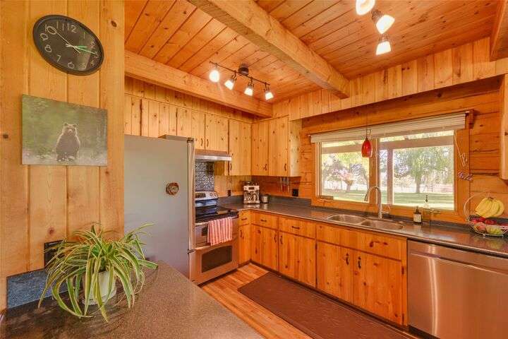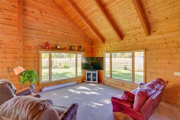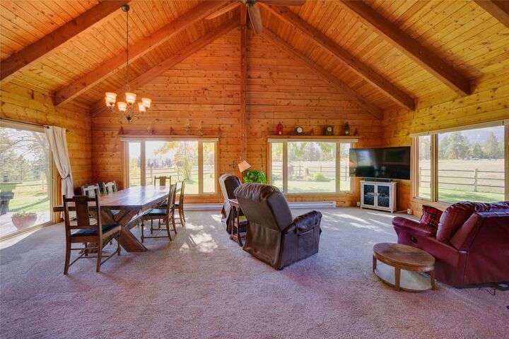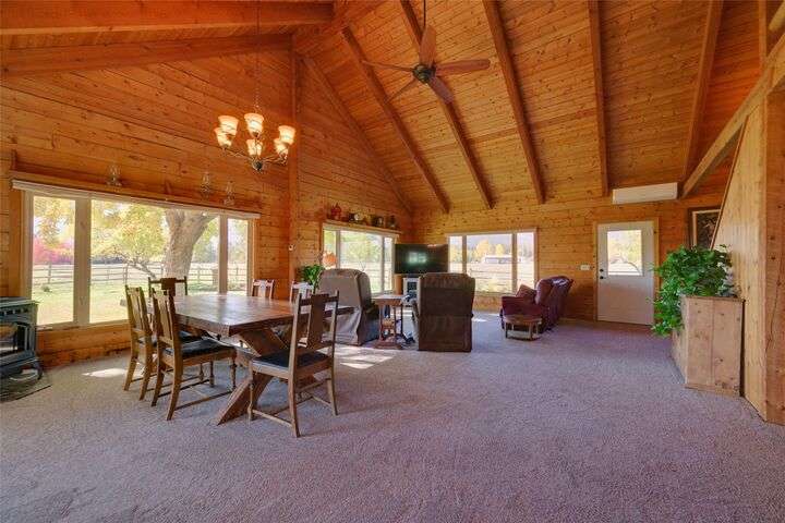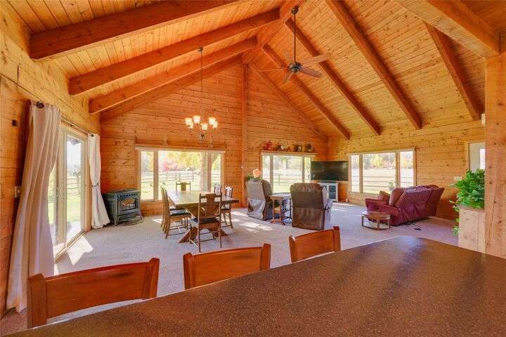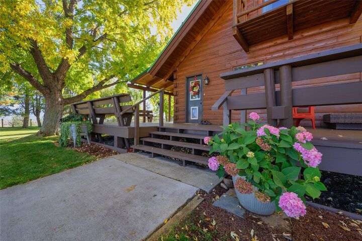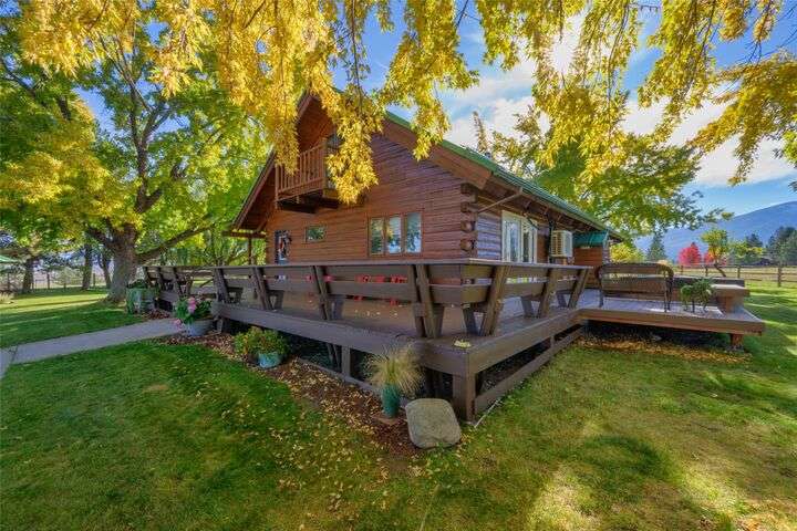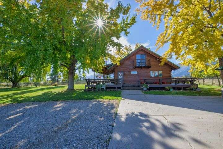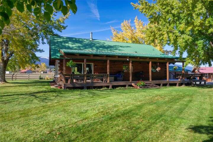Welcome to 461 Hudson Lane in Victor Montana! This beautifully maintained, 3 bedroom, 3 bathroom log home nestled in the beautiful Bitterroot Valley, offers a bunkhouse and a heated two car garage/shop with bathroom all on 10 acres of horse property! This Montana horse property is minutes away from the Fred Burr trailhead, making it great for hiking or horse back riding right from the property! Built in 1980, this property has all new flooring, three remodeled bathrooms, windows, and exterior staining. The home offers single level living with a primary bedroom/bathroom, an additional bathroom on the main floor, as well as a spacious laundry room. The kitchen flows into the dining/living area which offers vaulted ceilings and windows that take full advantage of the amazing 360 degree views! Upstairs is a loft with a landing area that can be used a an office and the second bedroom.... Outside the home is a wraparound, partially covered deck, next to a manicured lawn with underground sprinklers. This home has a fenced garden with fruit trees and multiple varieties of berries. The shed offers space to store all your property needs. The two additional structures on the property consist of a heated two car garage/shop with bathroom and a bunkhouse which is perfect for guests. The garage/shop has RV hookups. The fenced horse property also offers a loafing shed with power and water for all your livestock needs. There are to many amenities to list. This is a must see property!