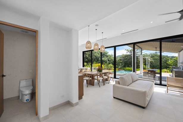 Casa Aguasalada: This brand-new Casa Aguasalada is a magnificent opportunity to own a piece of paradise! This luxurious residence is located in front of hole #16 of the renowned Robert Trent Jones II Golf Course at Reserva Conchal in the closest community to the beach. Aguasalada is a stunning 4-bedroom, 5 full bathroom and 2 half bath home that boasts 4769 sq ft of living space on 1321.56m2 of land and offers a modern tropical design with teak accents throughout, providing ample room for entertaining guests and family. The bedrooms are separated in their own wing, ensuring privacy, and the common areas are open and spacious. Each bedroom has its own ensuite bathroom so every guest is happy!The common area spaces boast breathtaking views of the lush tropical surroundings, offering a unique opportunity to observe the local wildlife, such as monkeys, parrots, iguanas, and deer, in their natural habitat. Floor-to-ceiling glass windows provide a front-row seat to the stunning scenery, creating a seamless indoor-outdoor experience for guests. Enjoy the peace and tranquility of the tropical paradise while lounging in the comfort of the common spaces.The home's outdoor area is designed for ultimate relaxation, with a stunning infinity pool that overlooks the golf course, a large covered kitchen, BBQ and dining area for outdoor dining, and a modern kitchen with granite countertops and wood cabinetry. It's only a 5-minute walk from the Beach Club and the famous white sands of Playa Conchal beach, making it the perfect place for beach lovers.Reserva Conchal features 2300 acres to explore with A+ amenities! There is a 60,000 sq ft gorgeous Beach Club, featuring two sleek pools, state-of-the-art air conditioned fitness center, towel service, complimentary use of kayaks, stand up paddle boards, bikes, a playground and soccer field for the children, miles of hiking and biking trails, the beachside Catalinas Restaurant, an exclusive rooftop dining space, a brand-new poolside pizzeria, and daily social activities. The Westin Resort and Spa and the brand new W Hotel are also located in Reserva Conchal. Owners receive 25% discounts at all their restaurants and the Spa.It's worth mentioning that, although it's not included at this price, it's possible and permitted to add an apartment over the garage, providing even more space and versatility. Don't miss out on this incredible opportunity to own a piece of tropical paradise!If you are looking for a place to call home or for a vacation rental property that offers modern luxury with plenty of space with awesome views, this unit is the one for you! Located 45 mins from Liberia Airport, and less than 5 mins from 2 International Schools. Please contact us to schedule a showing.HOA: $338/month, includes water.