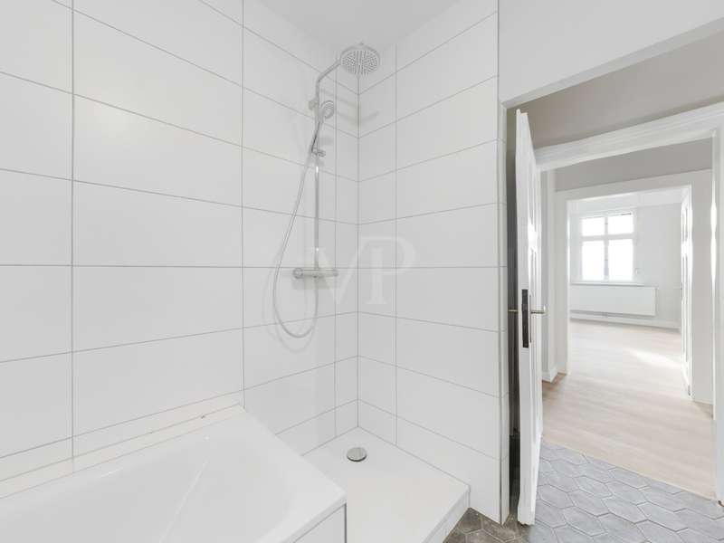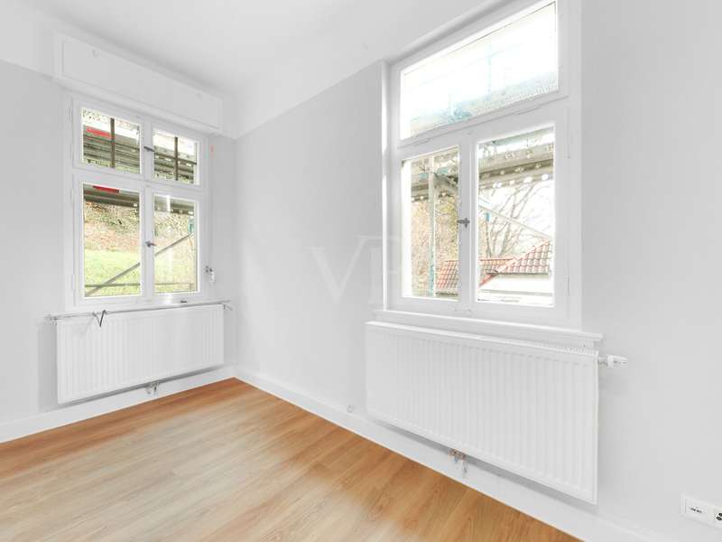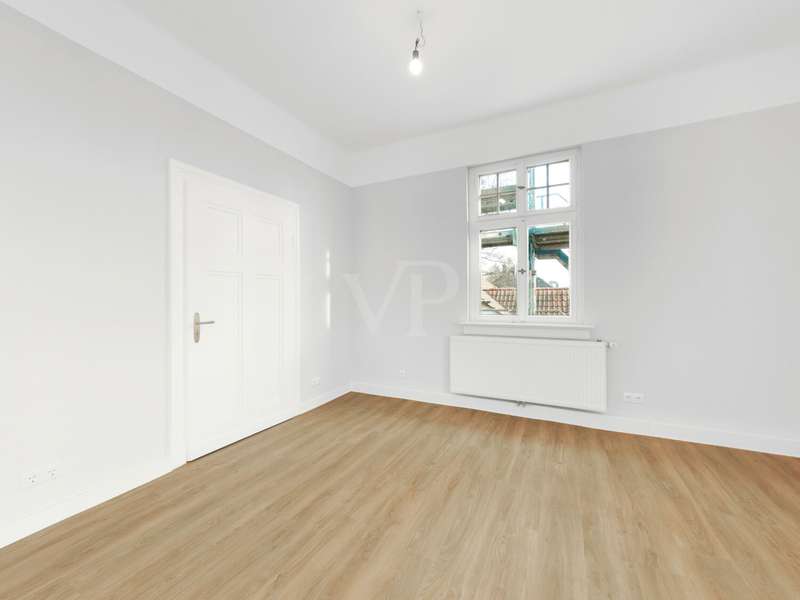 Exclusive 4-room apartment in a listed manor house - first occupancy after extensive refurbishment. This exceptional apartment offers spacious living with style and flair on approx. 126 m² of living space in a particularly sought-after, central location. The building was extensively renovated in 2025 - both structurally and technically. The combination of historic building fabric and modern, high-quality furnishings gives this home its unique character. The apartment has a total of four rooms, which are ideal for families, couples in need of space or discerning individuals. The centerpiece is the spacious living and dining area, which boasts high ceilings and an impressive spatial effect. From the living area, you can access an inviting balcony that offers an attractive view of the surrounding area - an ideal place for relaxing hours outdoors. The spacious kitchen also has room for a large table - a kitchen to feel good and live in. The bathroom has a shower and a bathtub. Great emphasis was placed on energy sustainability during the renovation. The property is equipped with a modern air/water heat pump, which ensures efficient heating and a pleasant indoor climate. The technical infrastructure is also forward-looking: all the pipes, electrics and heating systems have been completely renewed. The entire property is therefore in a condition that meets the requirements of contemporary living and special monument protection. The apartment includes the use of a garden, which offers generous space for outdoor activities. Families and children alike will find recreation and development opportunities here. This collector's item impresses with its central and sought-after location. Shopping facilities, schools, public transport and leisure facilities are all within walking distance, providing a first-class infrastructure. Nevertheless, you will find a pleasant living environment with plenty of green surroundings. The property is available immediately after refurbishment. It is an exceptional offer in terms of location, size and condition - ideal for customers looking for something special. Let yourself be inspired on site and convince yourself of the advantages of this unique residential offer. Arrange a viewing today - we look forward to hearing from you!