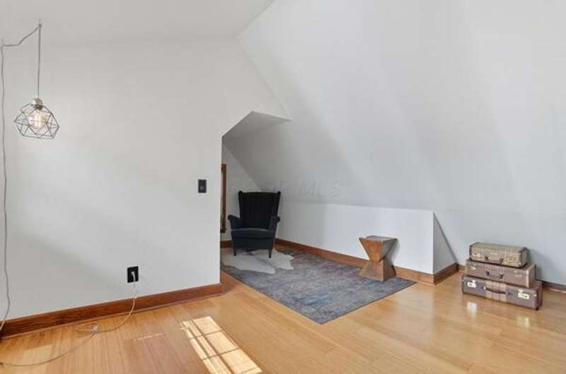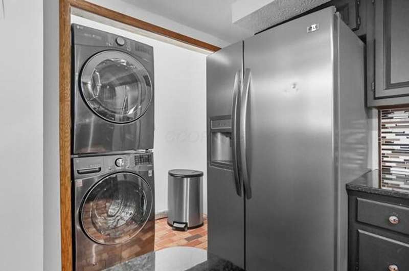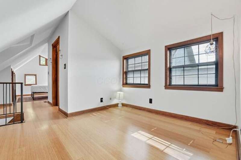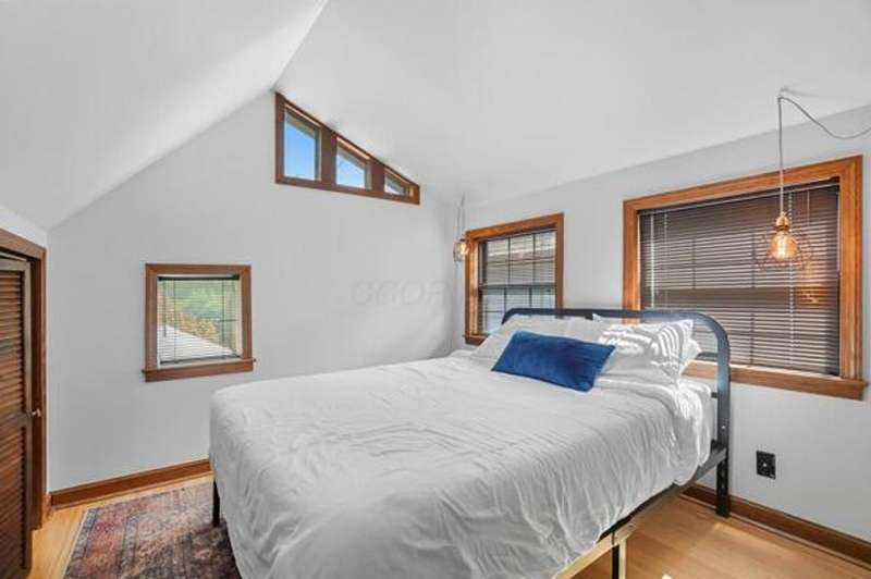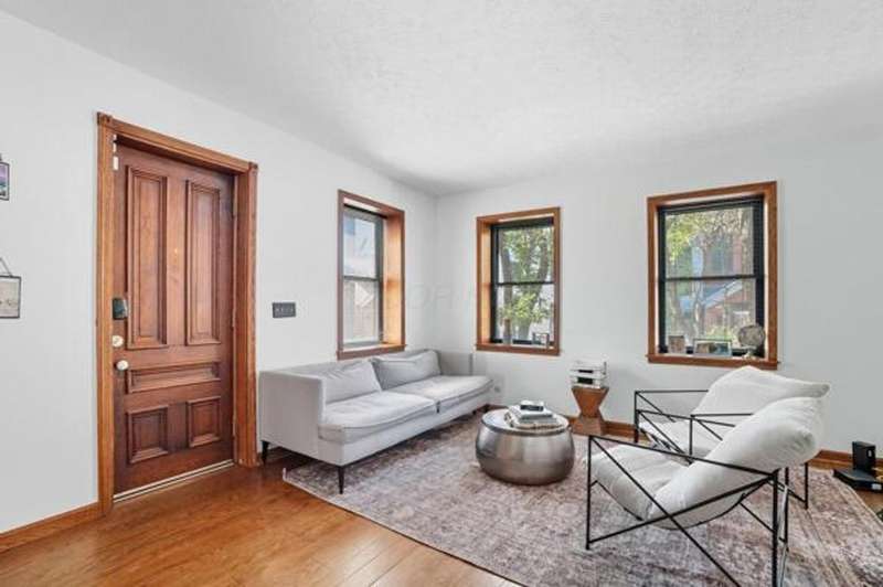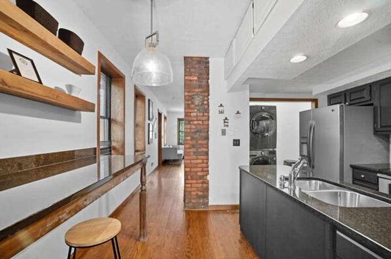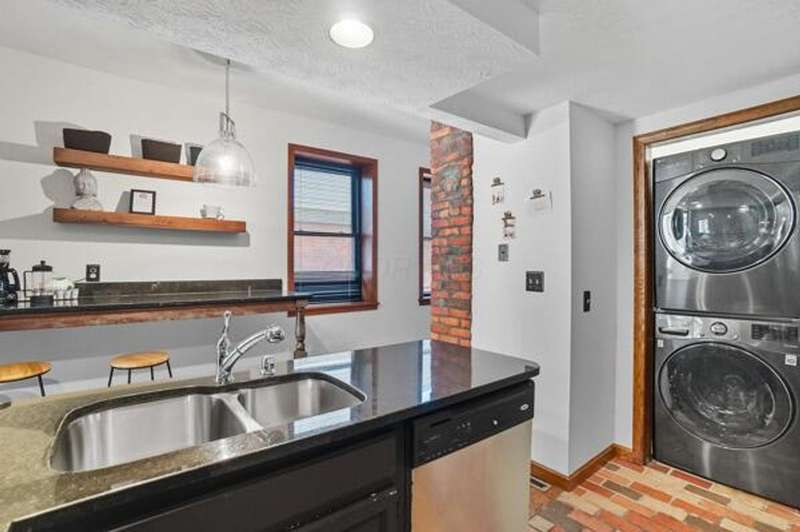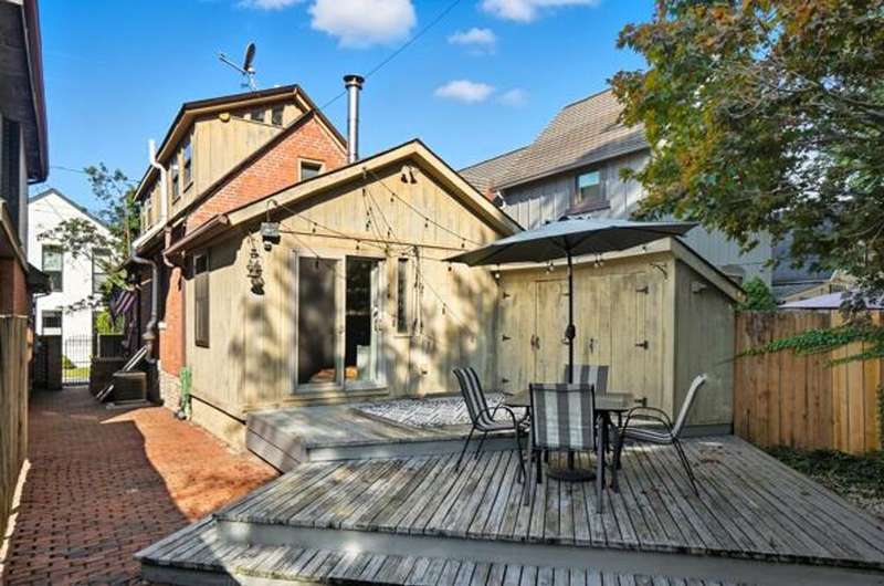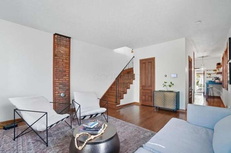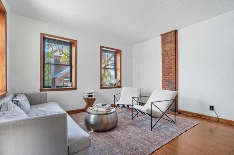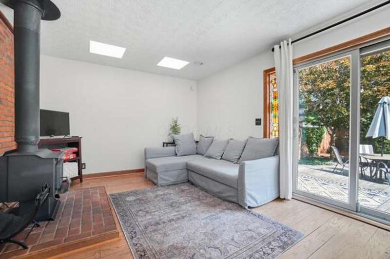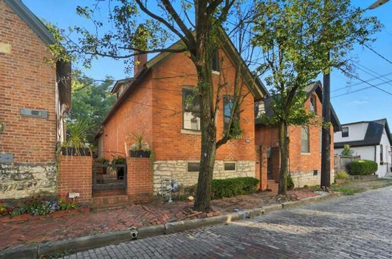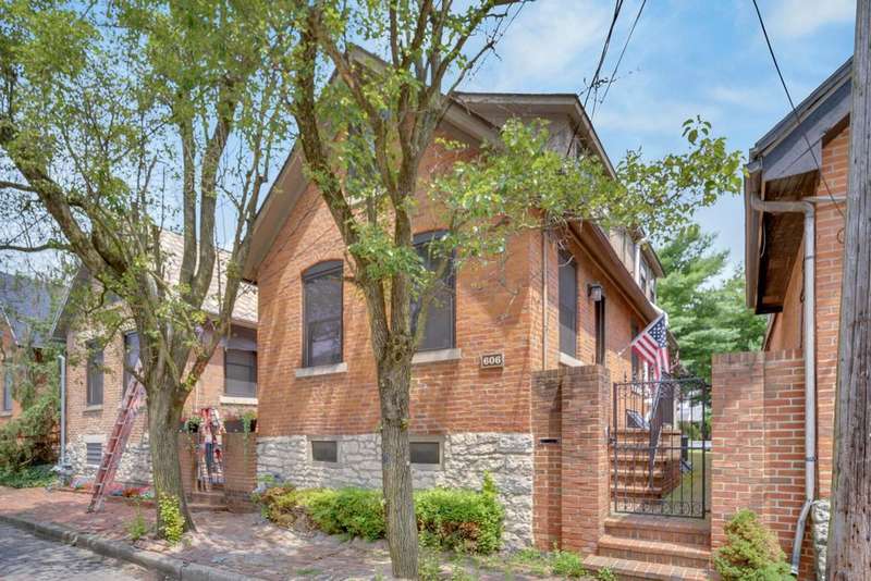 5 Star Location**Fall in love with this classic German Village charmer featuring authentic red brick & black rod iron gate! Walk to everything downtown! Dedicated 2 car off street parking, newer mechanicals, new handrail to second floor, new windows on the entire entry level, gorgeous hardwood floors throughout, fenced yard with extensive landscaping, deck & shed! The family room features an authentic wood burning stove! Tile floors in both bathrooms! Kitchen features granite counters, stainless steel appliances and tile backsplash! Enjoy the convenience of 1st floor laundry and the gorgeous, exposed brick wall in the family room & additional brick accents throughout! Second floor bedroom offers a wall of closet space with more in the adjacent Loft which could be converted into an additional bedroom.